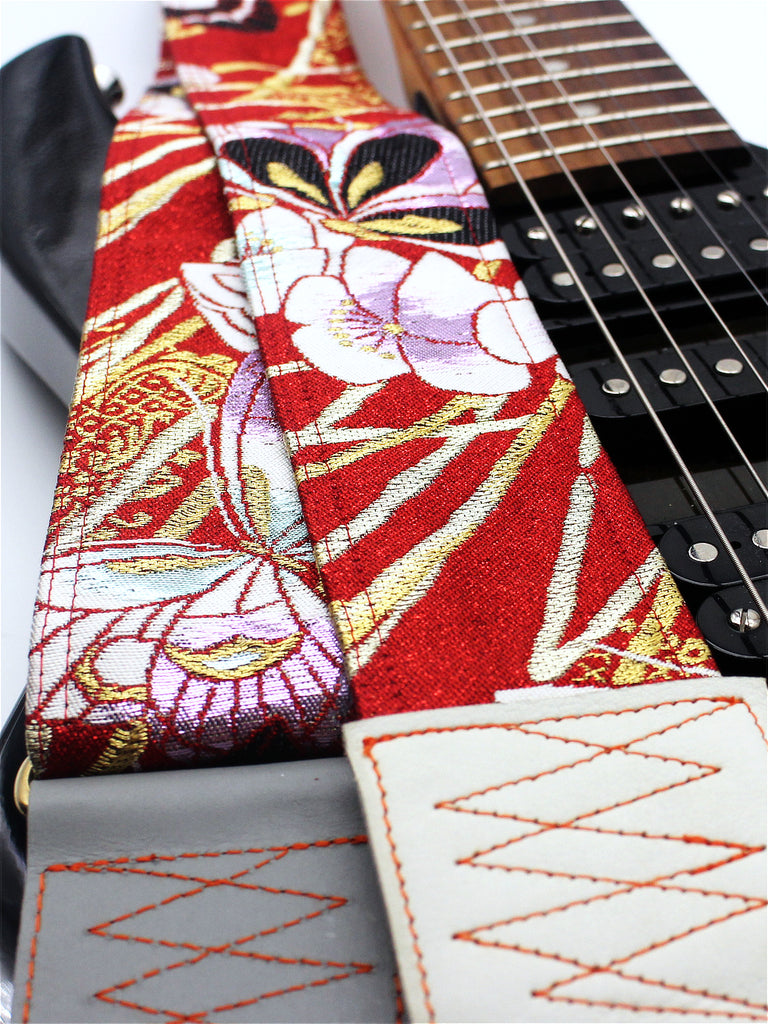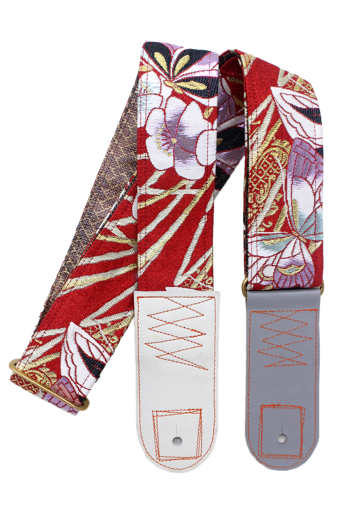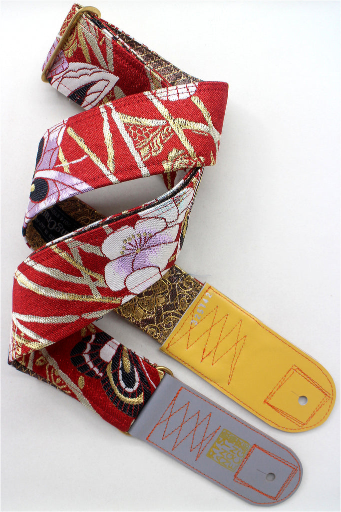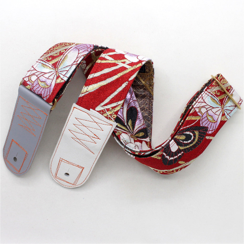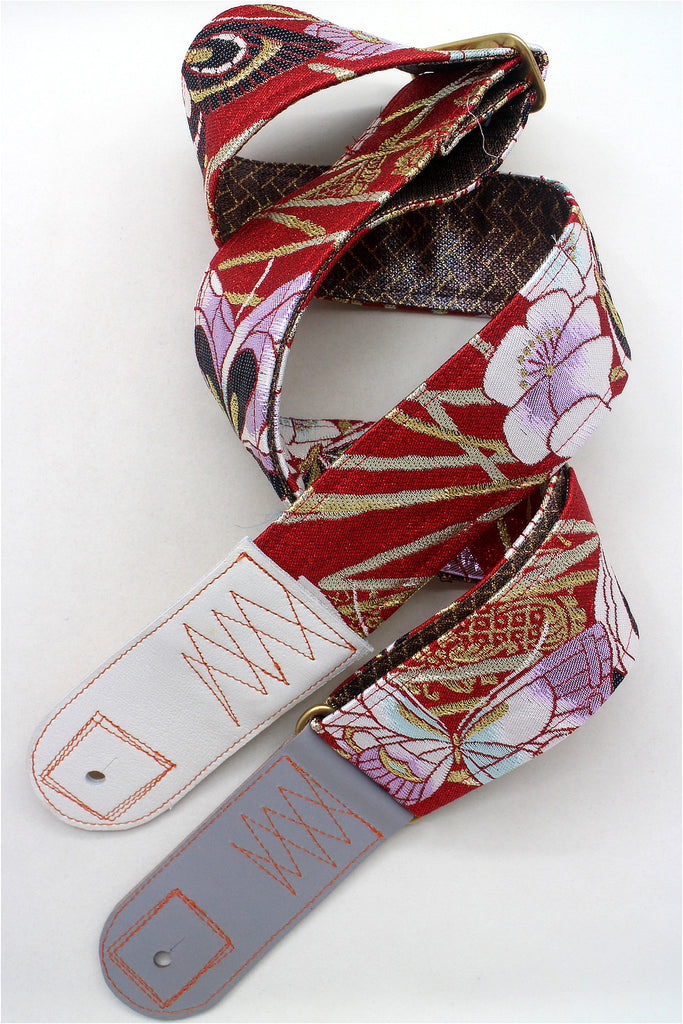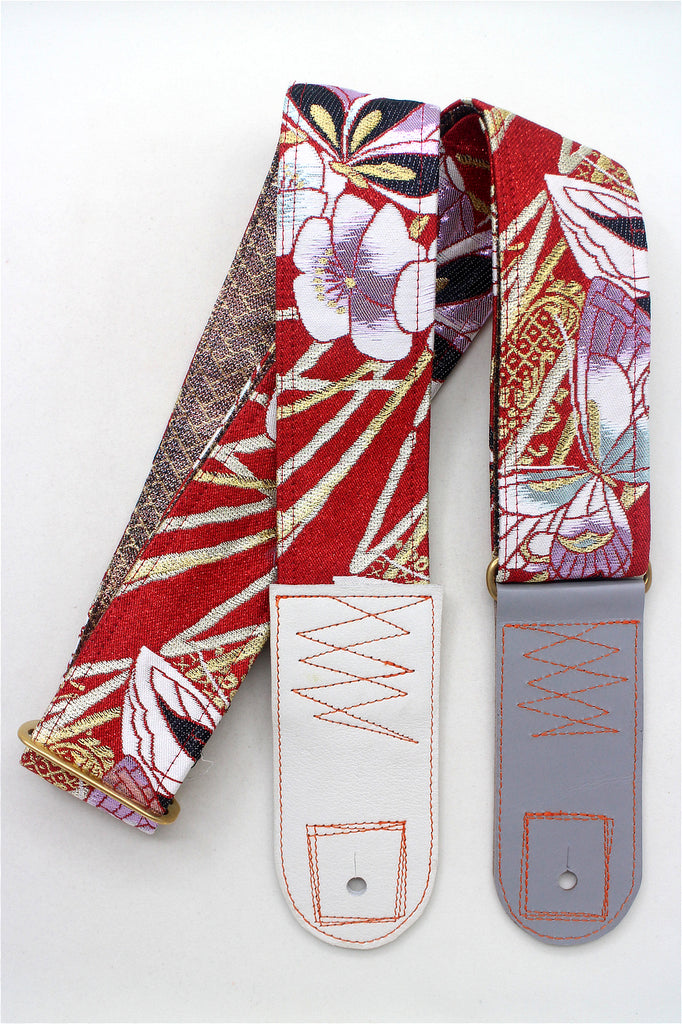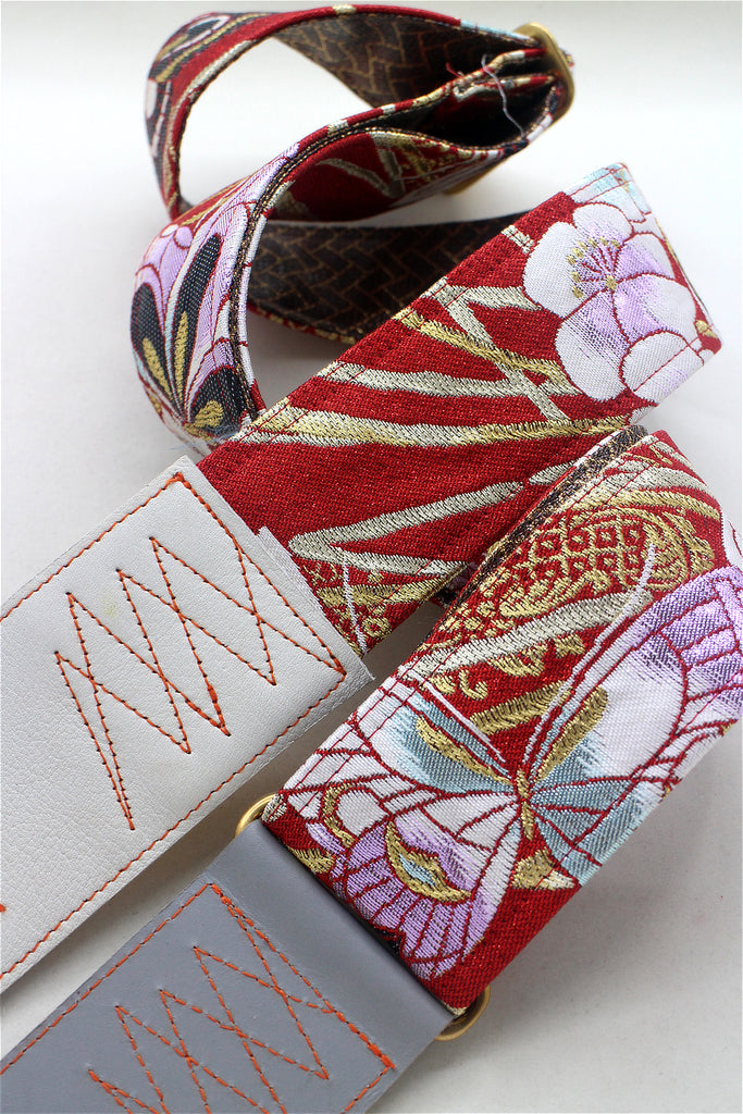 Unique and beautiful guitar strap [SC325142] - hand made in Japan from recycled silk woven kimono obi, leather and brass