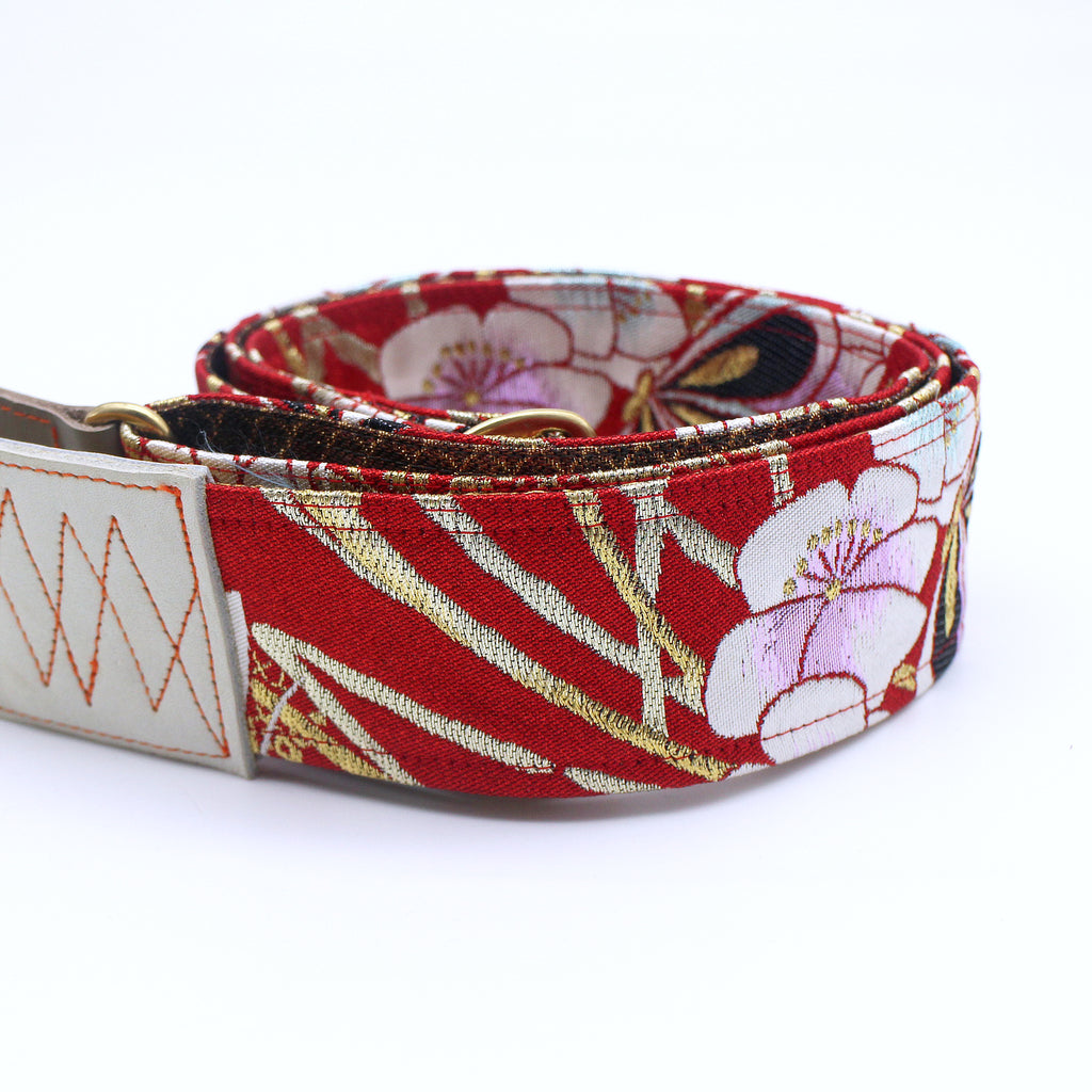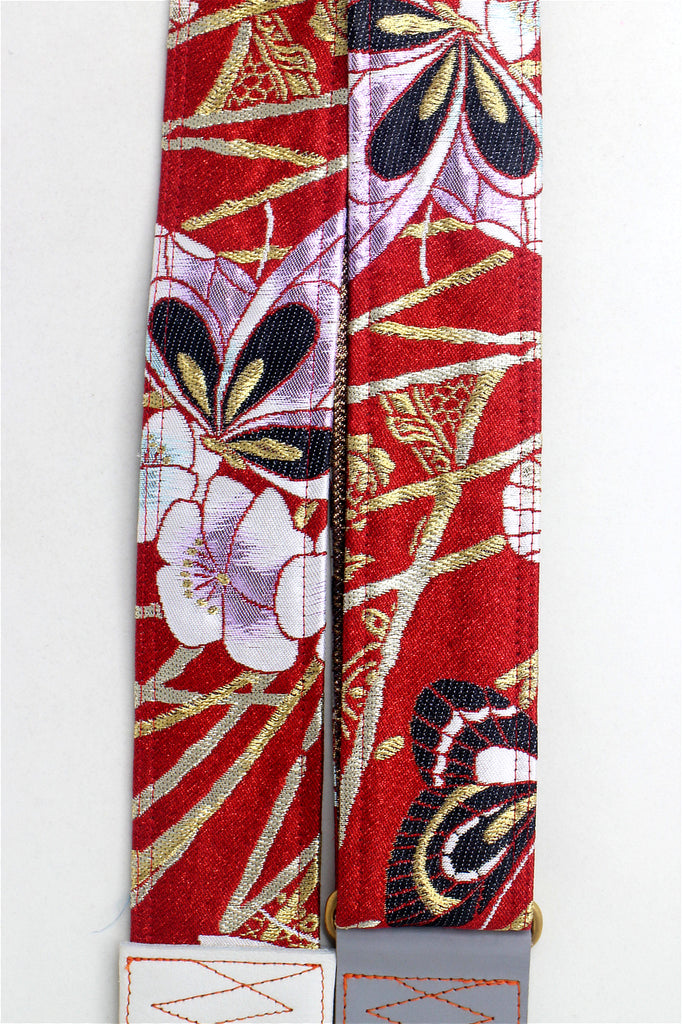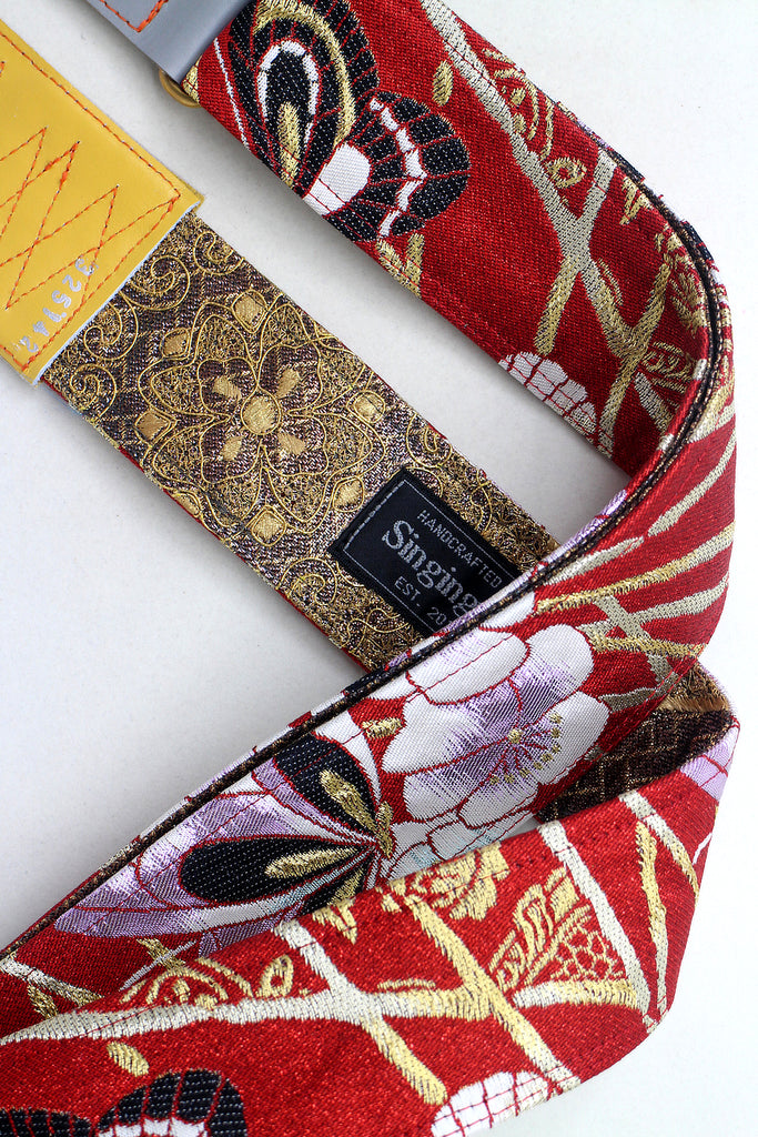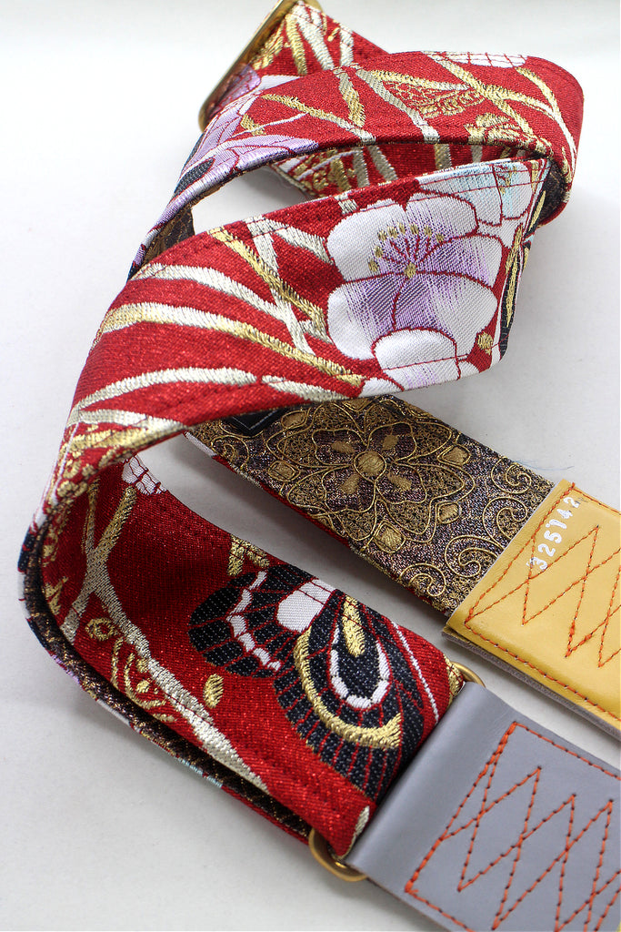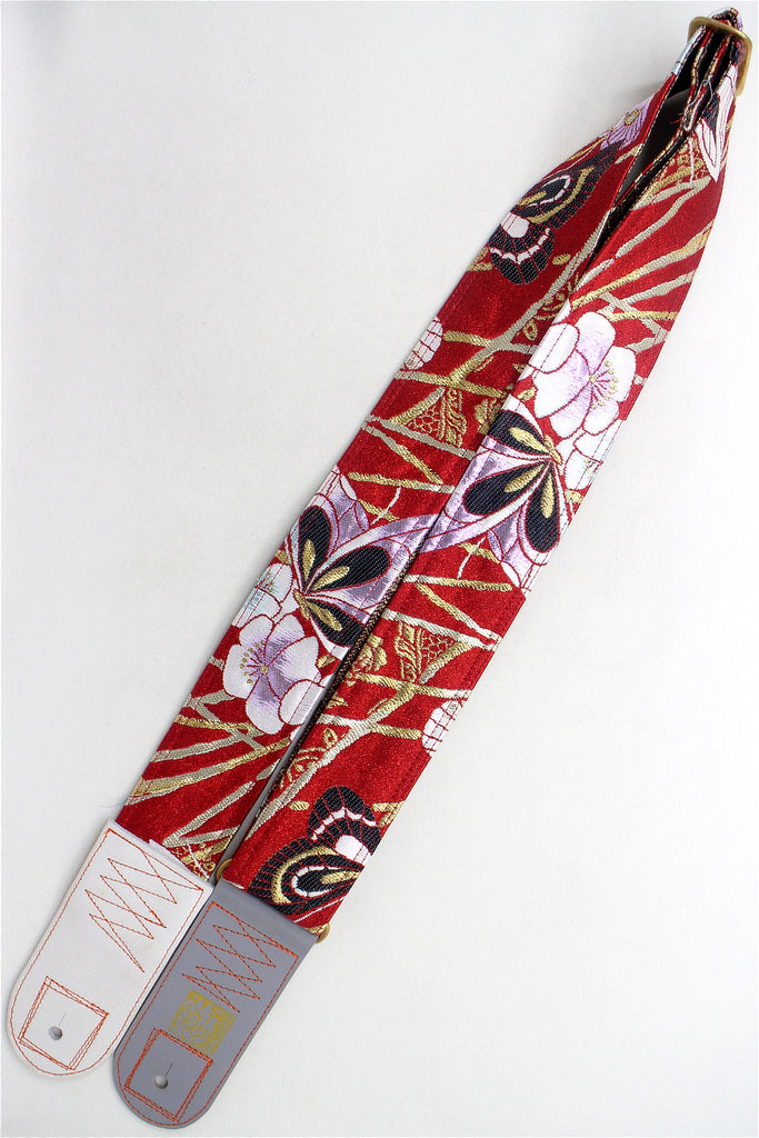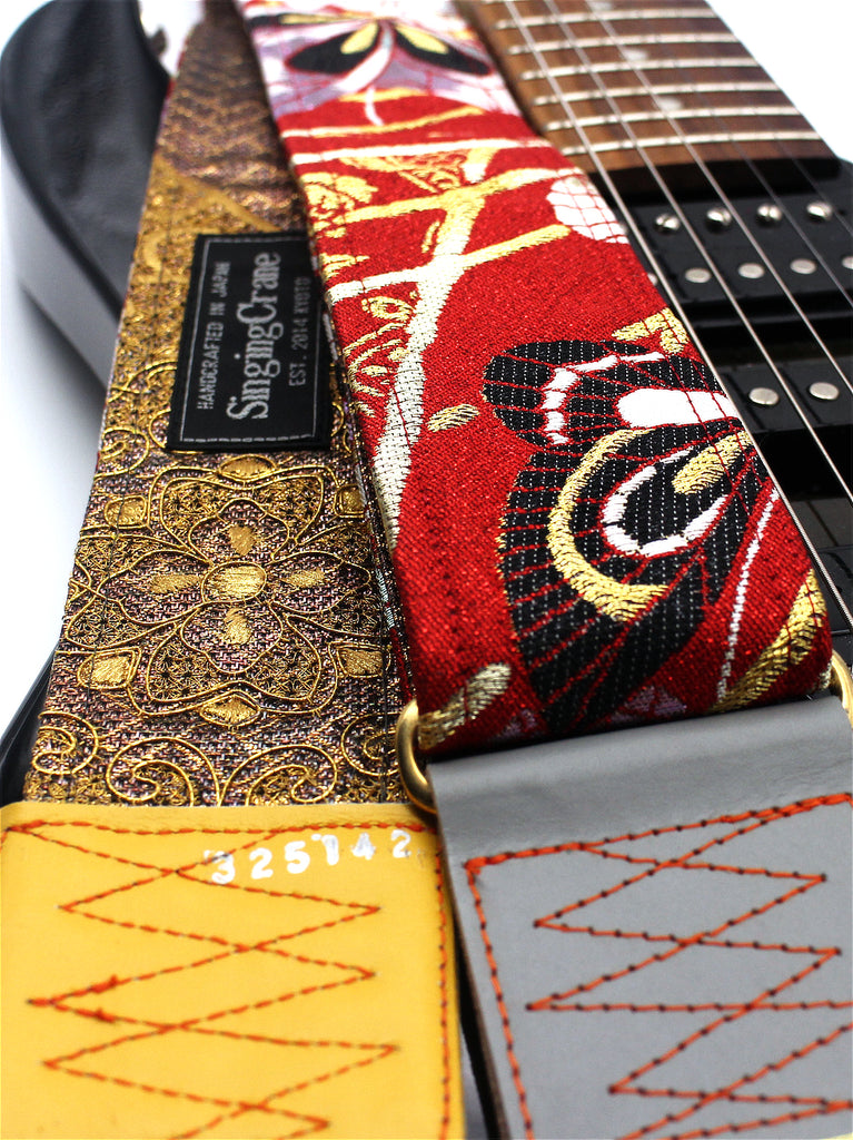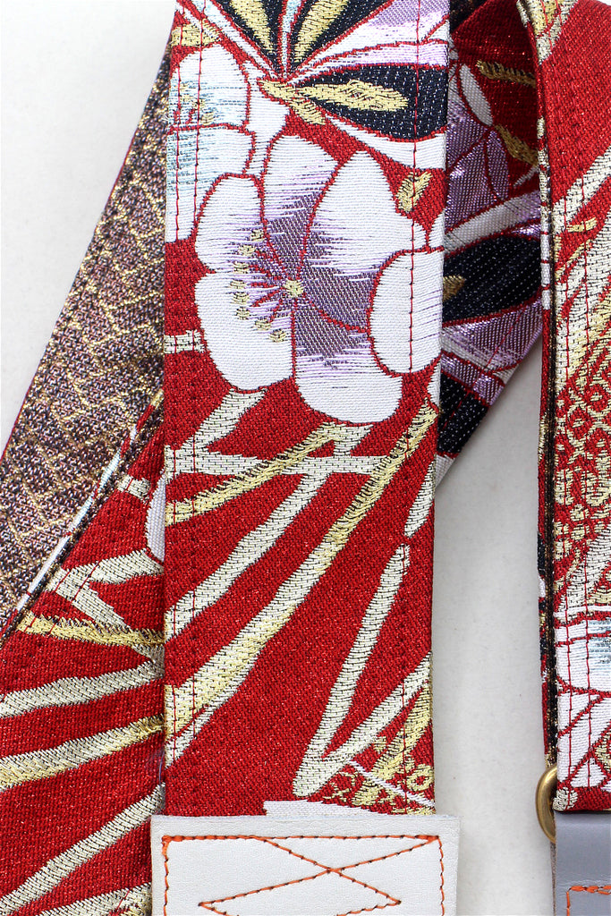 Unique and beautiful guitar strap [SC325142] - hand made in Japan from recycled silk woven kimono obi, leather and brass