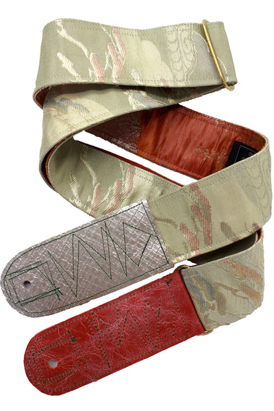 Unique and beautiful guitar strap [SC18303] - hand made in Japan from vintage silk kimono, leather and brass