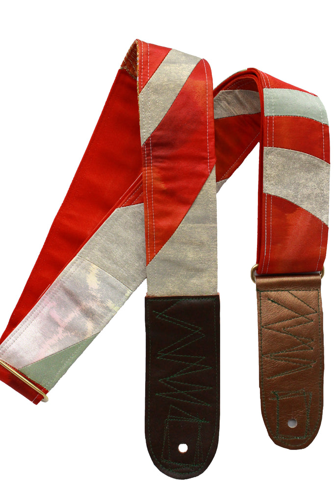 Unique and beautiful guitar strap [SC18342] - hand made in Japan from vintage silk kimono, leather and brass