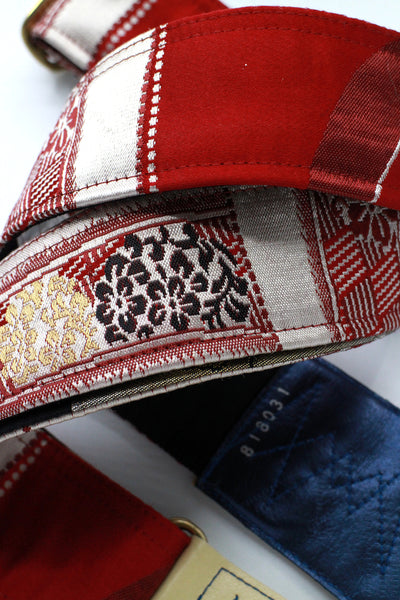 Each has a unique, hand-stamped serial number. All are handmade in Kyoto from recycled vintage silk kimono obis and repurposed leather off-cuts.