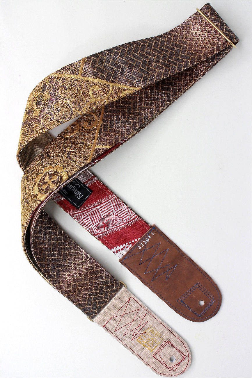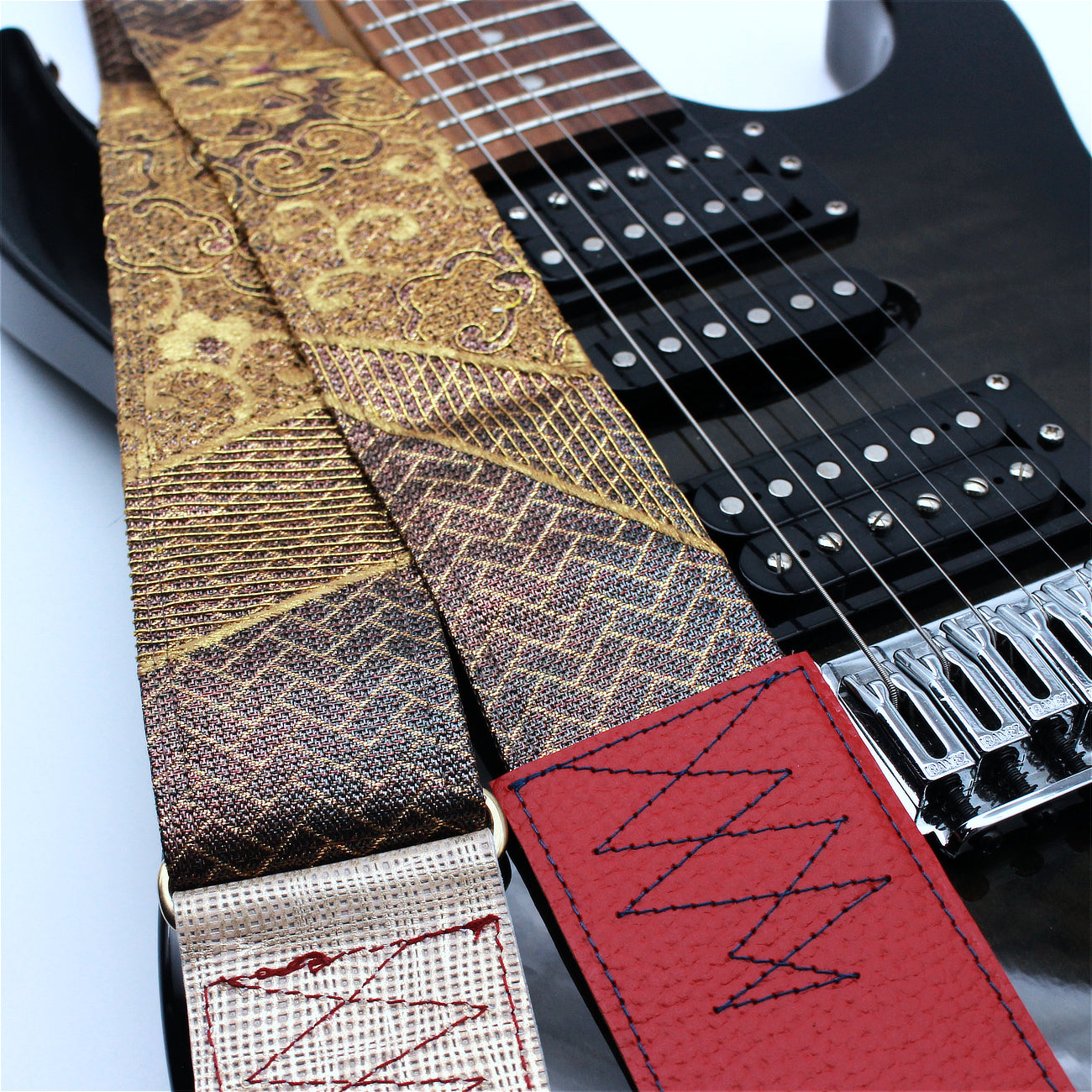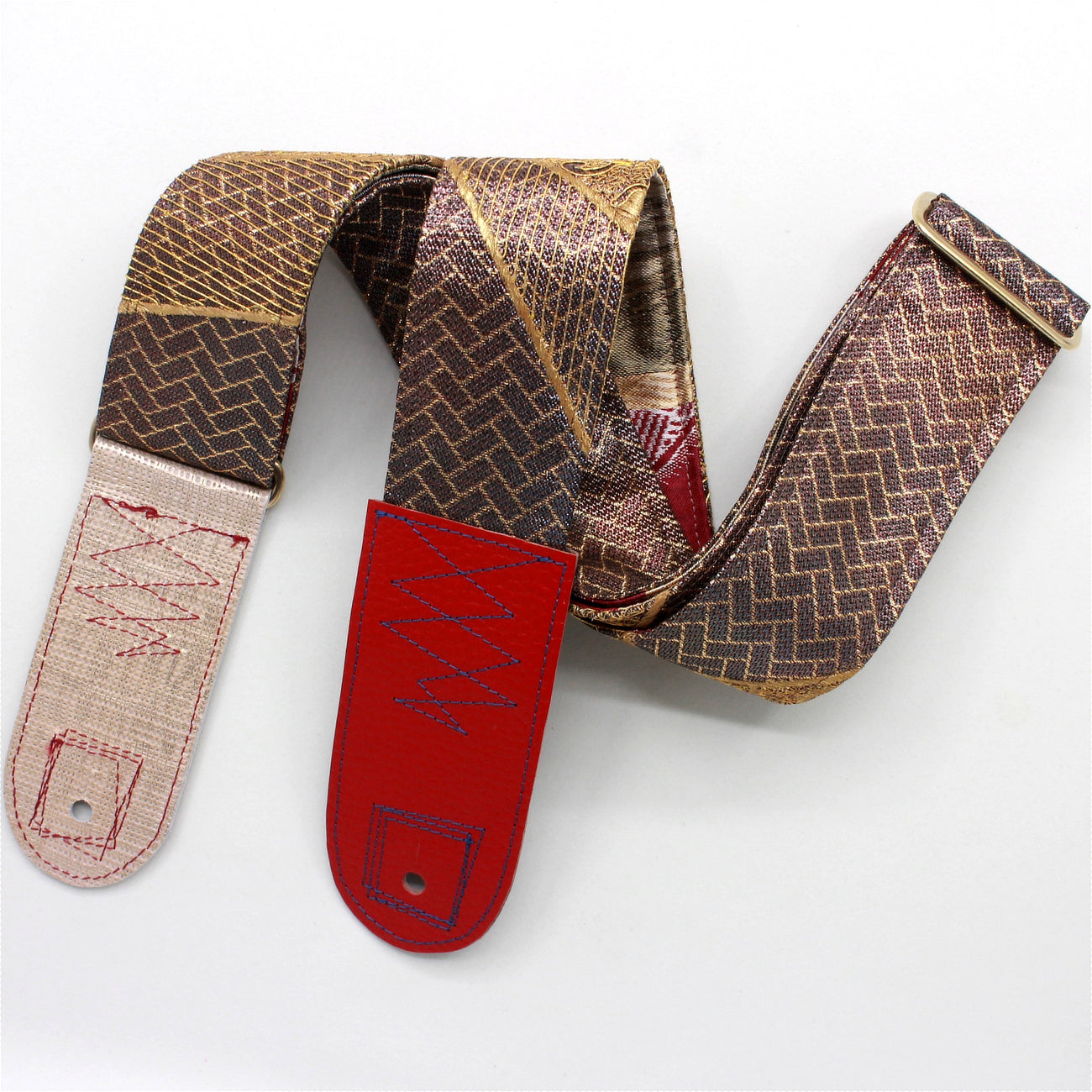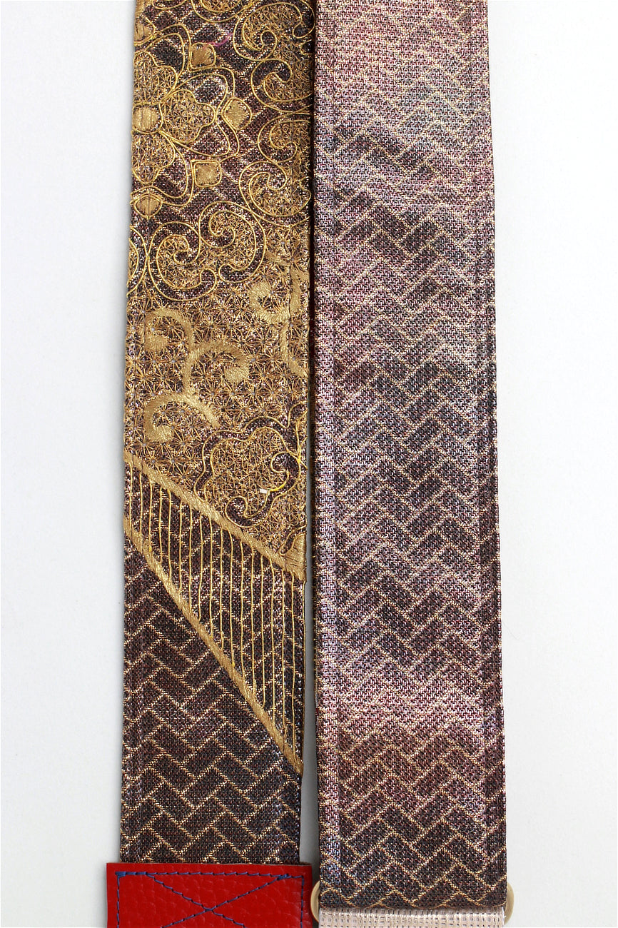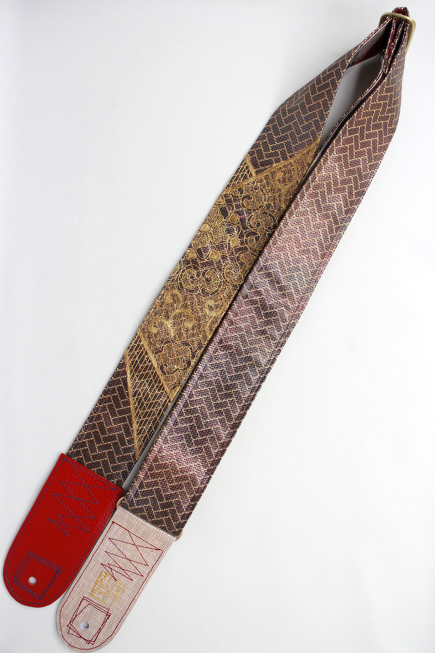 Unique and beautiful guitar strap [SC323041] - hand made in Japan from recycled silk woven kimono obi, leather and brass