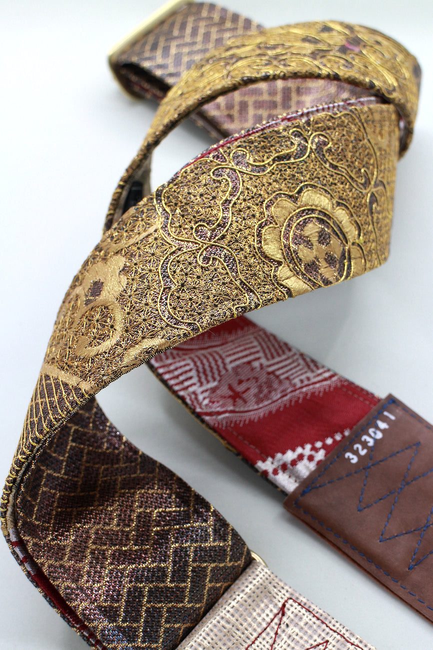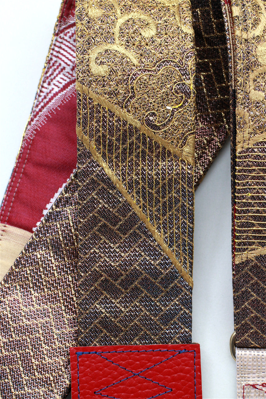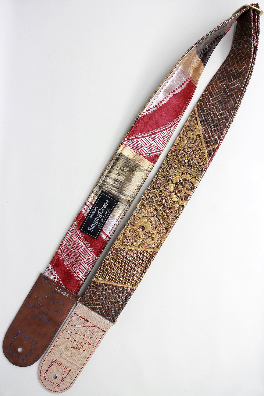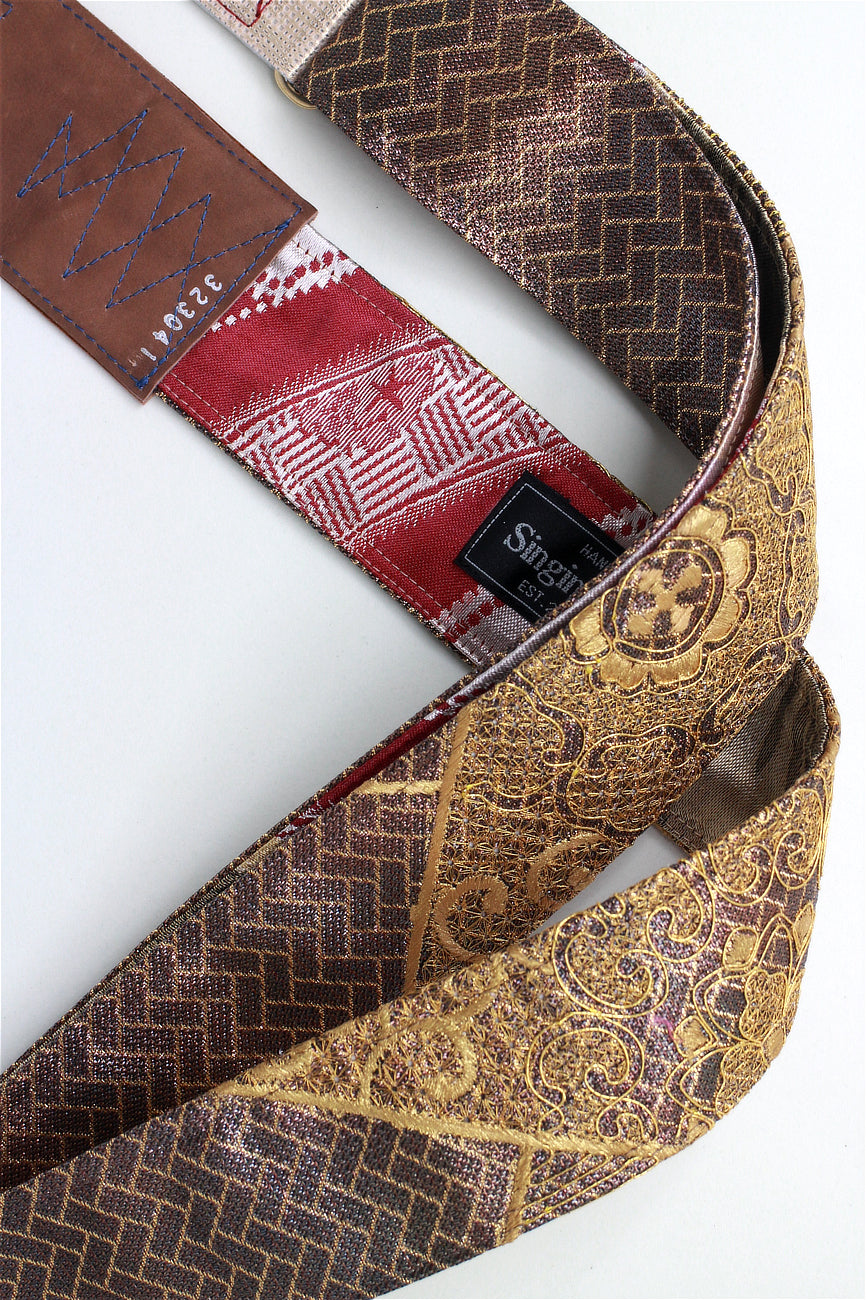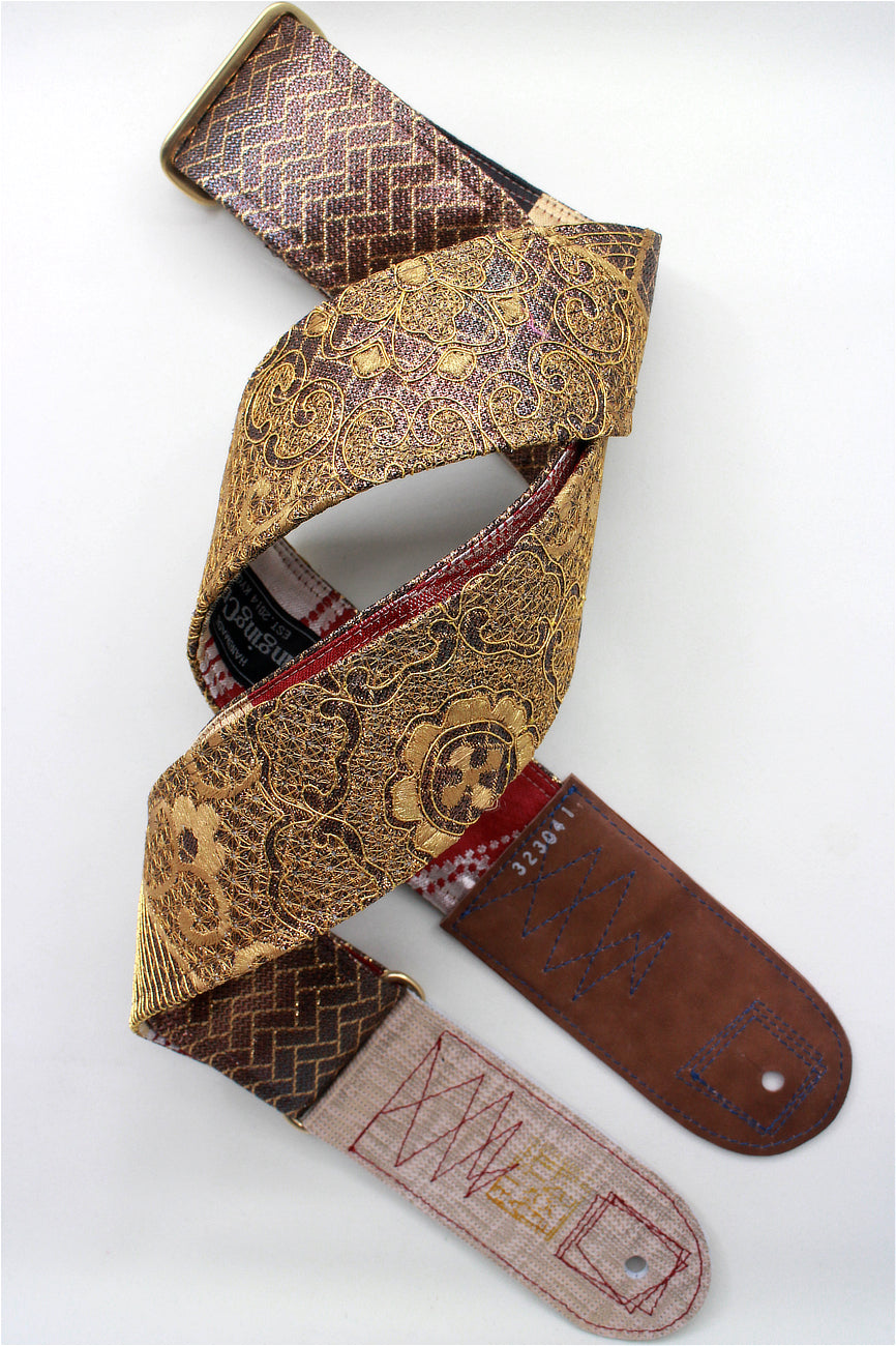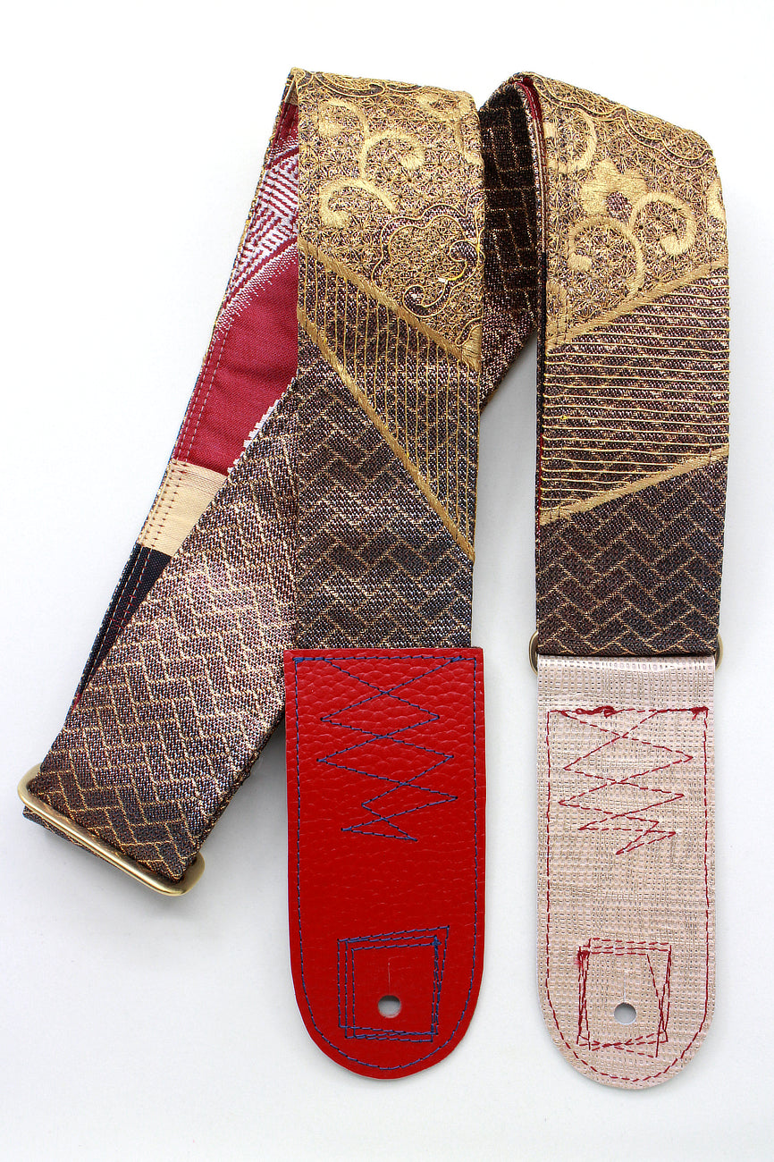 Unique and beautiful guitar strap [SC323041] - hand made in Japan from recycled silk woven kimono obi, leather and brass