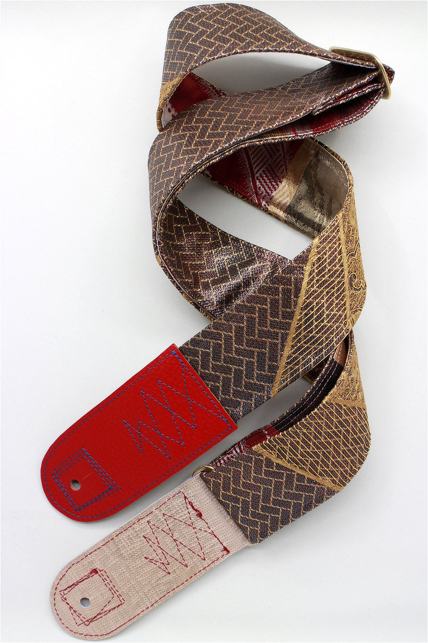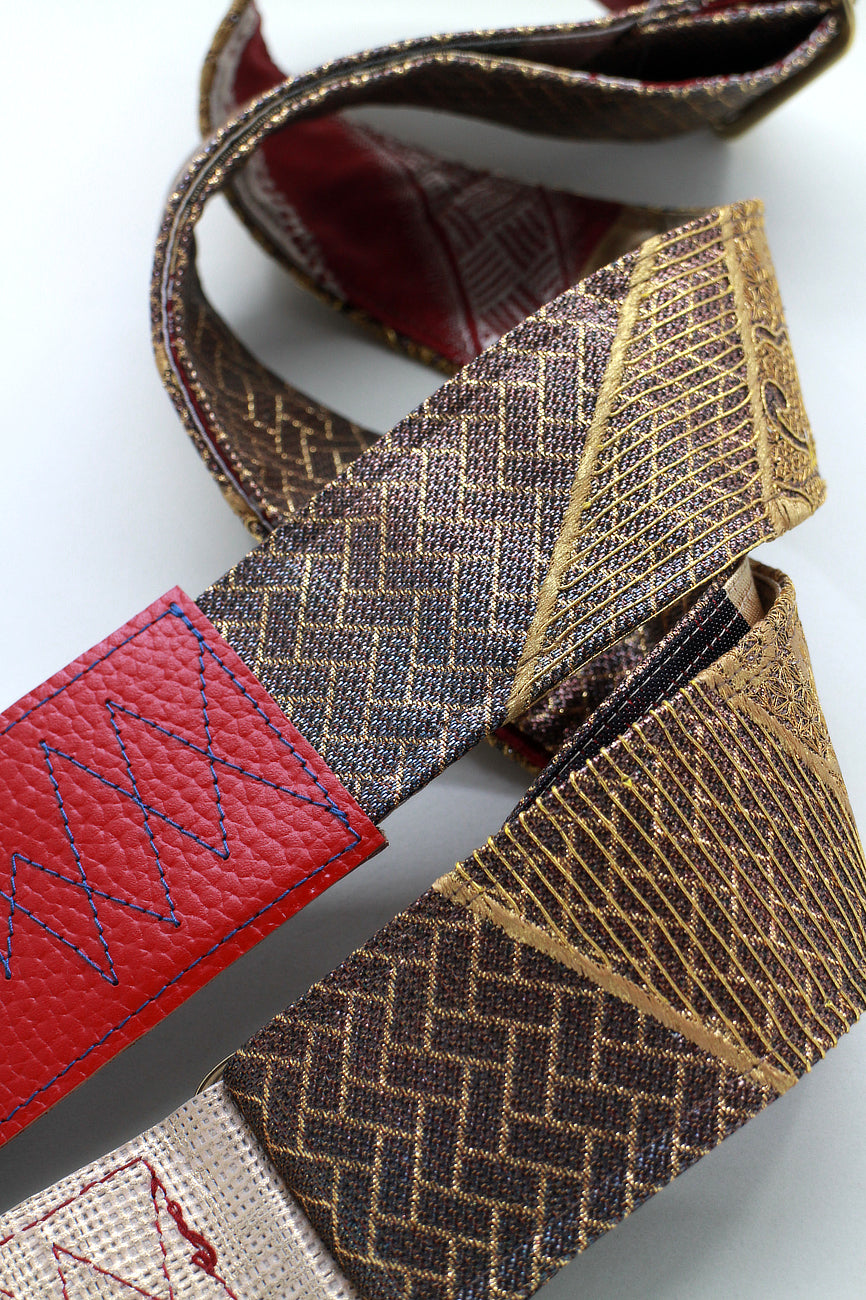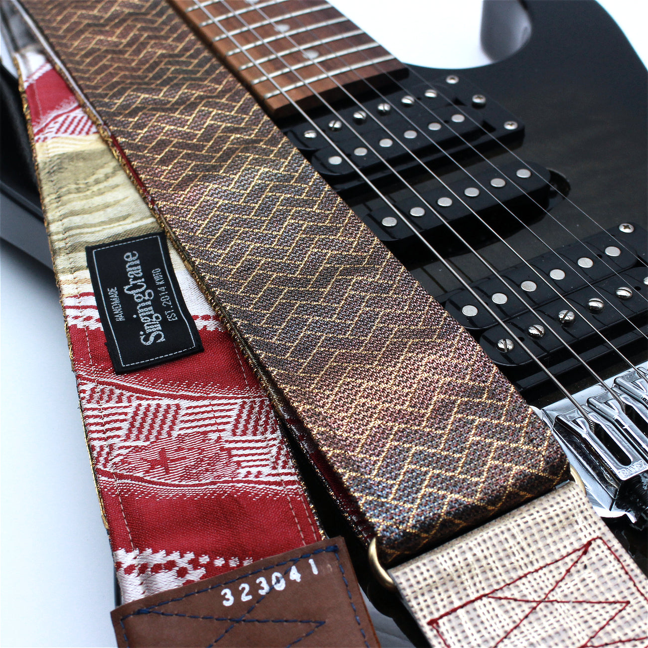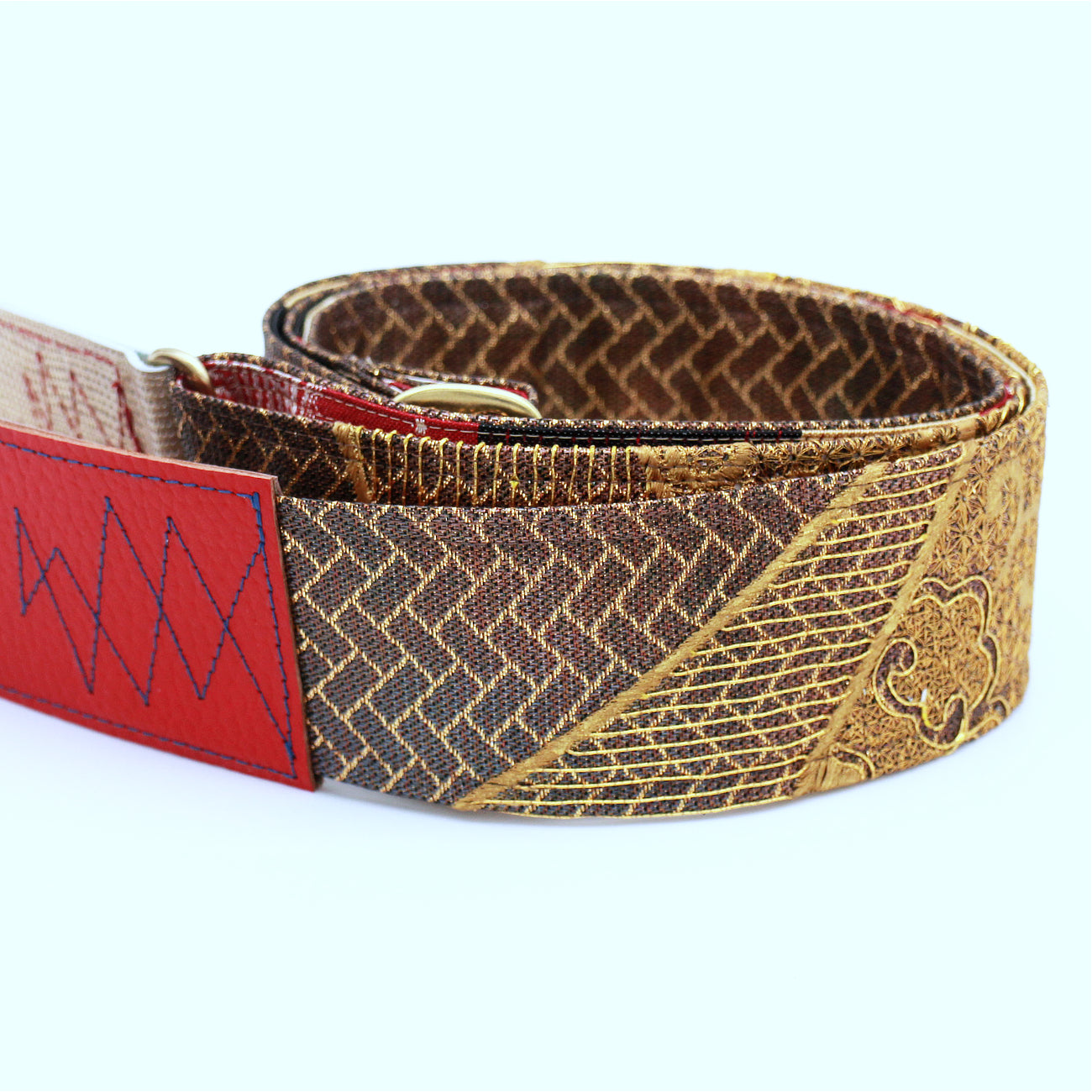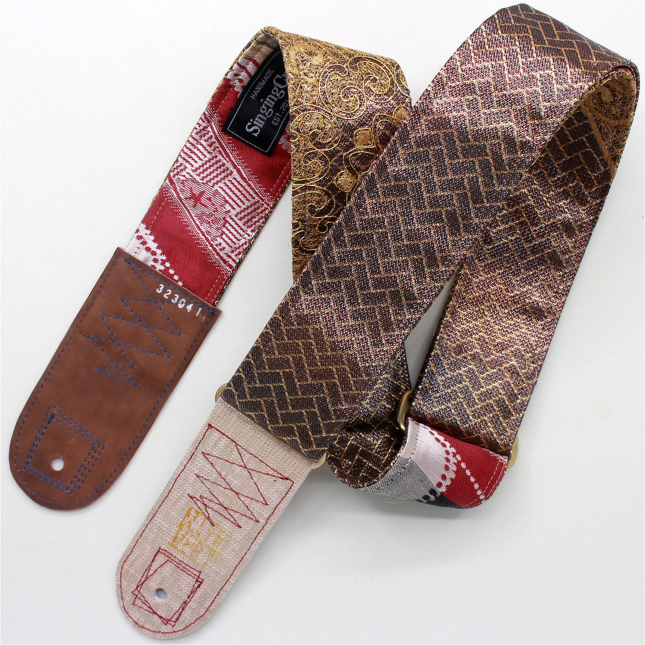 Unique and beautiful guitar strap [SC323041] - hand made in Japan from recycled silk woven kimono obi, leather and brass