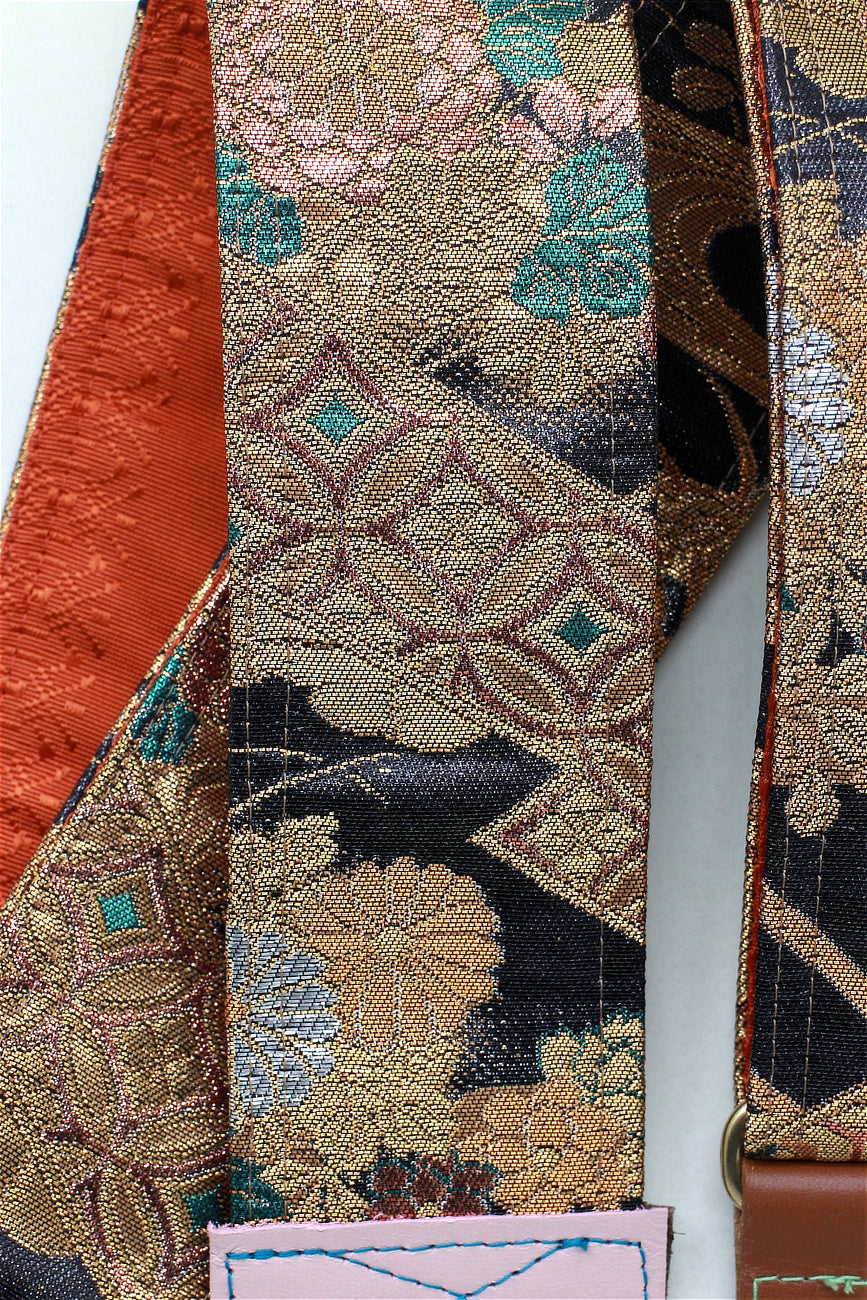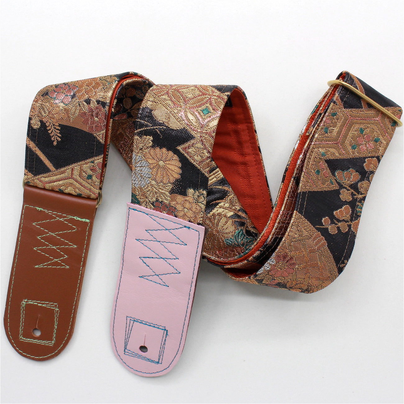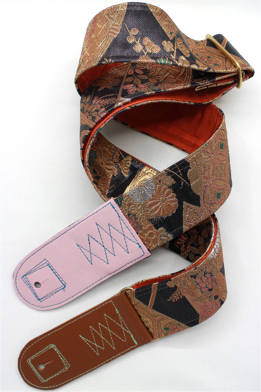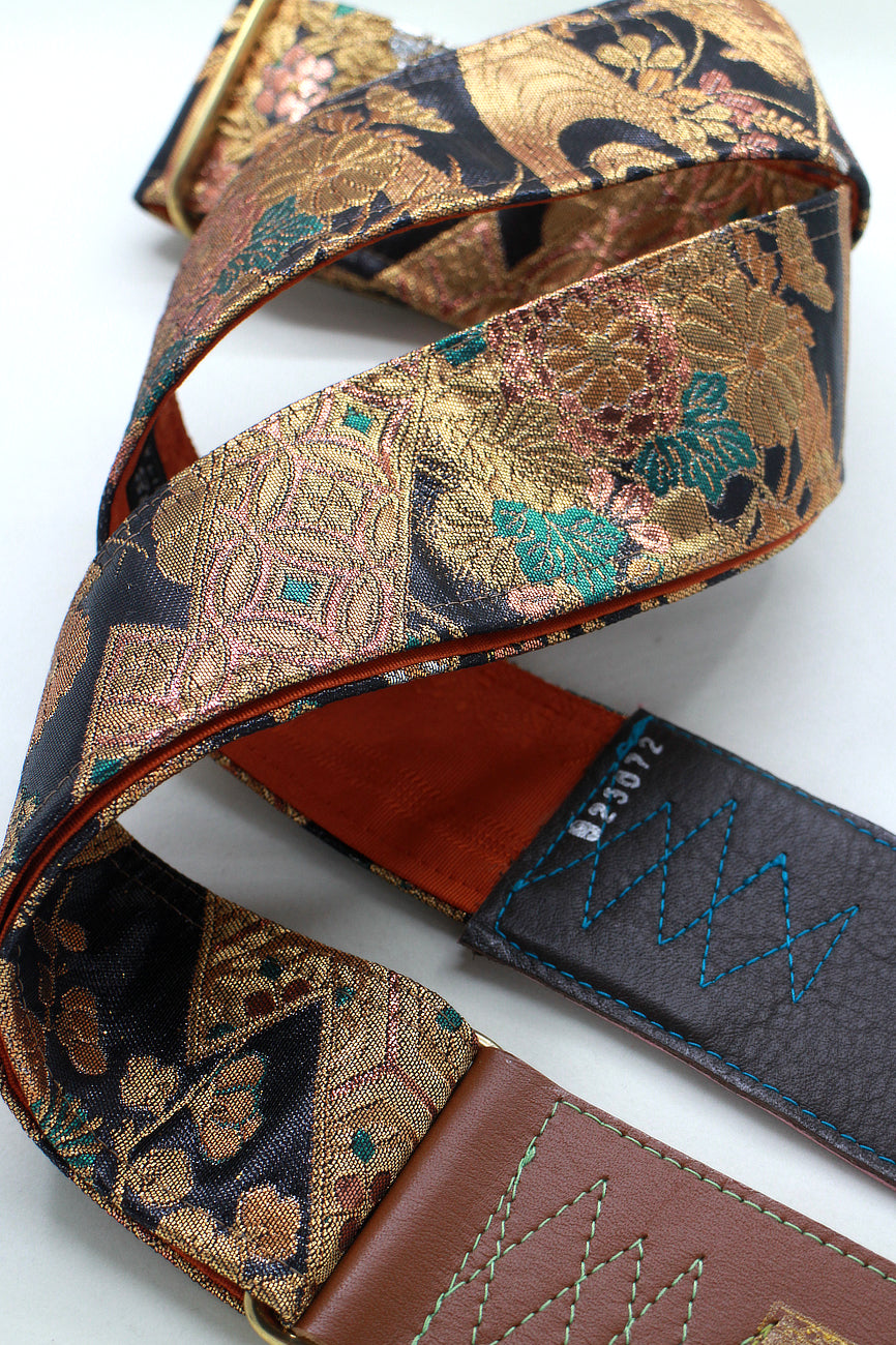 Unique and beautiful guitar strap [SC323072] - hand made in Japan from recycled silk woven kimono obi, leather and brass