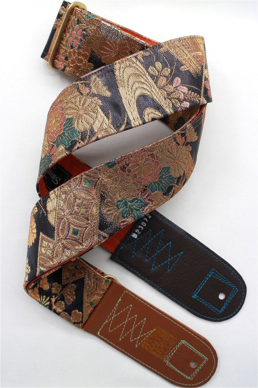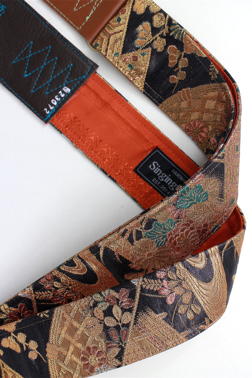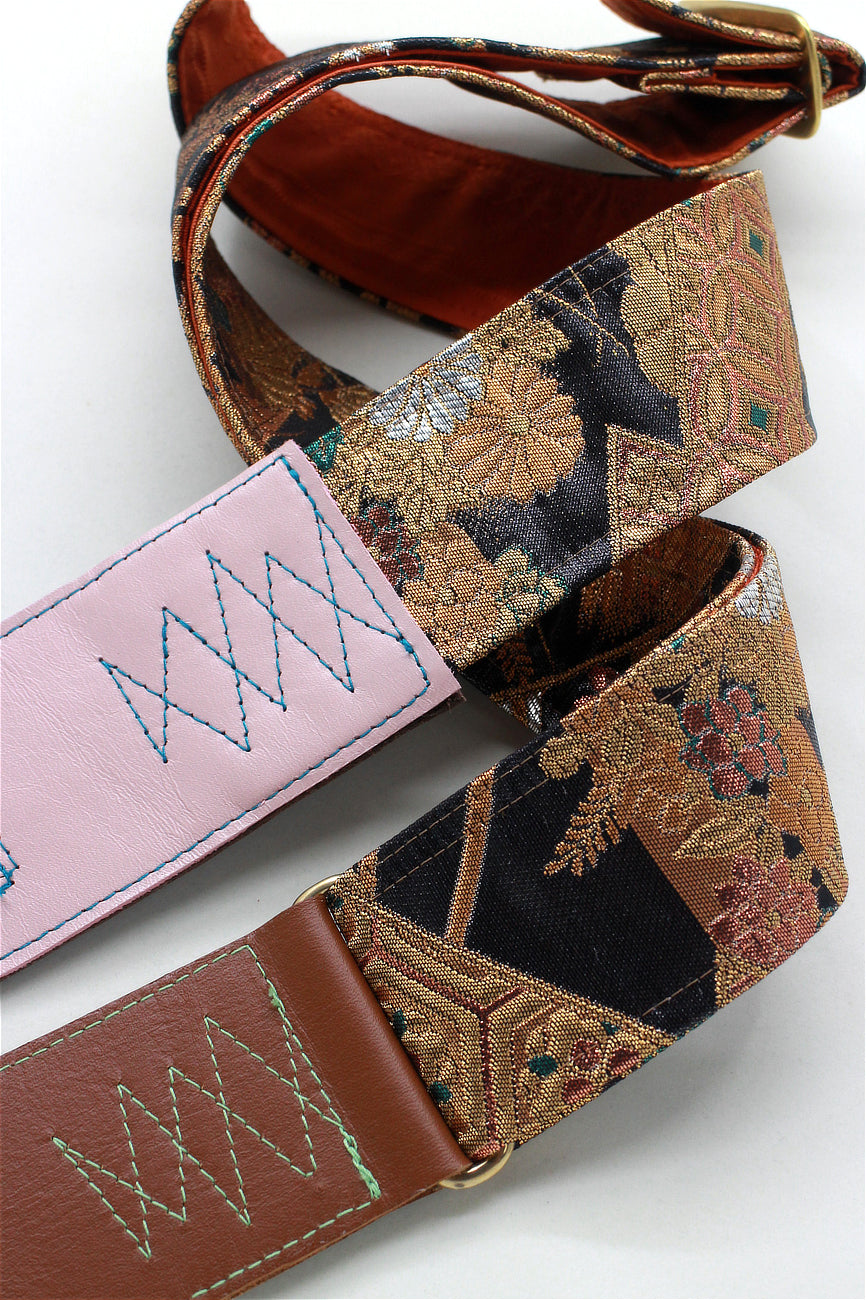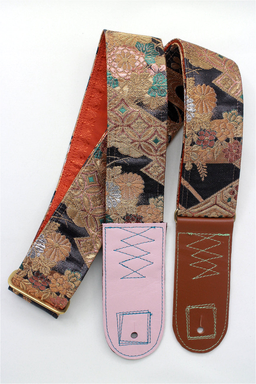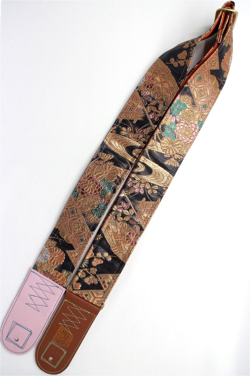 Unique and beautiful guitar strap [SC323072] - hand made in Japan from recycled silk woven kimono obi, leather and brass