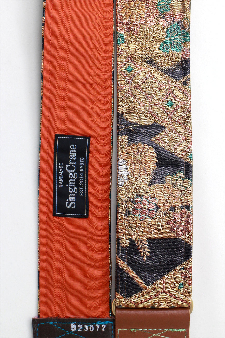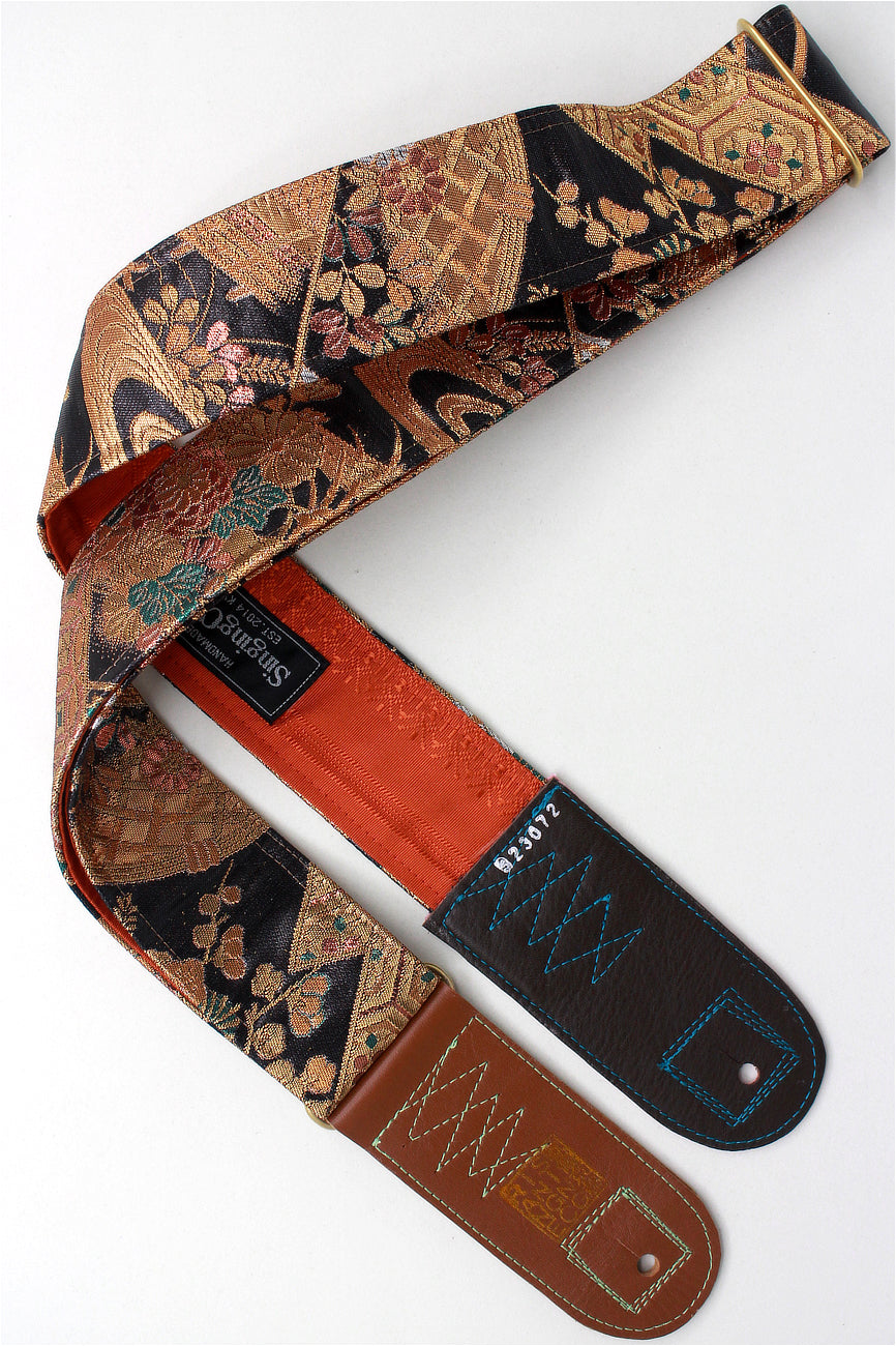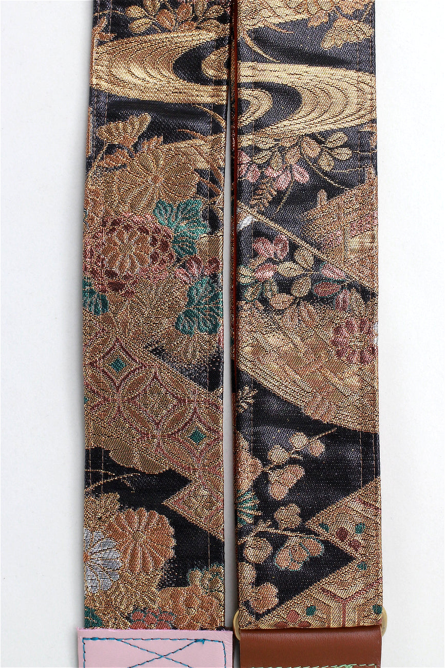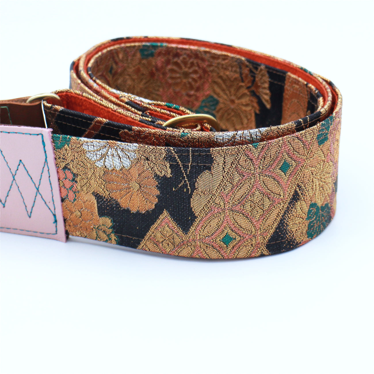 Unique and beautiful guitar strap [SC323072] - hand made in Japan from recycled silk woven kimono obi, leather and brass