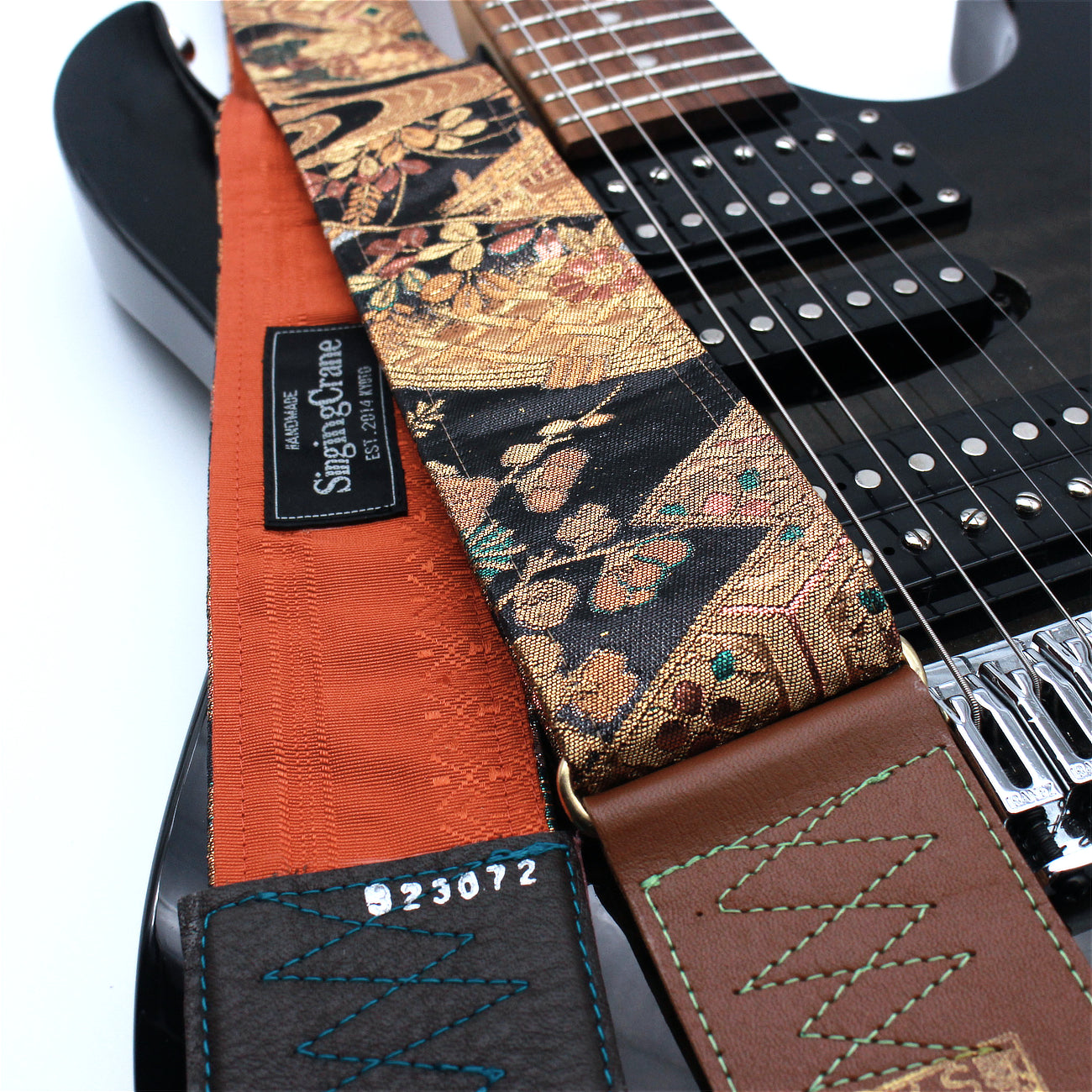 Brand new Singing Crane handmade silk kimono obi guitar strap