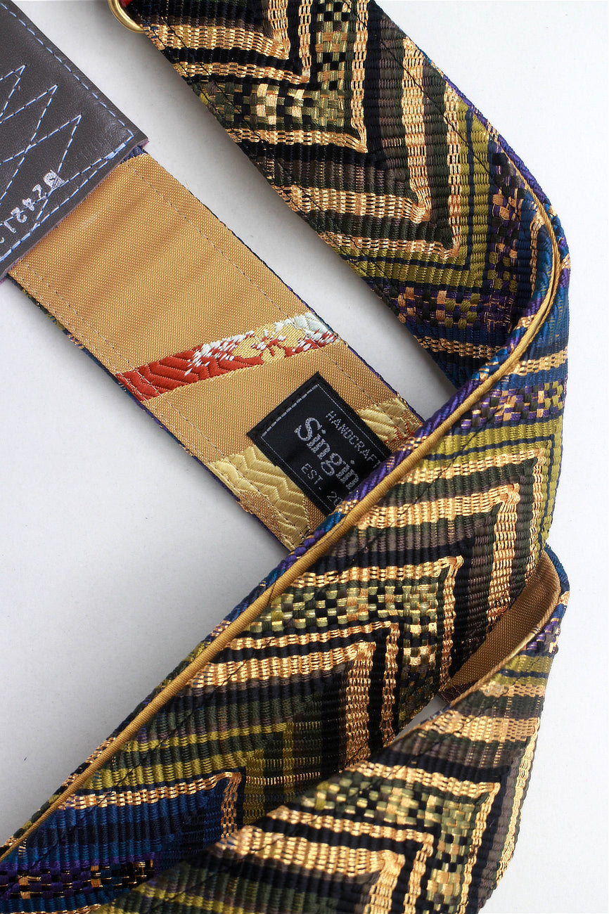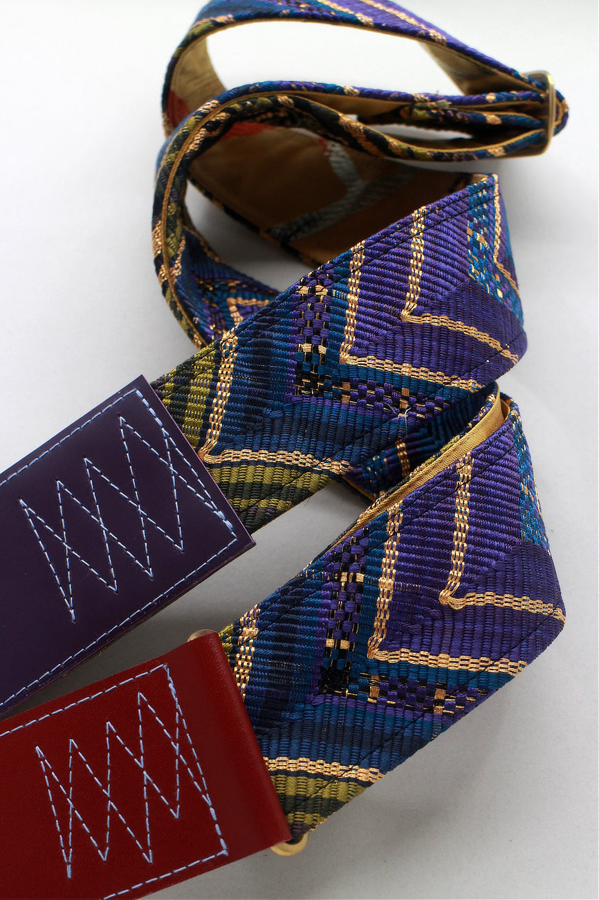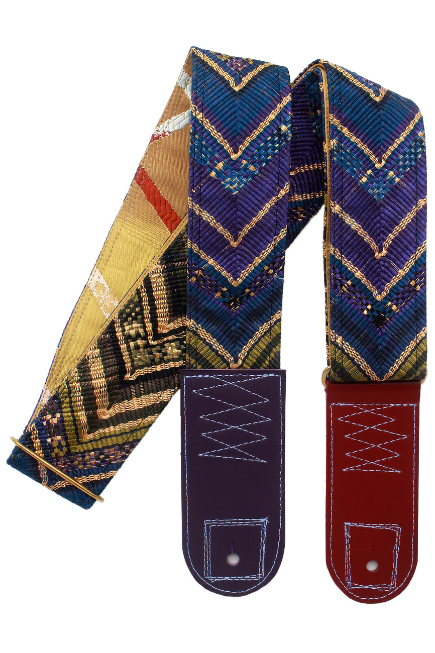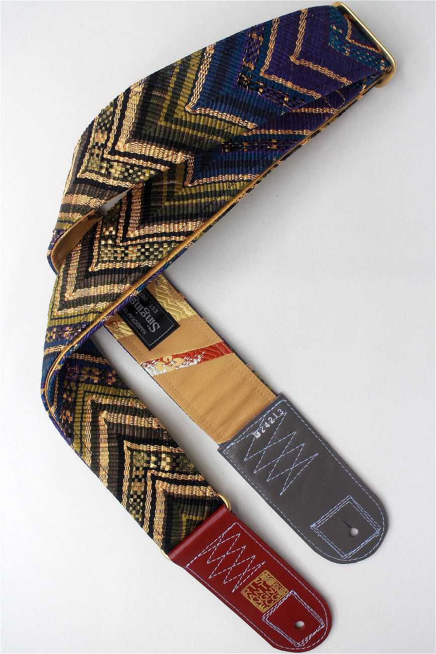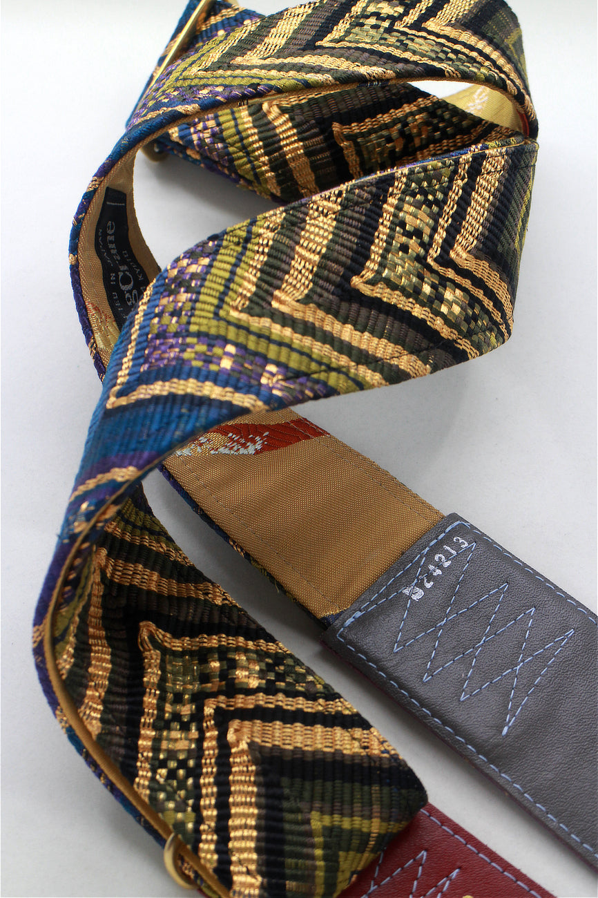 Unique and beautiful guitar strap [SC324213] - hand made in Japan from recycled silk woven kimono obi, leather and brass