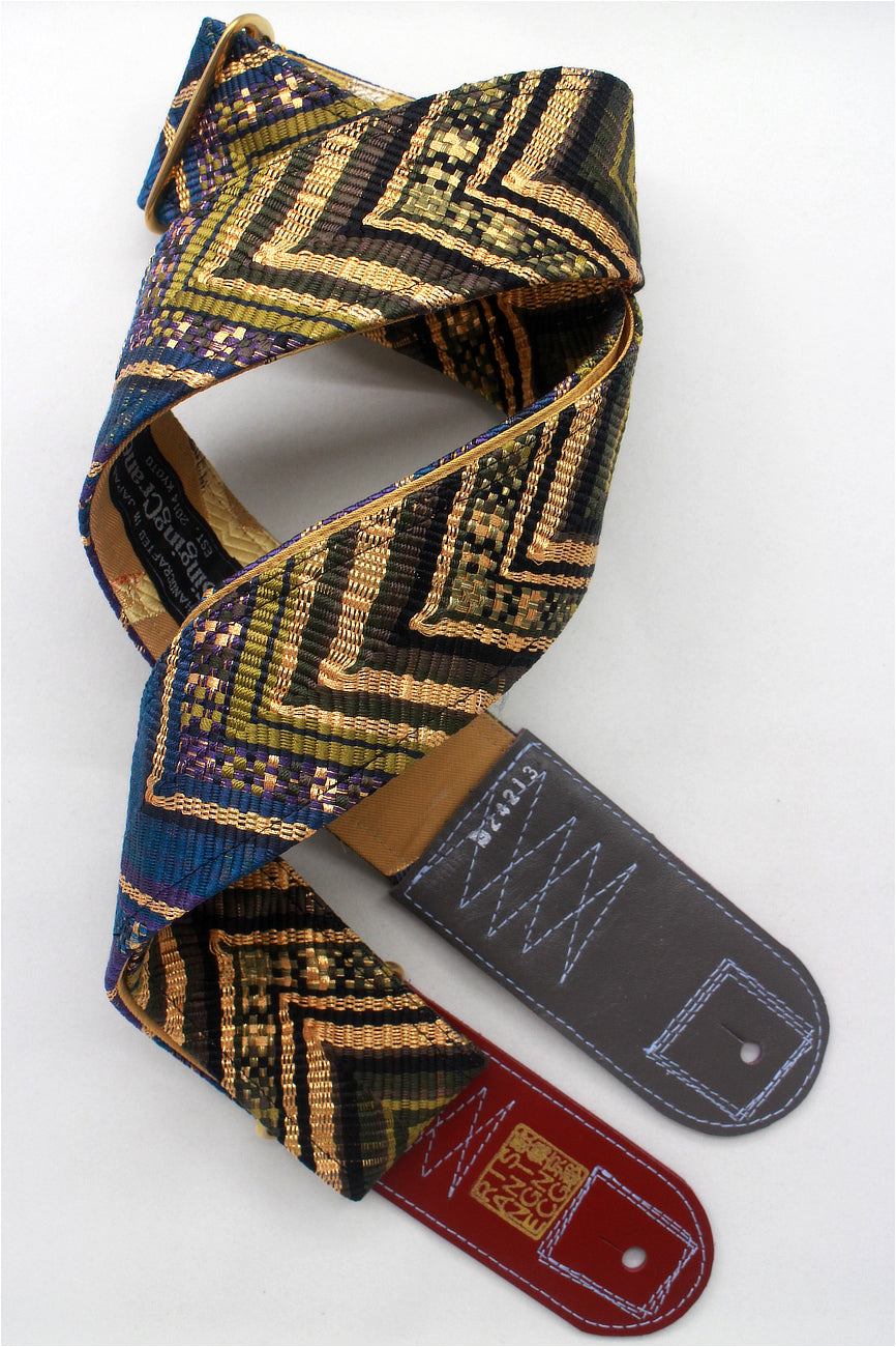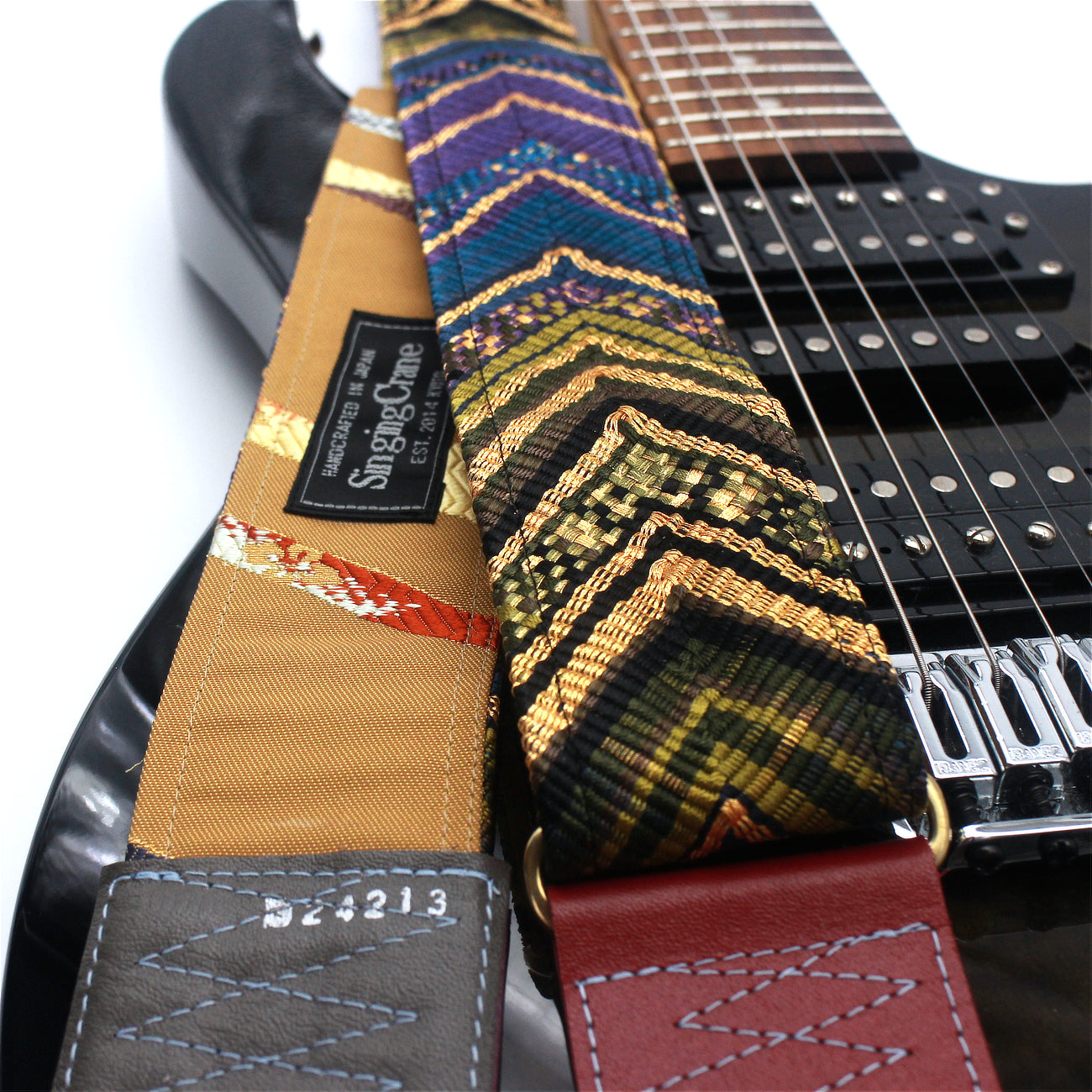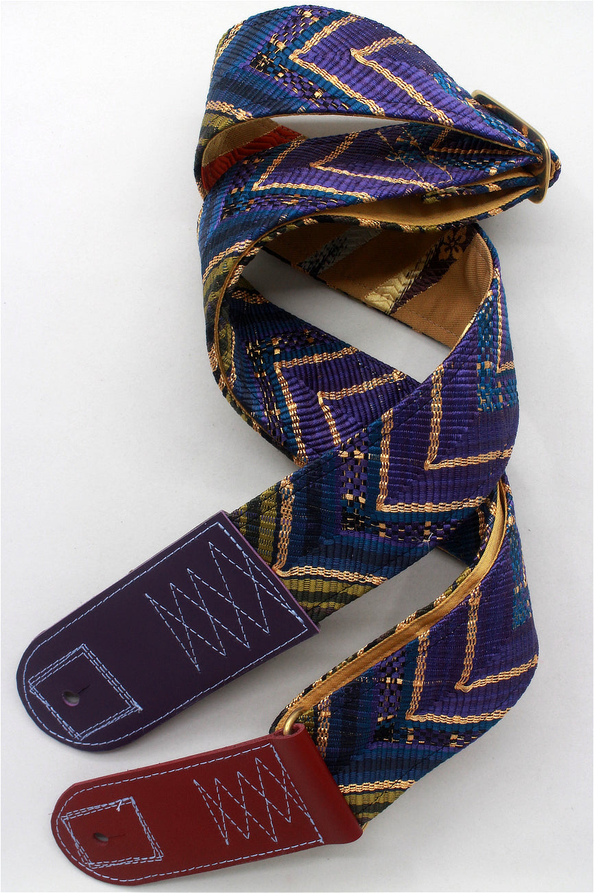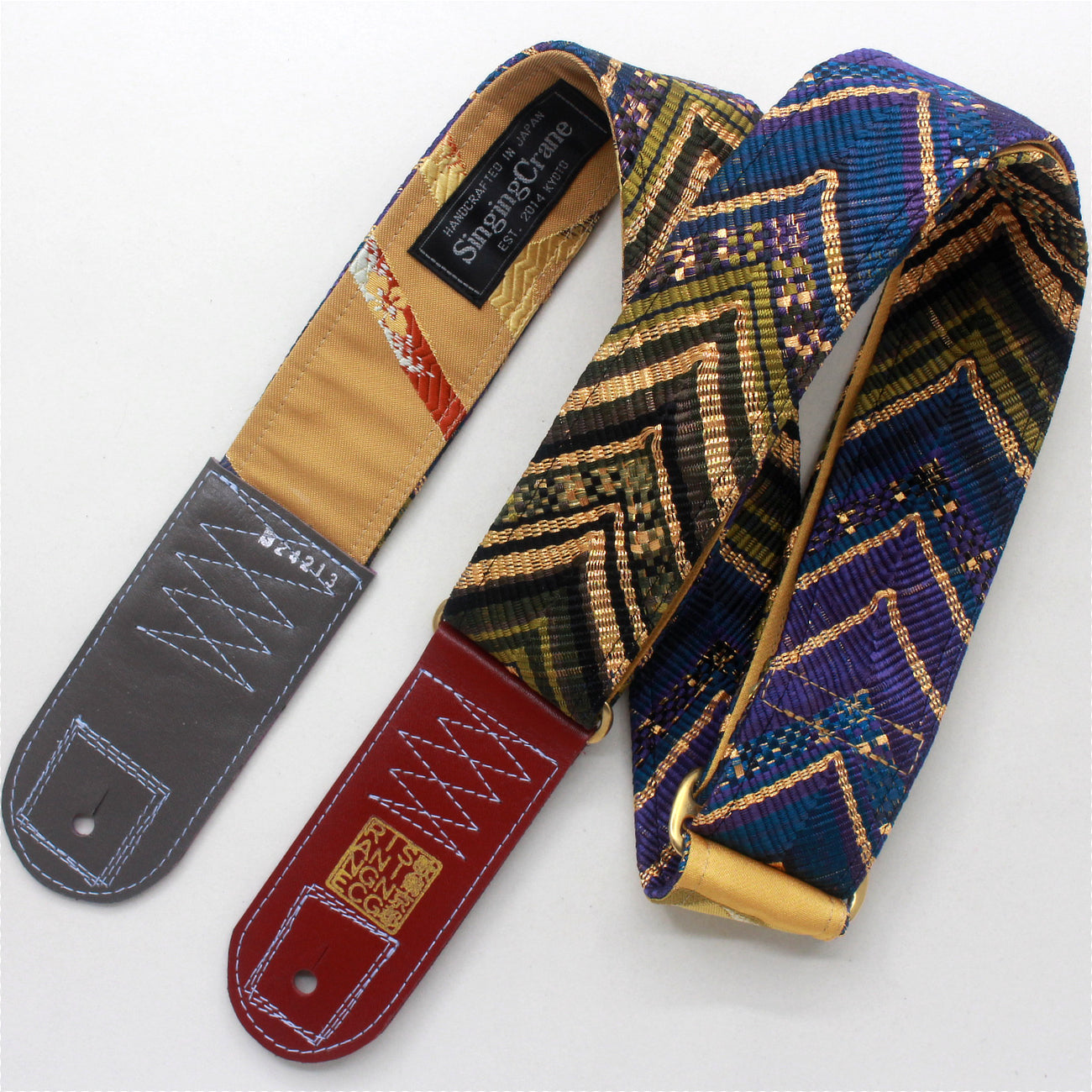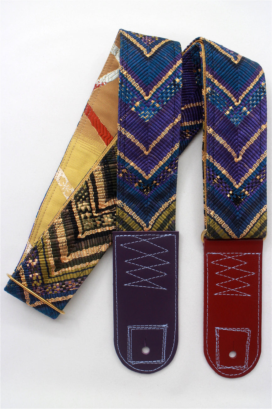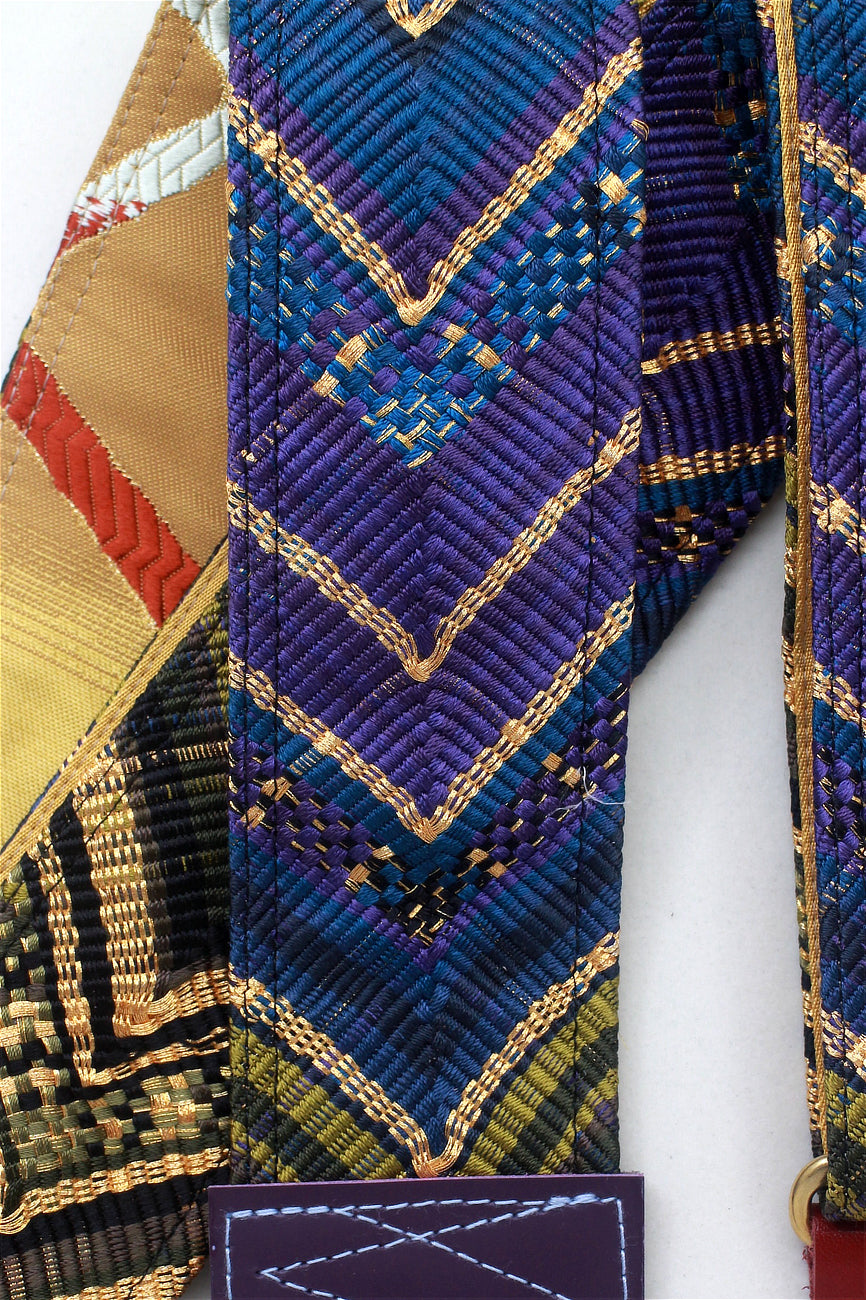 Unique and beautiful guitar strap [SC324213] - hand made in Japan from recycled silk woven kimono obi, leather and brass