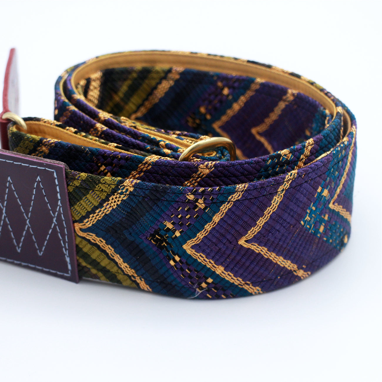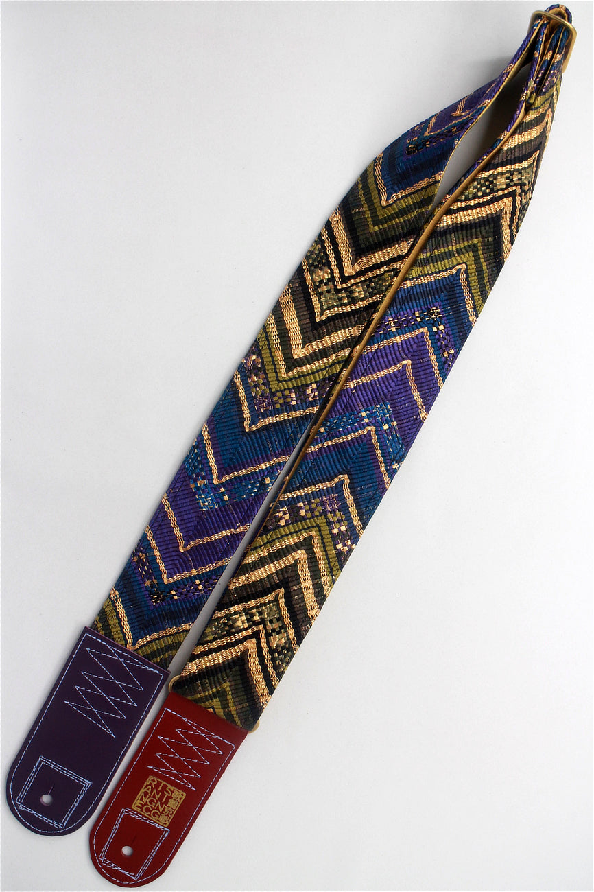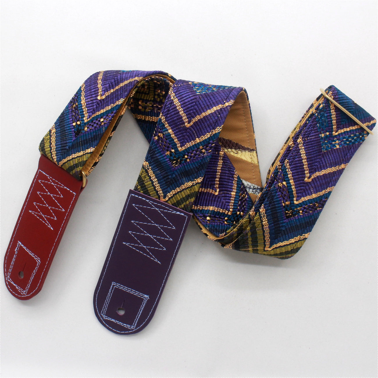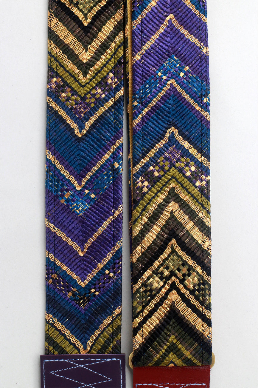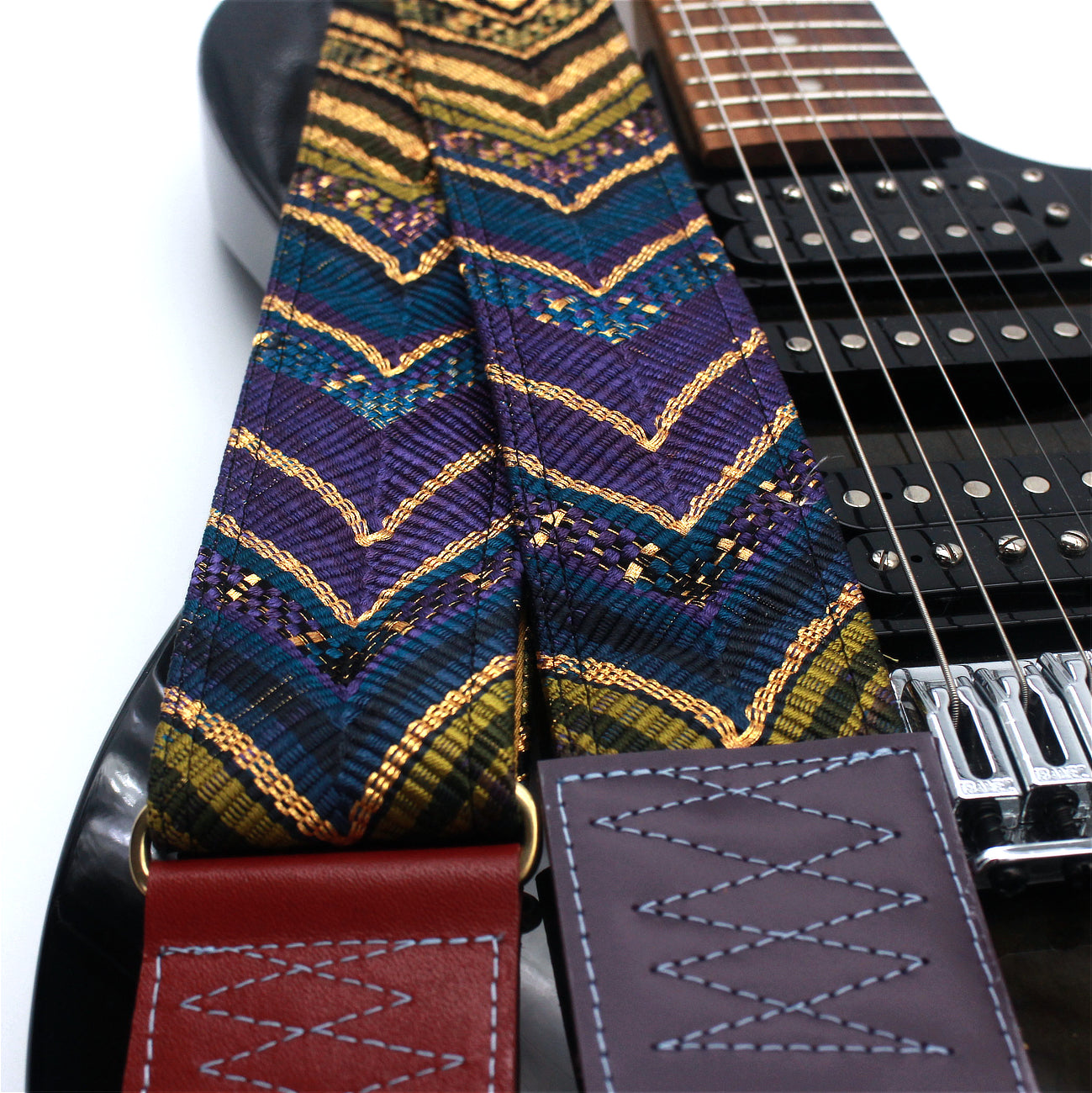 Unique and beautiful guitar strap [SC324213] - hand made in Japan from recycled silk woven kimono obi, leather and brass