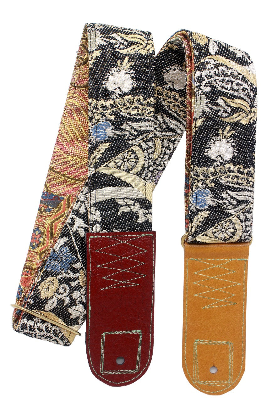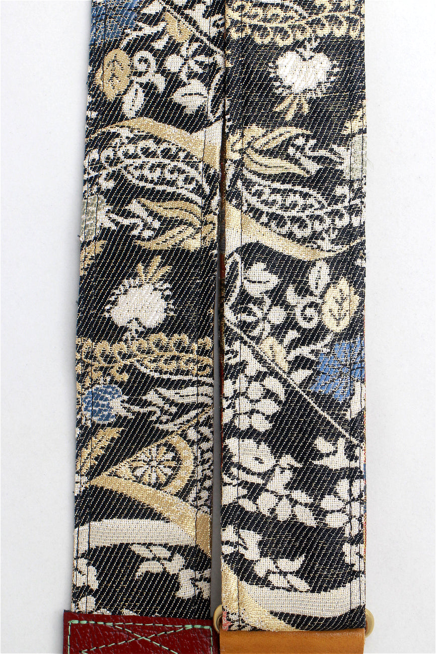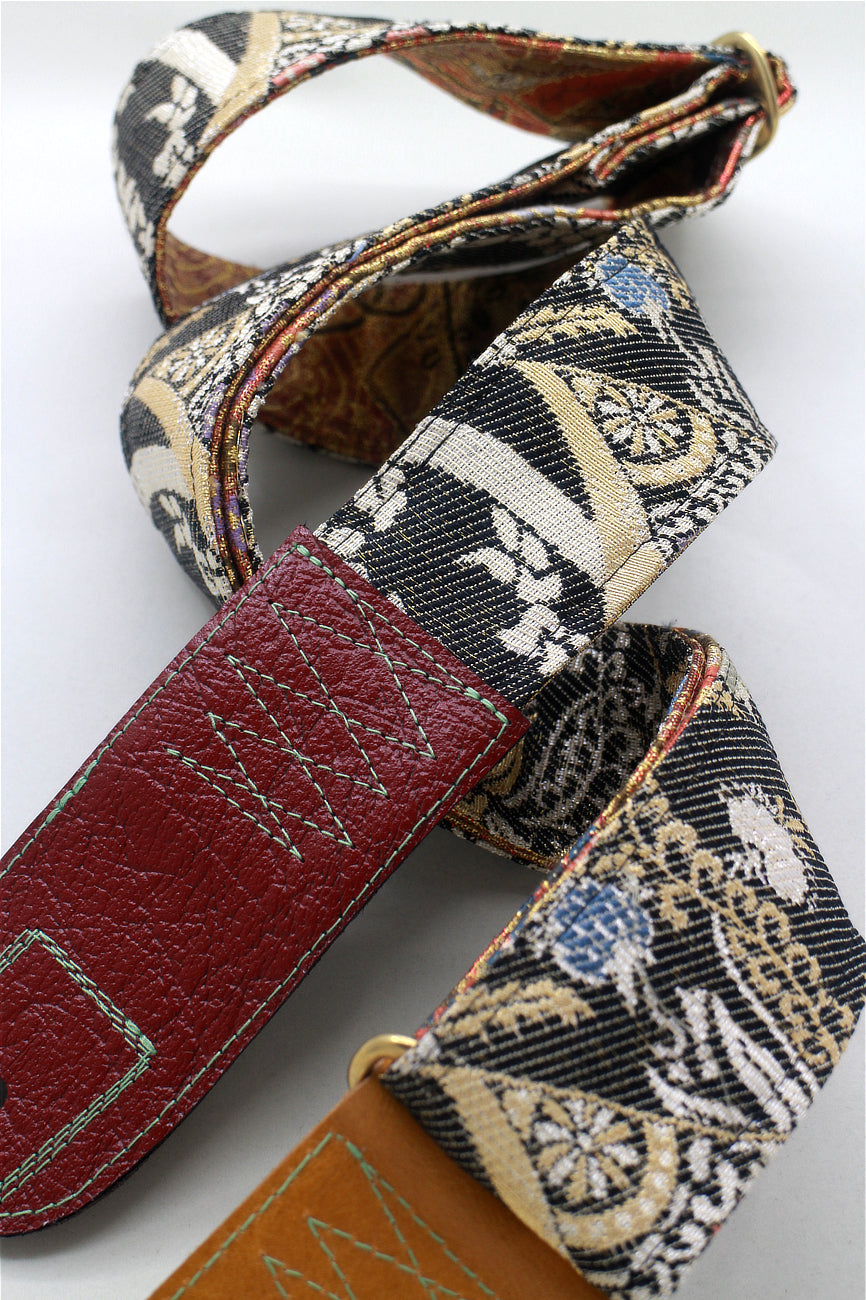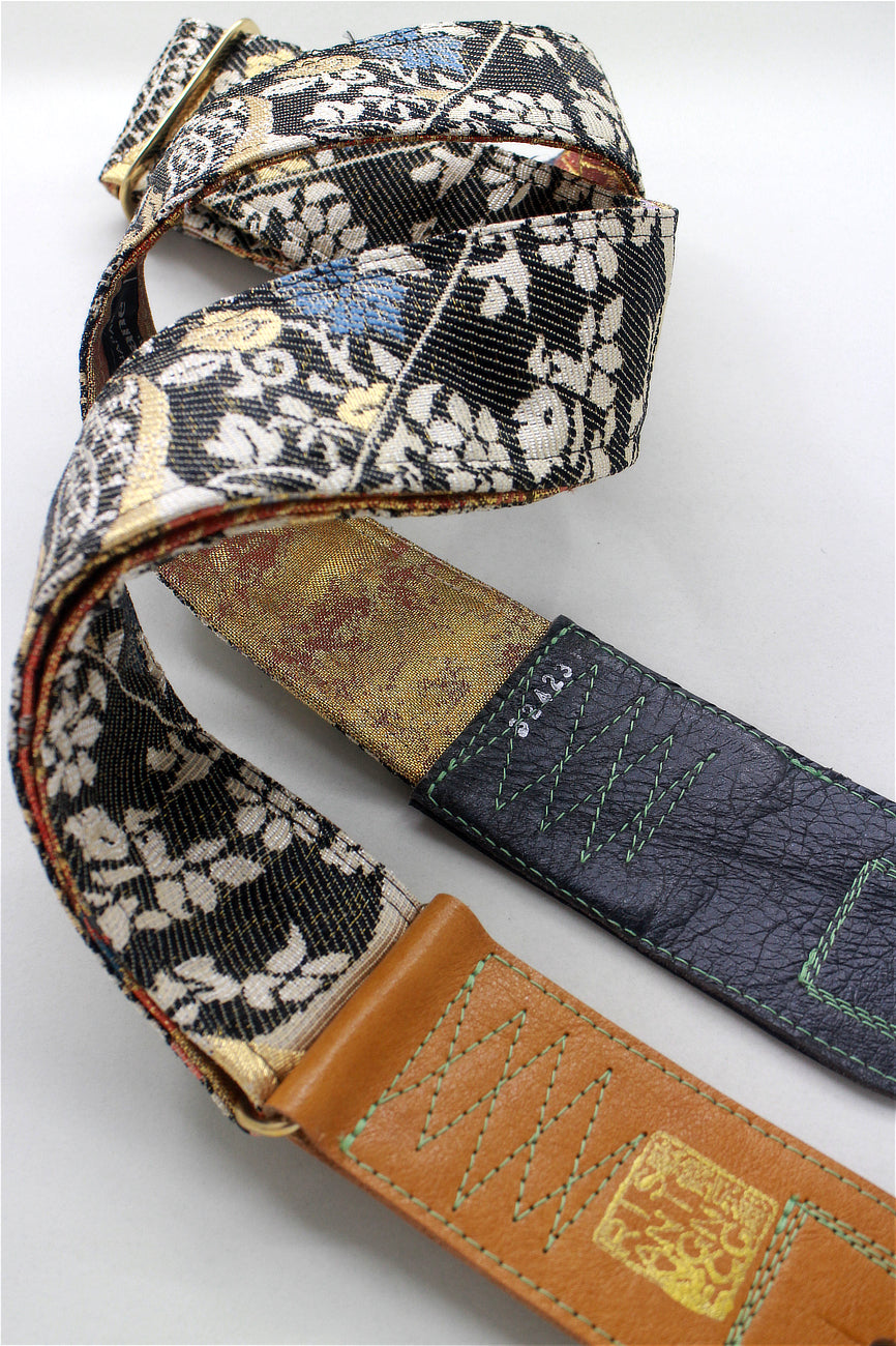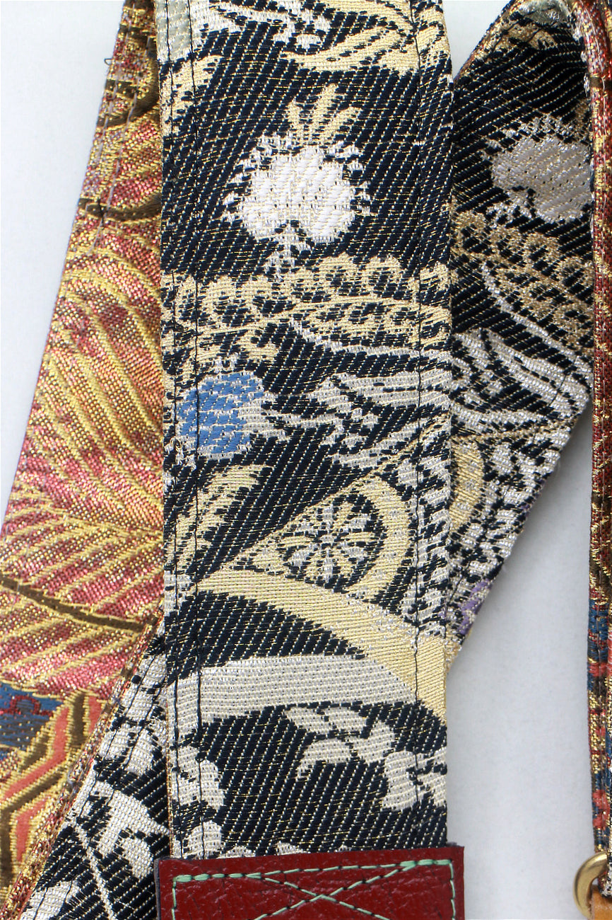 Unique and beautiful guitar strap [SC324231] - hand made in Japan from recycled silk woven kimono obi, leather and brass