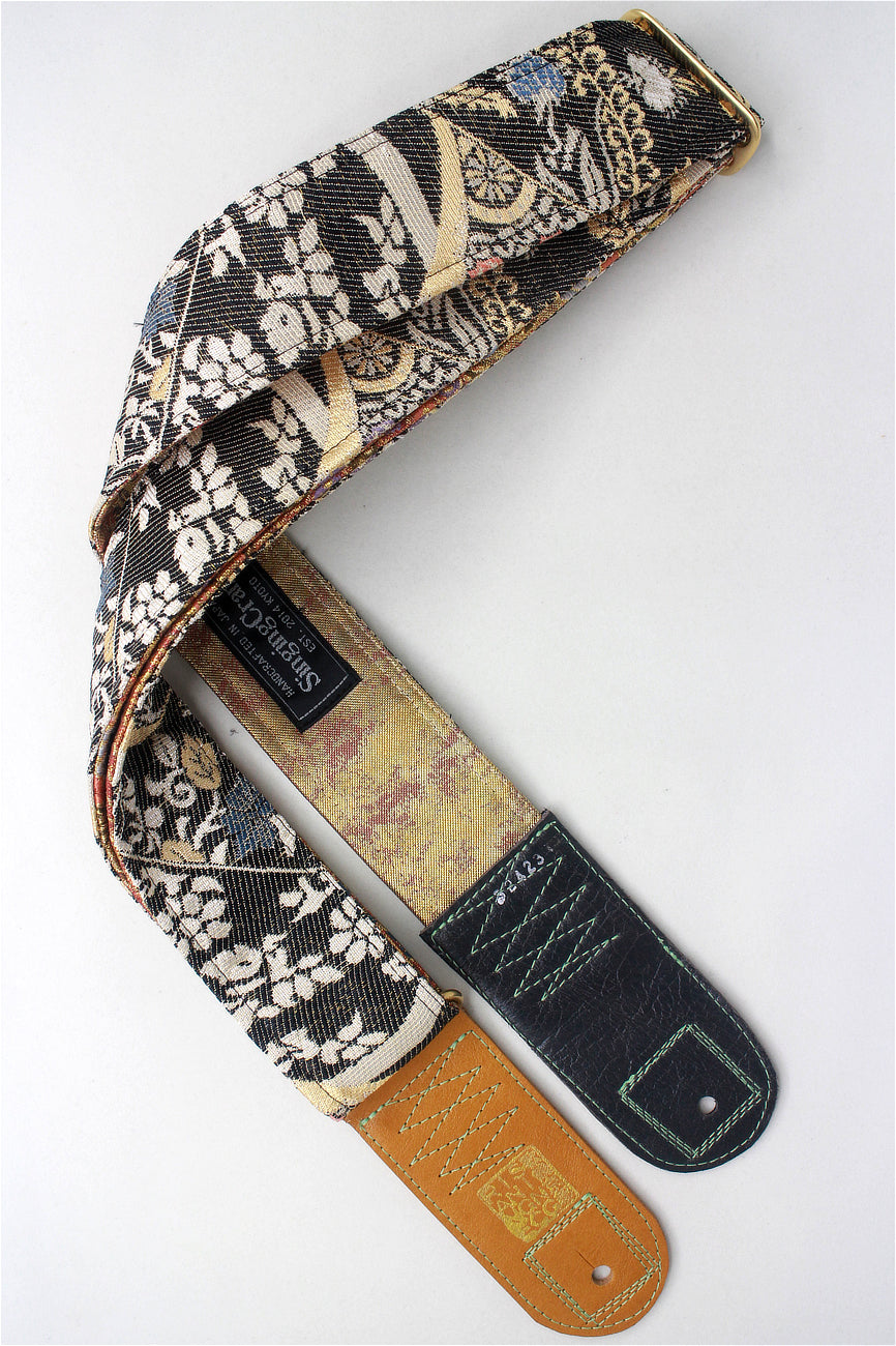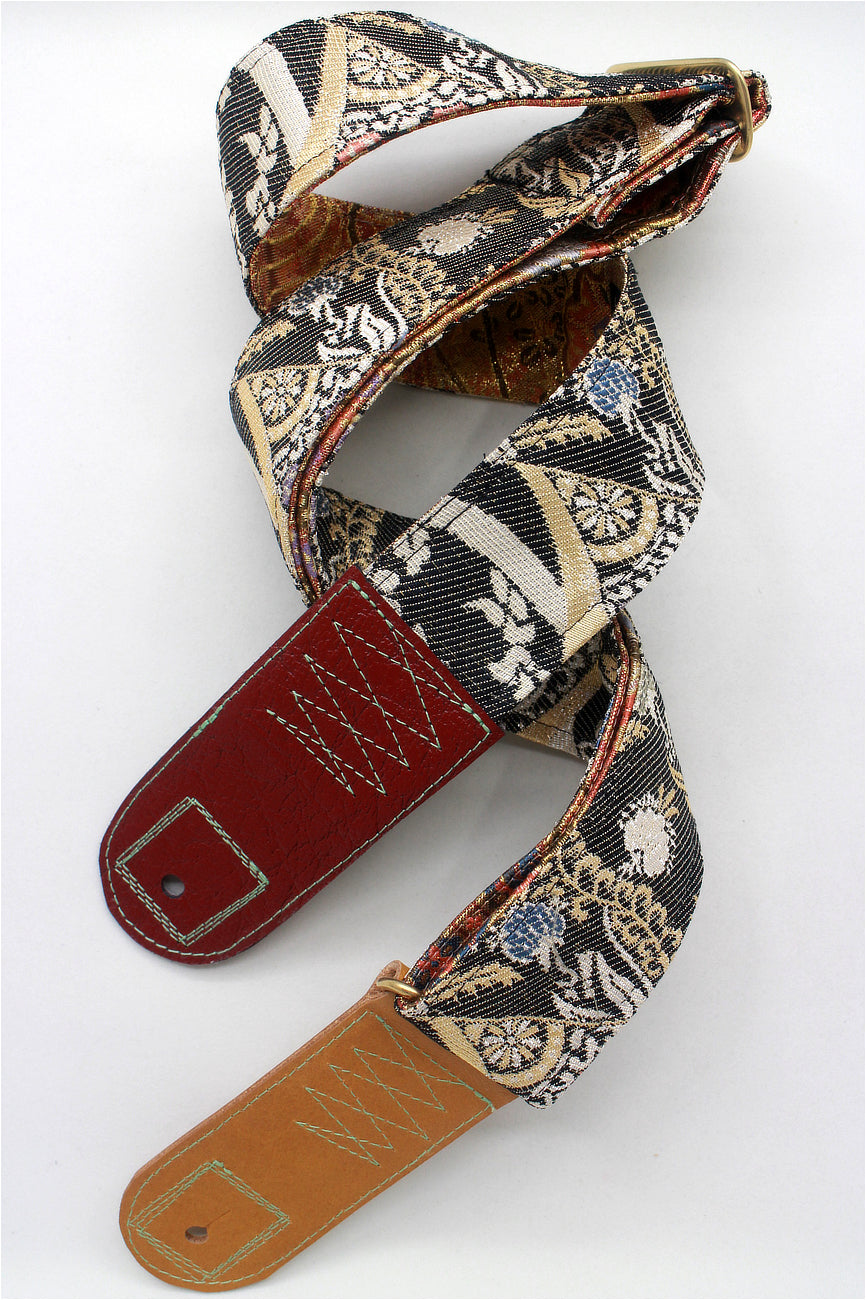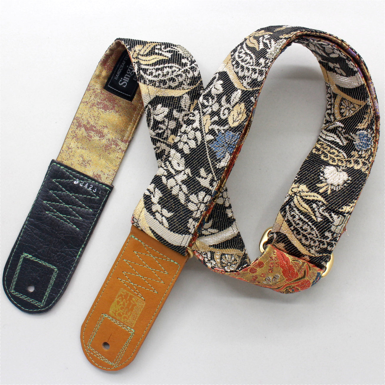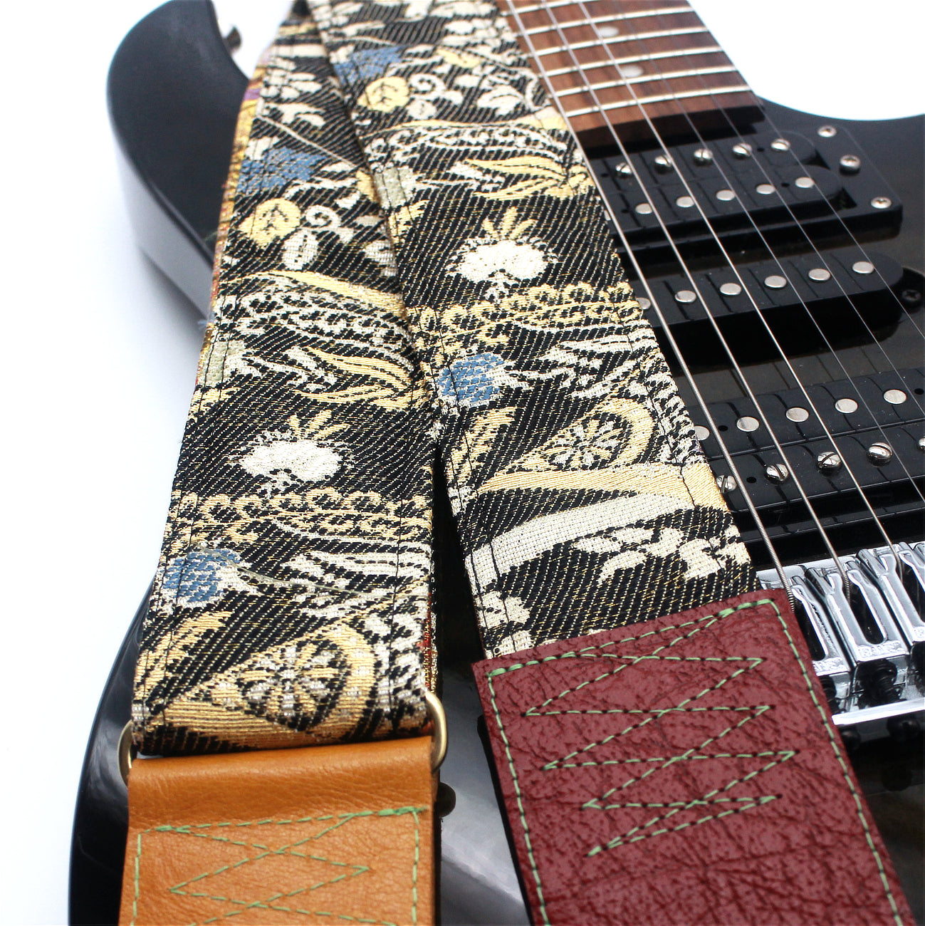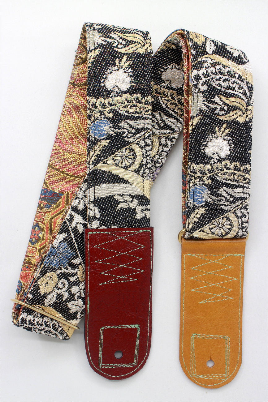 Unique and beautiful guitar strap [SC324231] - hand made in Japan from recycled silk woven kimono obi, leather and brass