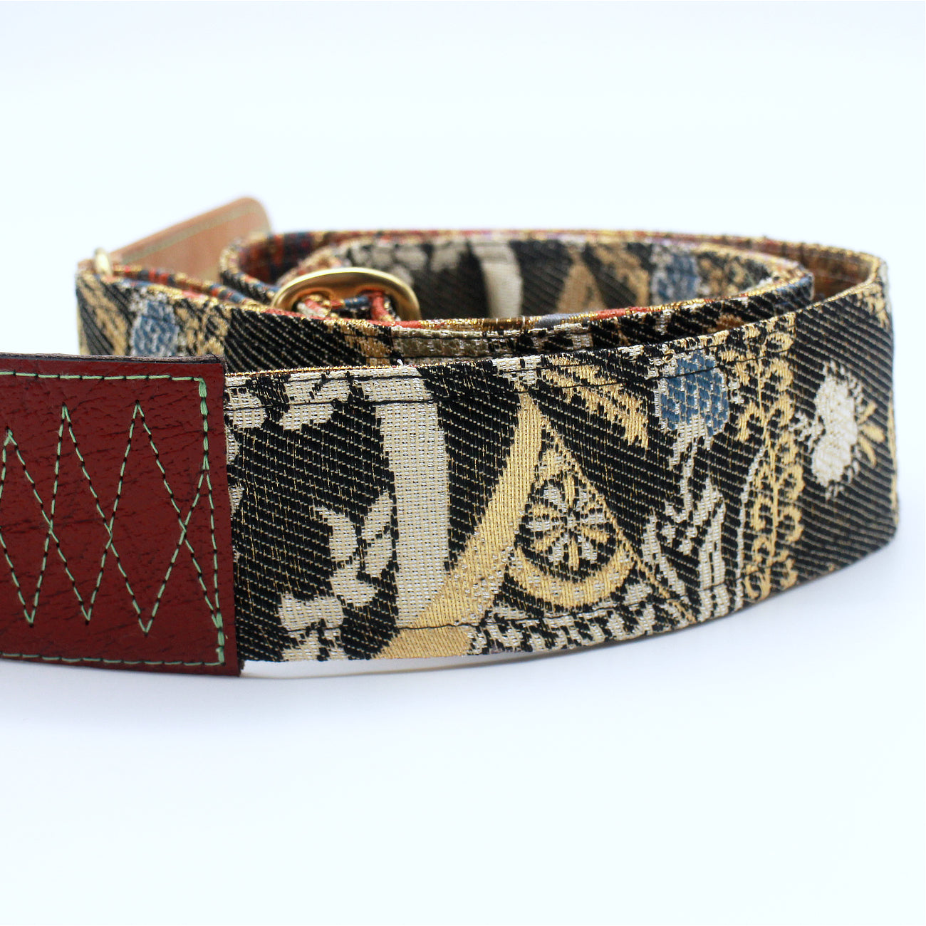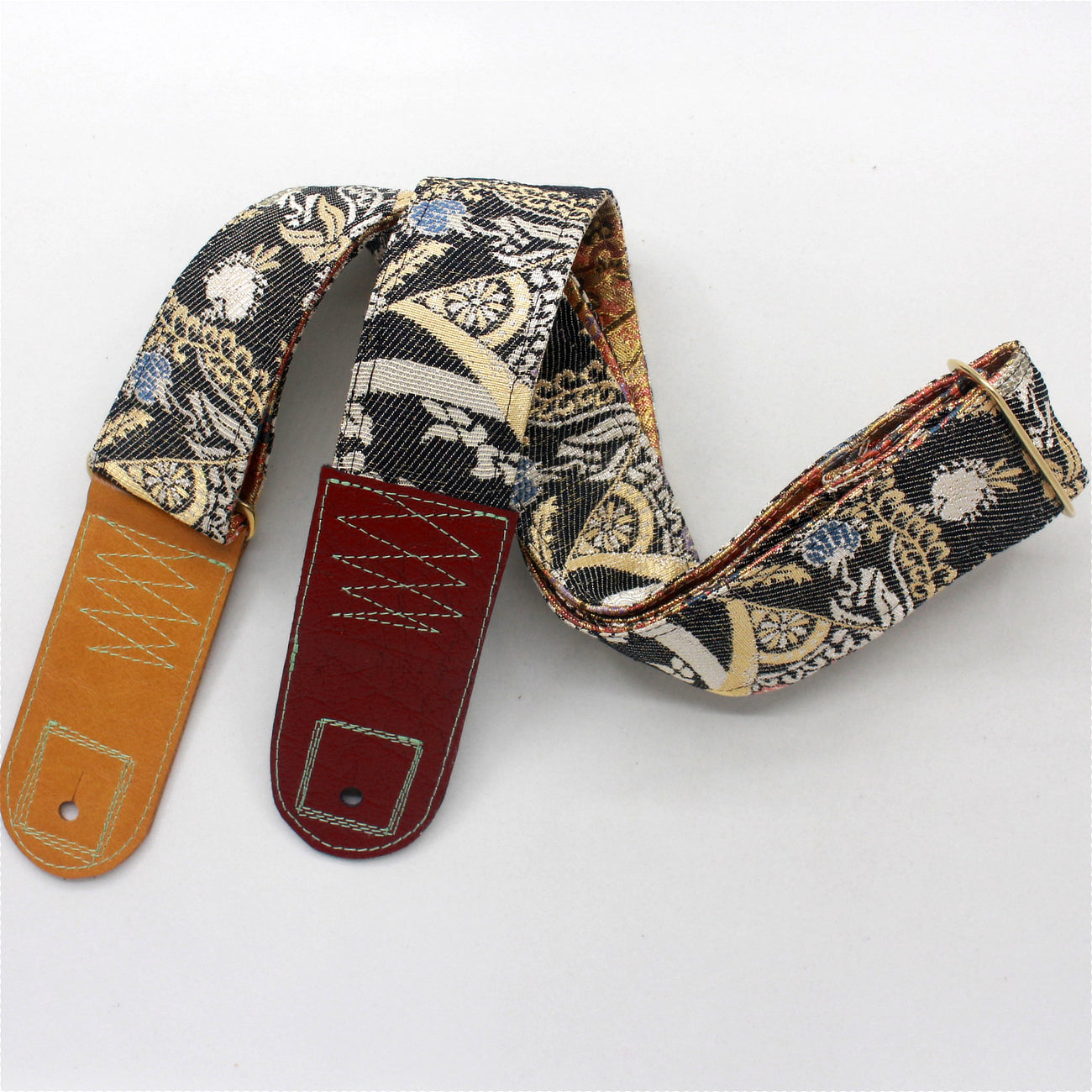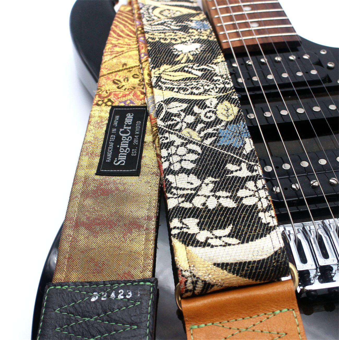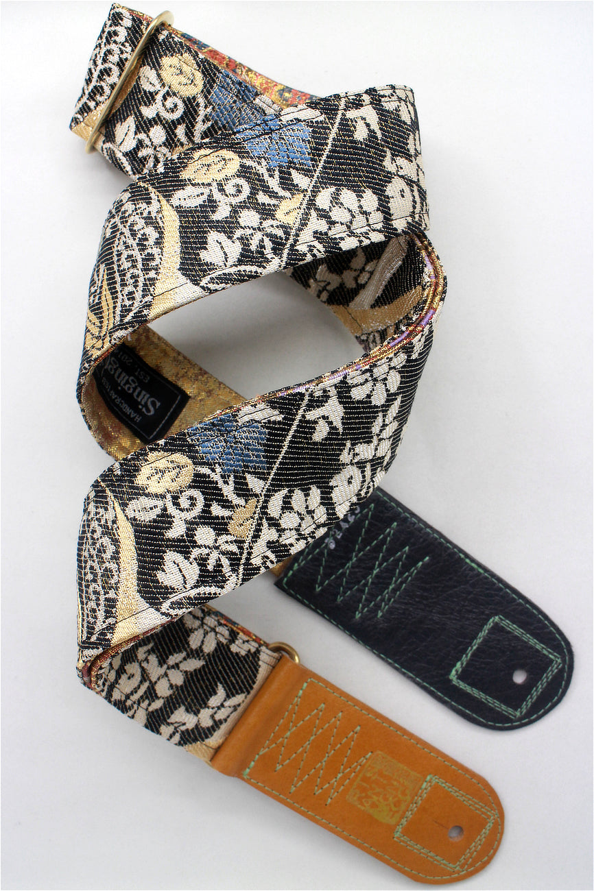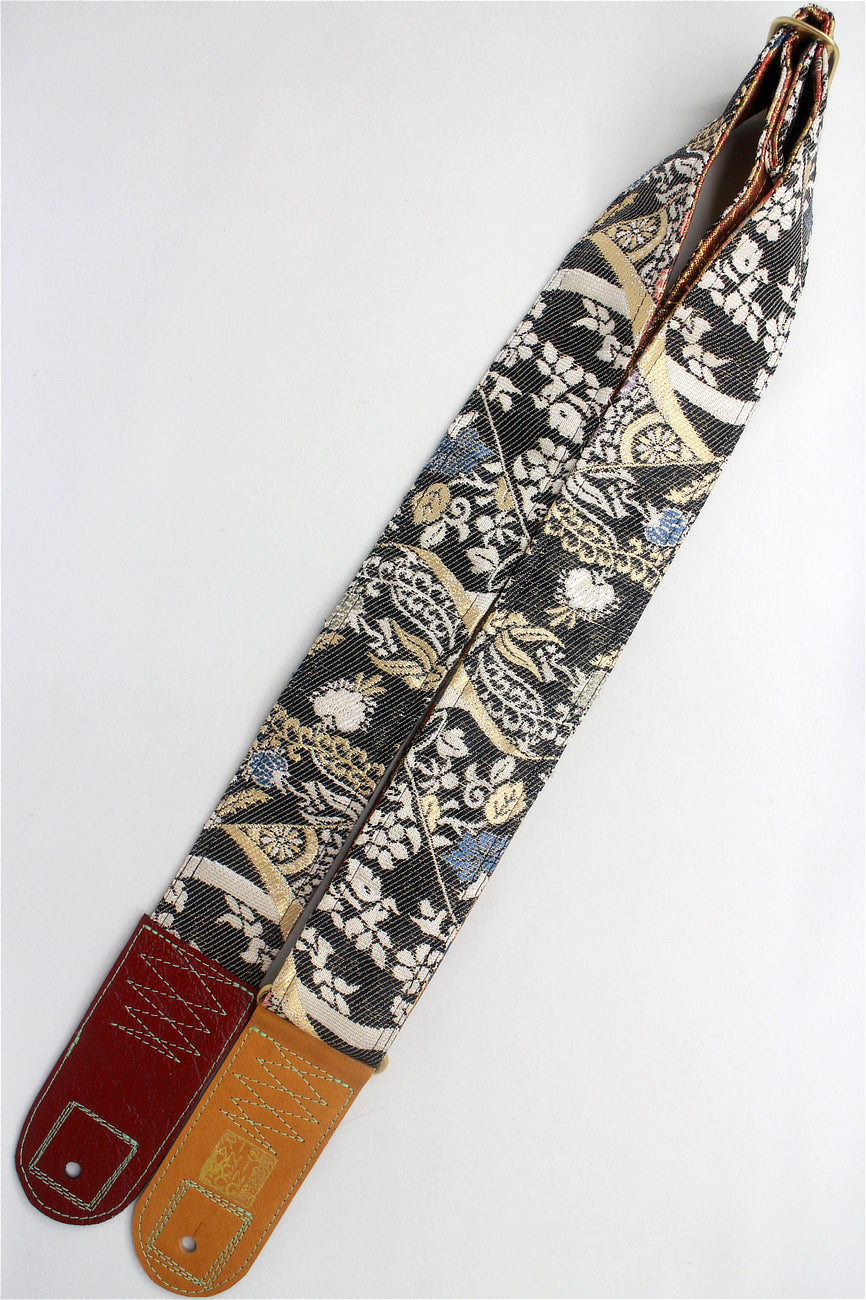 Unique and beautiful guitar strap [SC324231] - hand made in Japan from recycled silk woven kimono obi, leather and brass