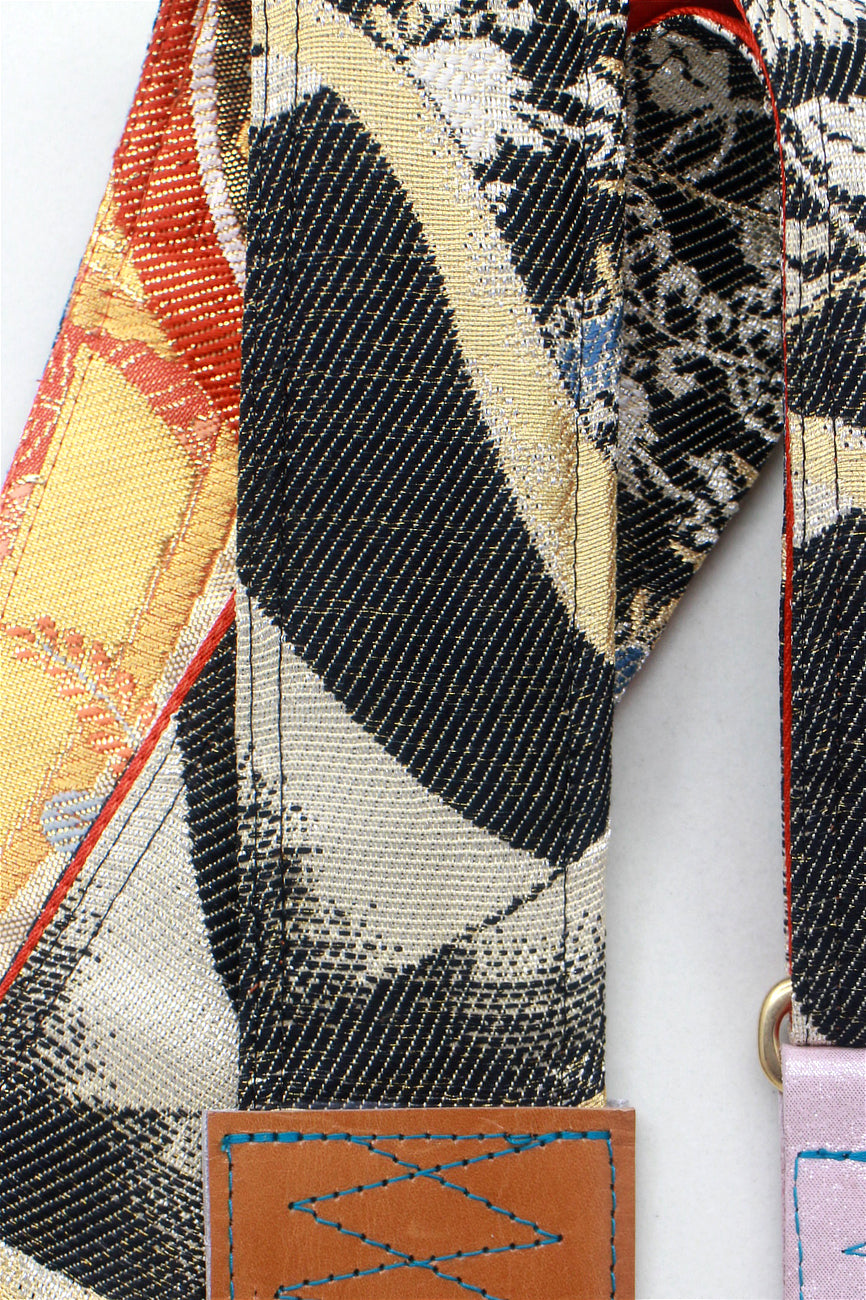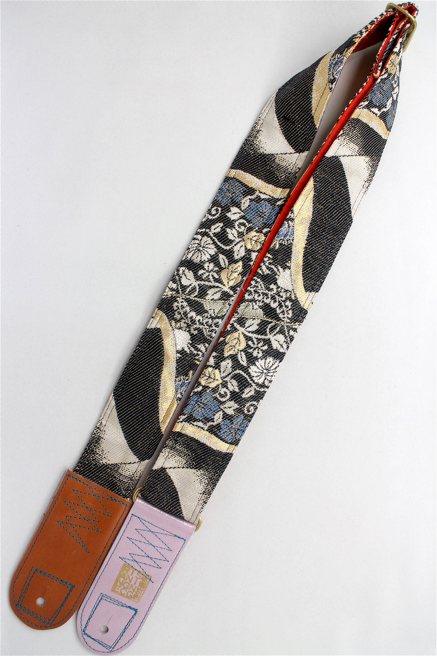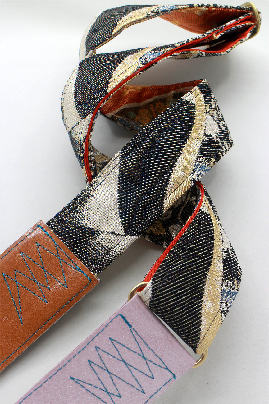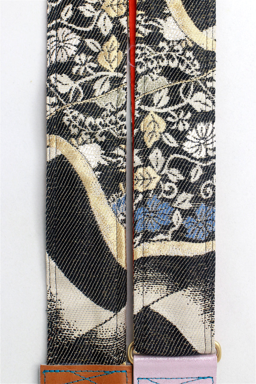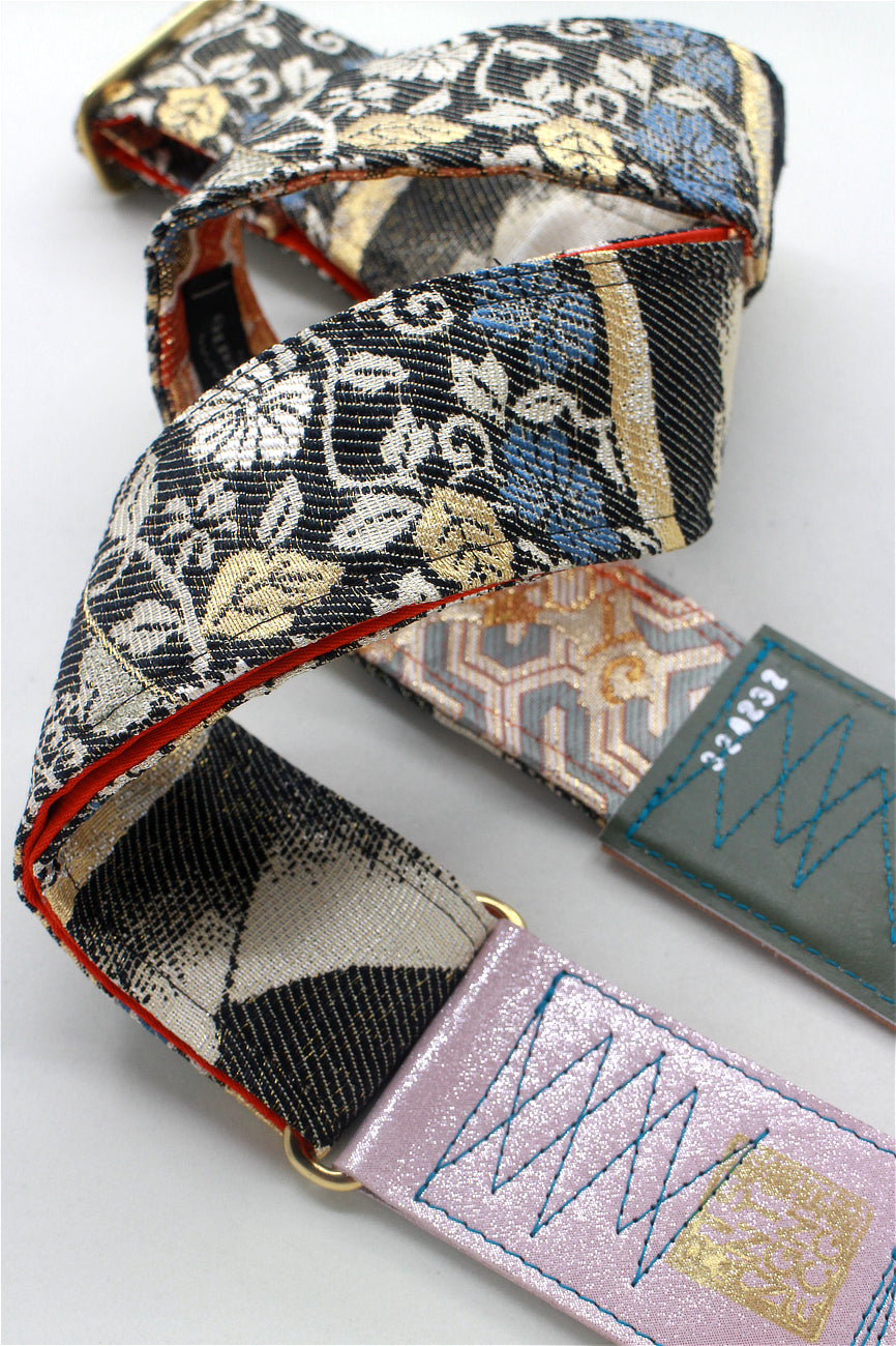 Unique and beautiful guitar strap [SC324232] - hand made in Japan from recycled silk woven kimono obi, leather and brass