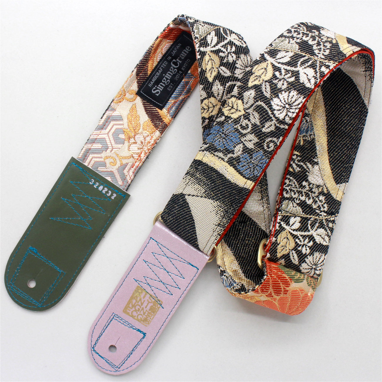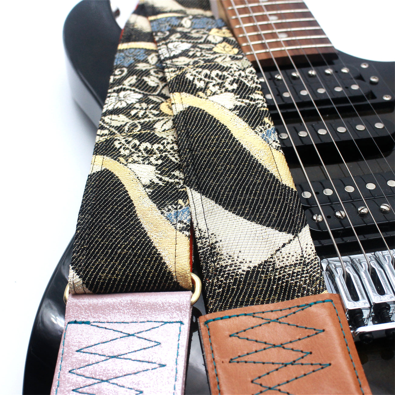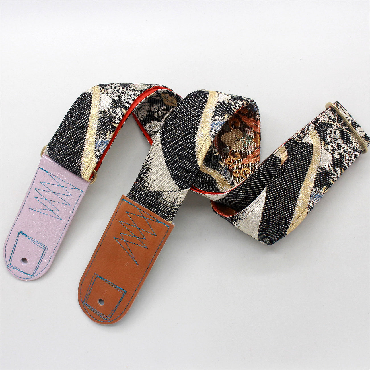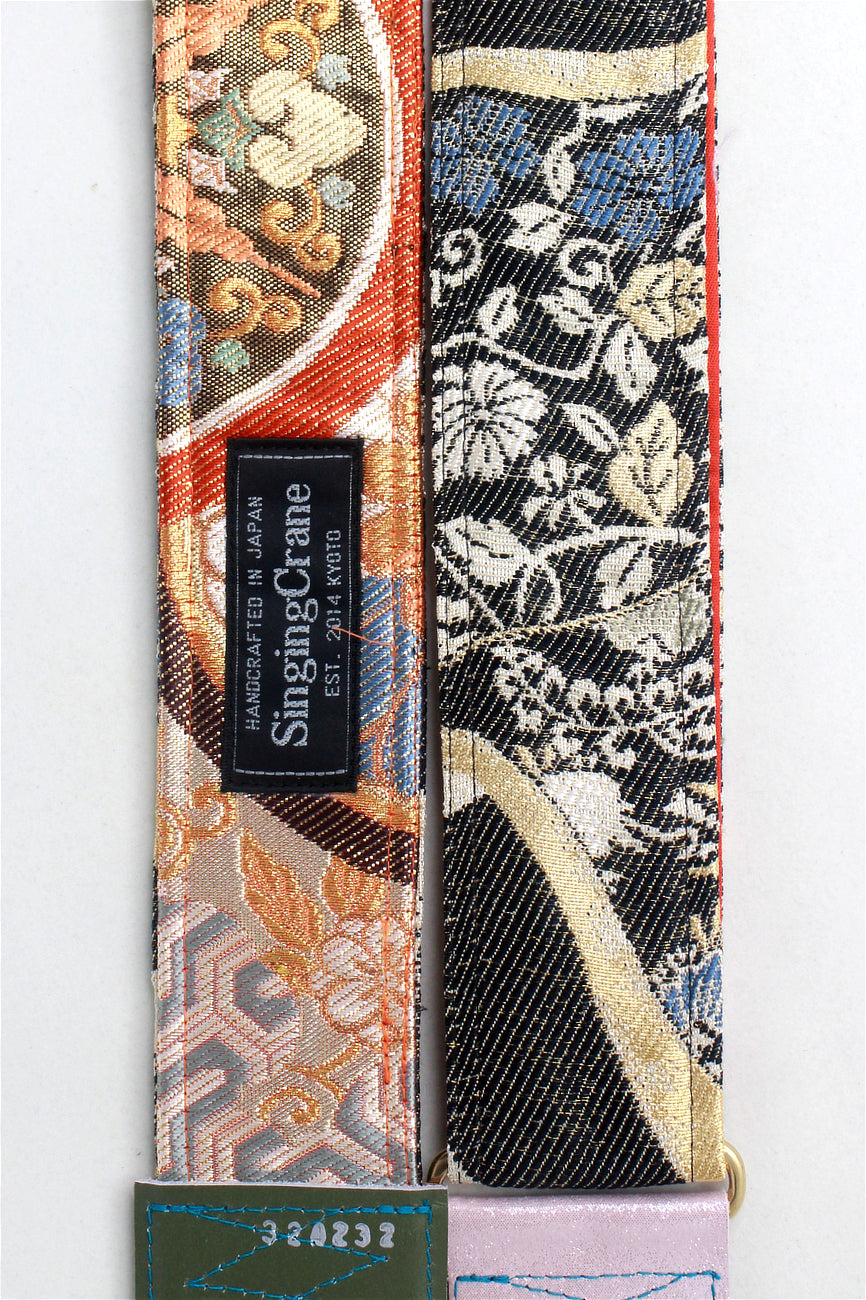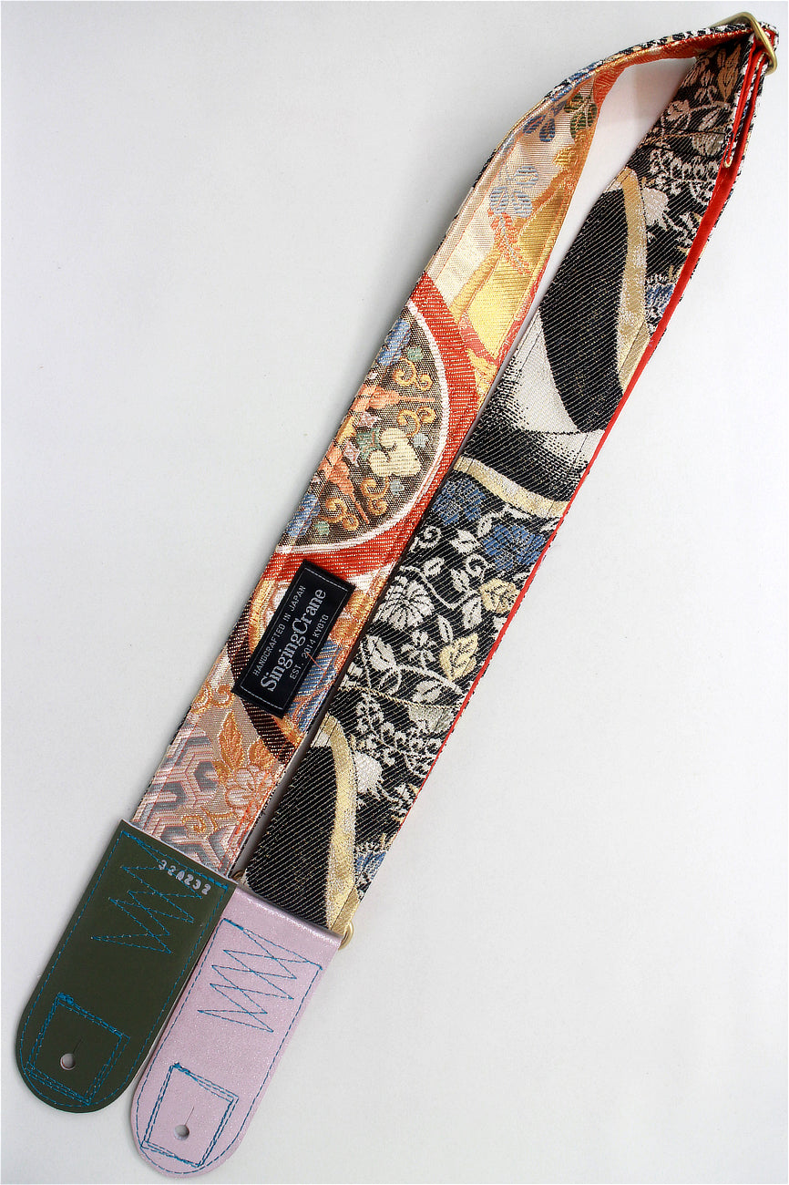 Unique and beautiful guitar strap [SC324232] - hand made in Japan from recycled silk woven kimono obi, leather and brass