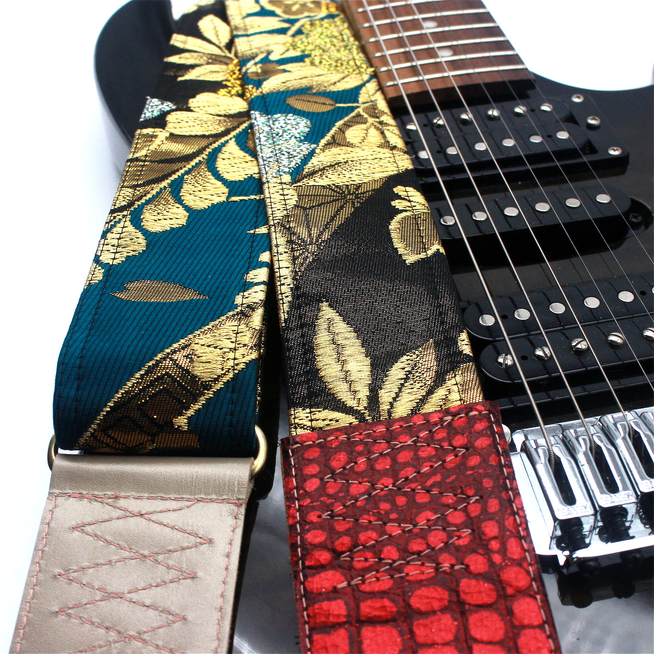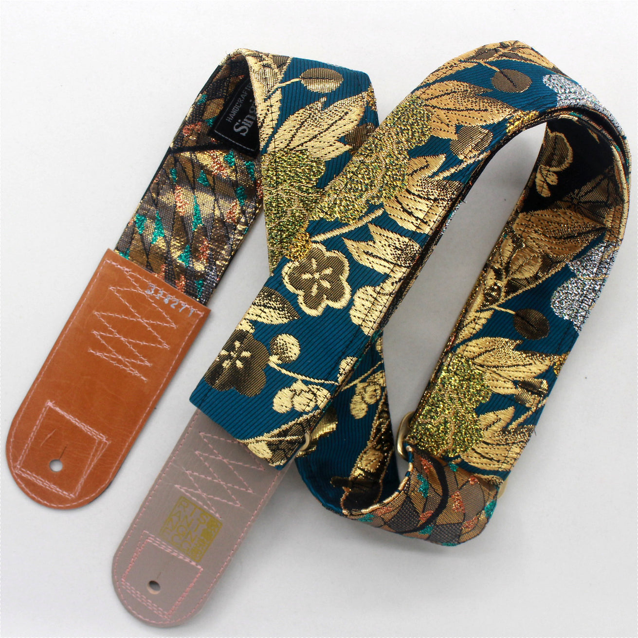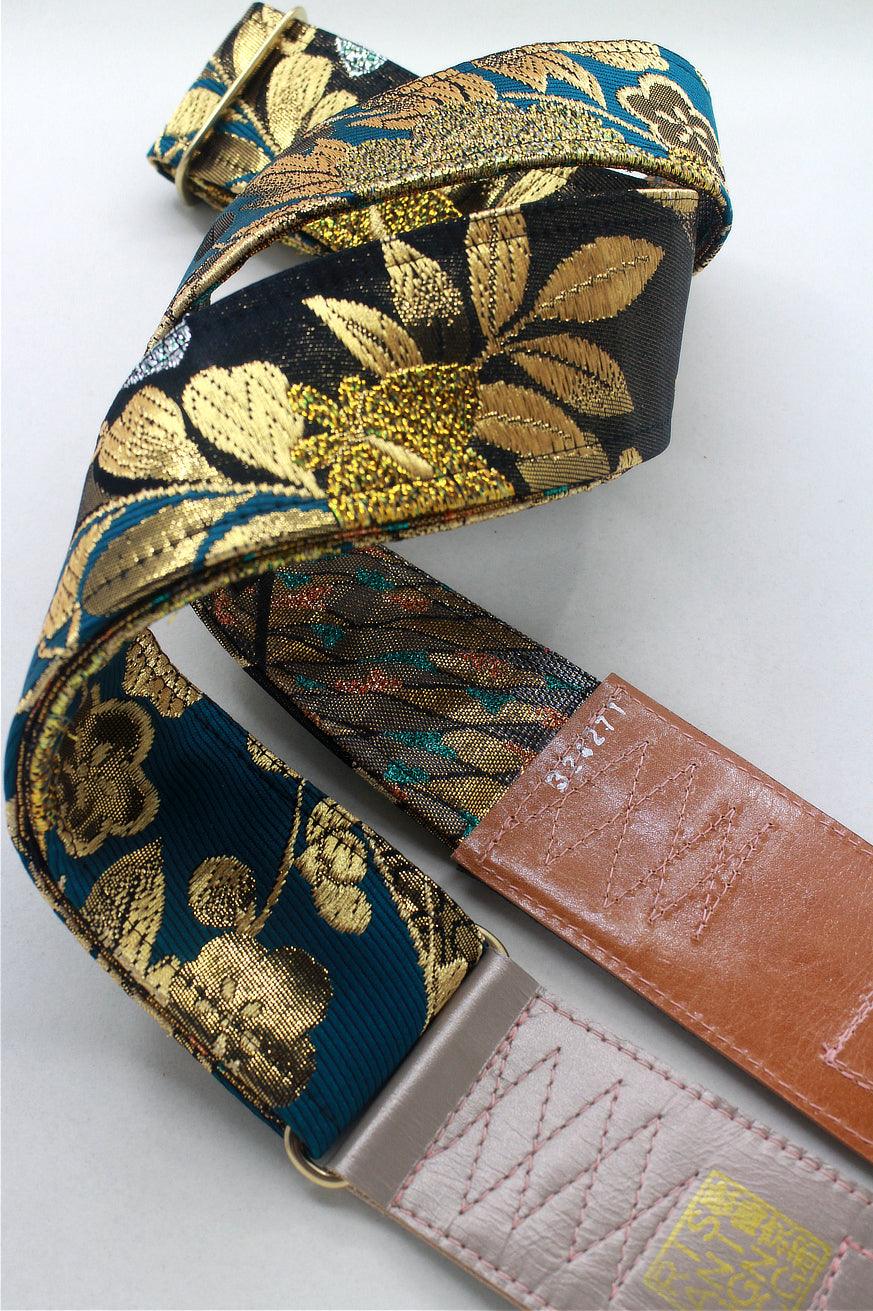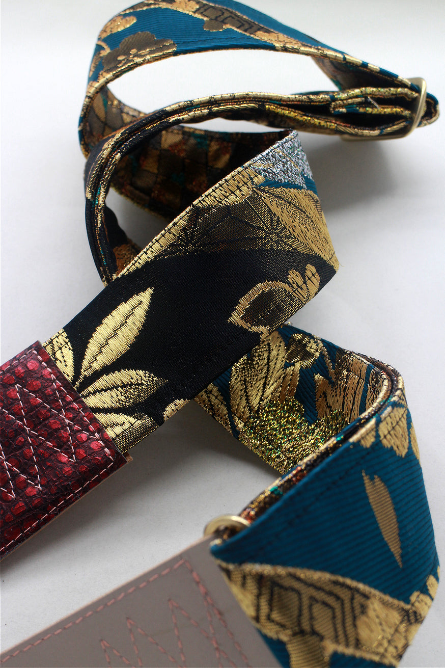Unique and beautiful guitar strap [SC324271] - hand made in Japan from recycled silk woven kimono obi, leather and brass
