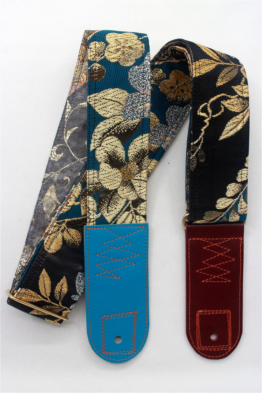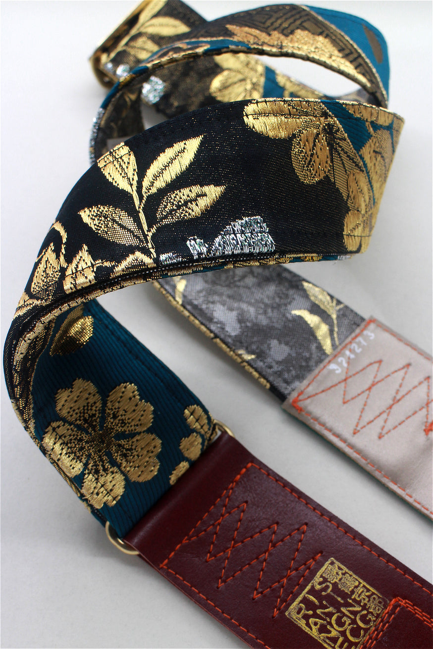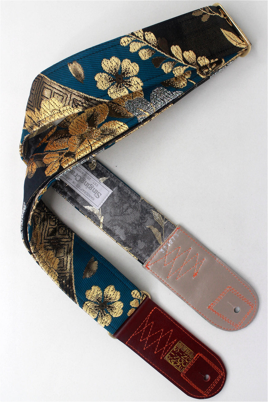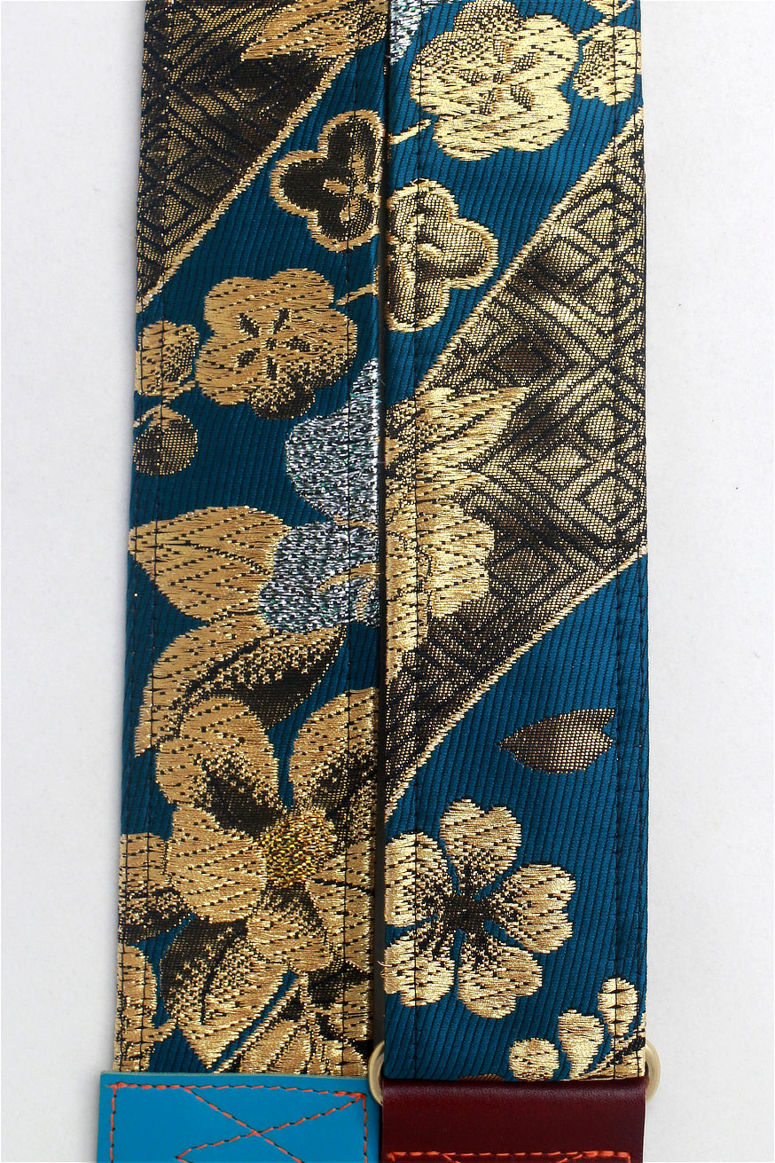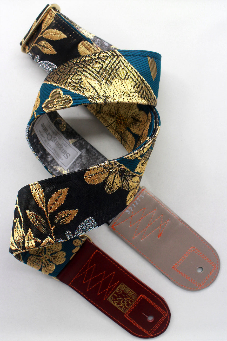 Unique and beautiful guitar strap [SC324273] - hand made in Japan from recycled silk woven kimono obi, leather and brass