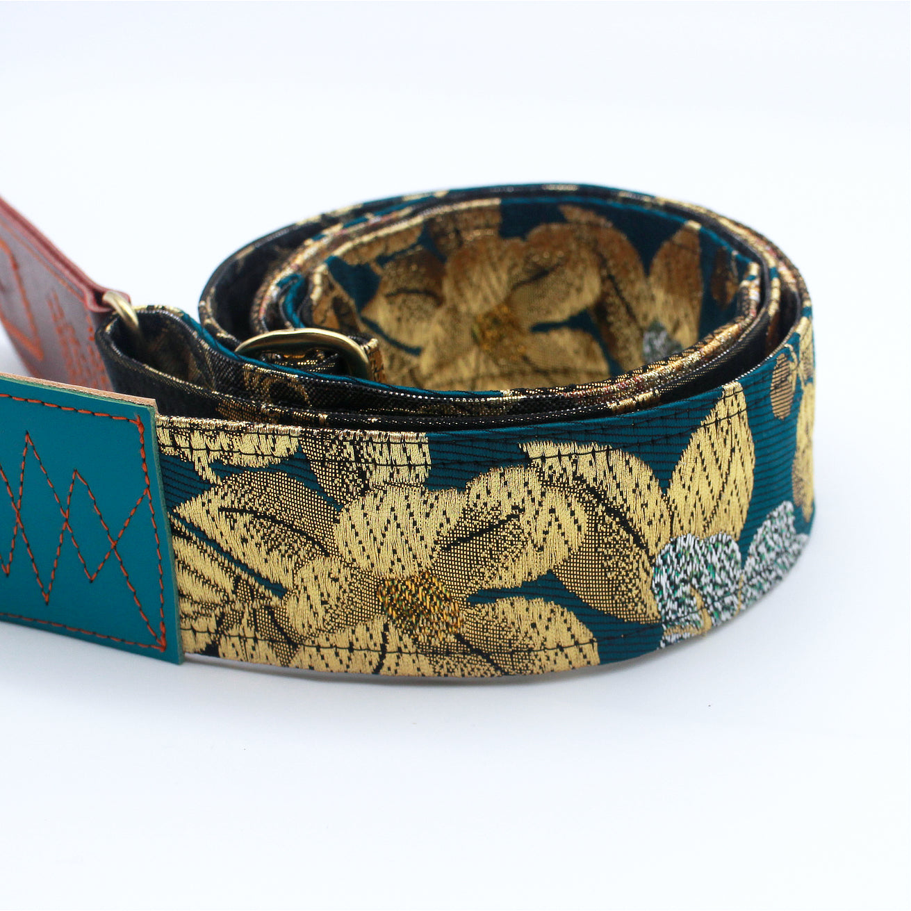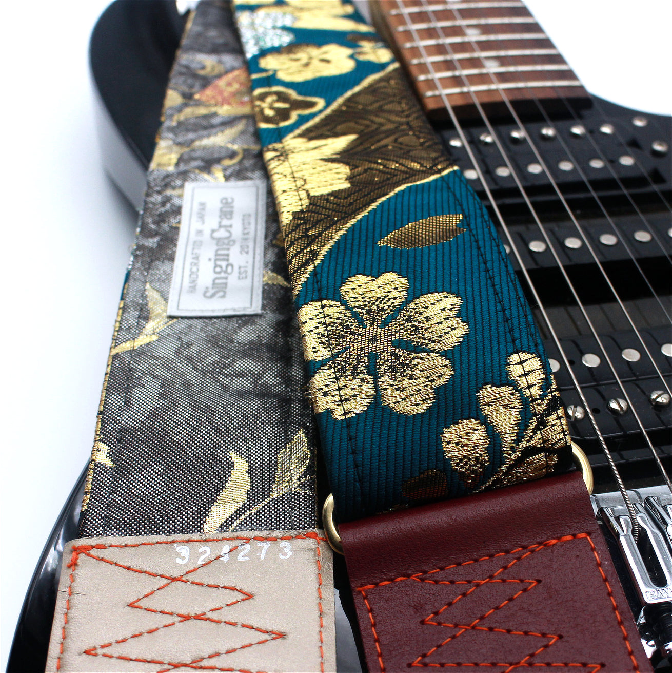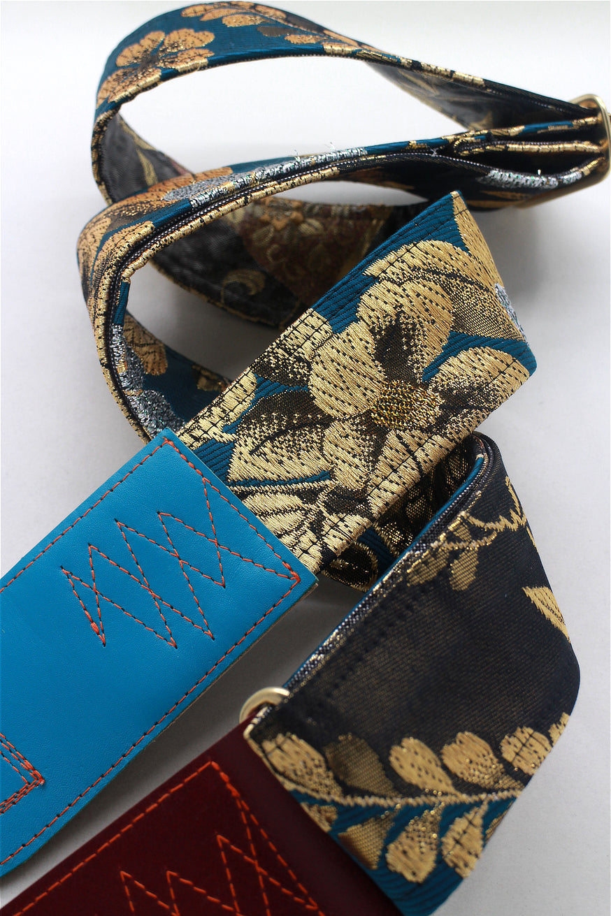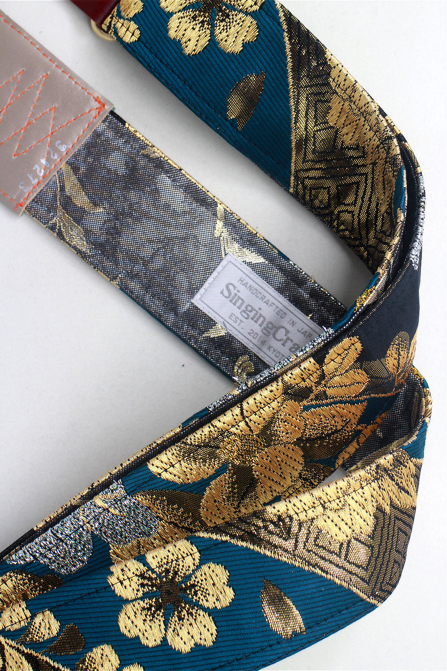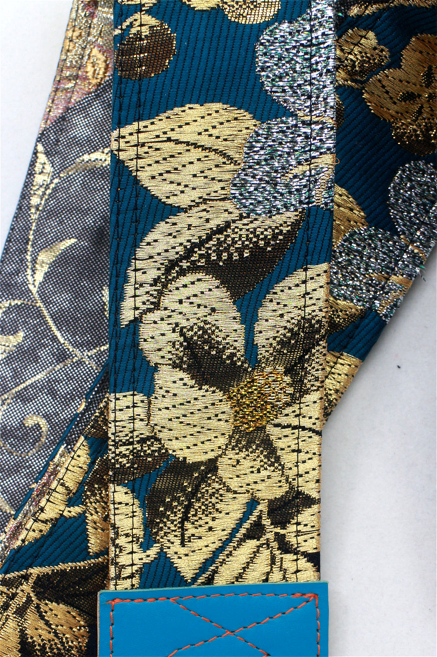 Unique and beautiful guitar strap [SC324273] - hand made in Japan from recycled silk woven kimono obi, leather and brass