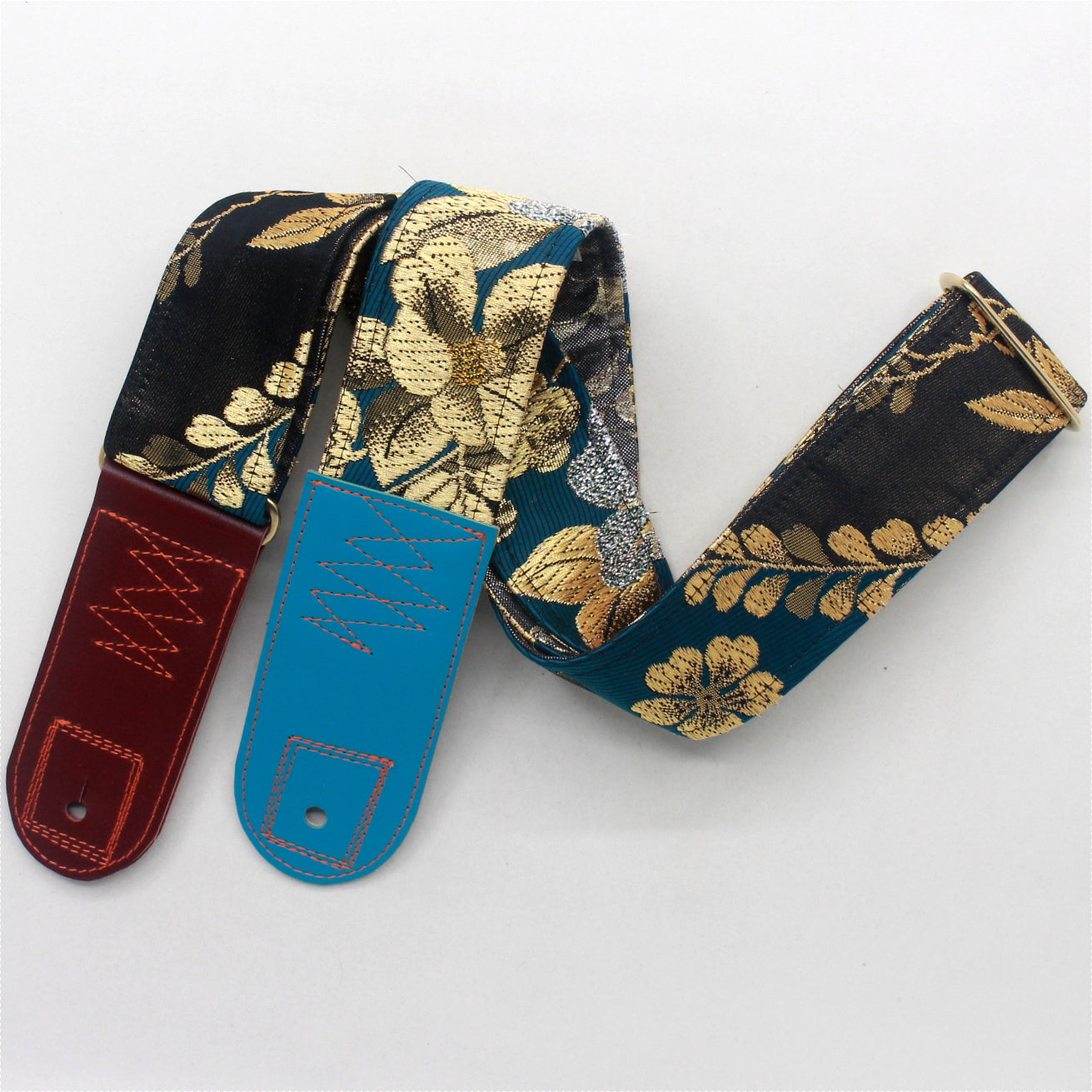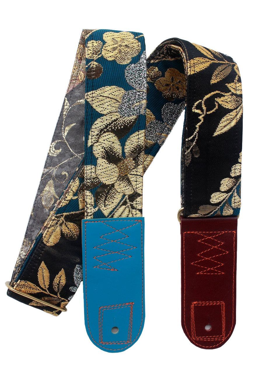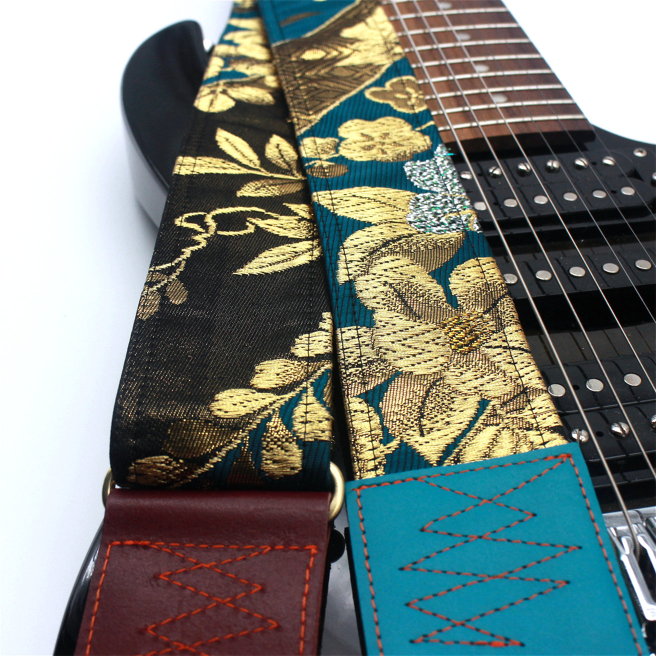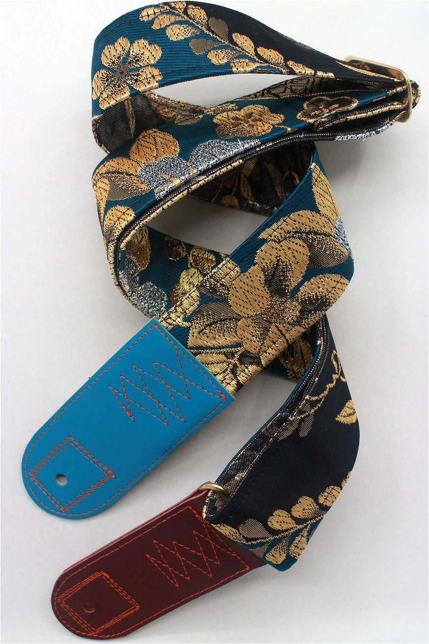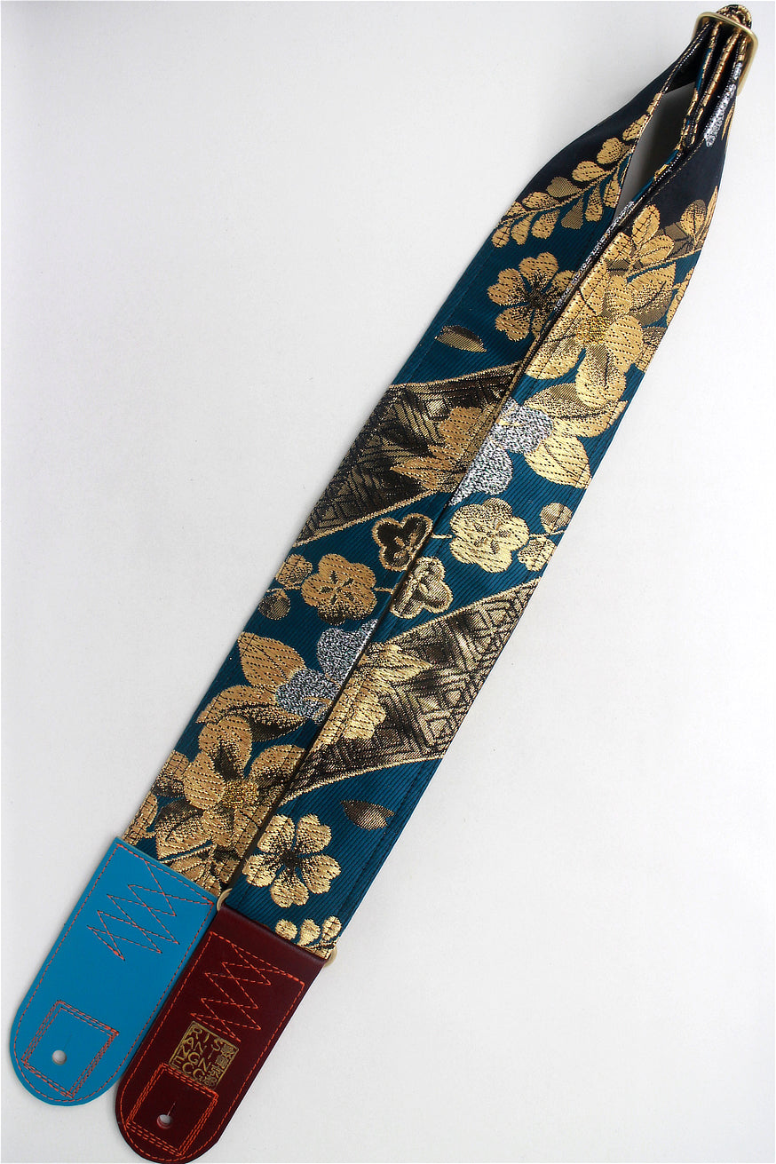 Unique and beautiful guitar strap [SC324273] - hand made in Japan from recycled silk woven kimono obi, leather and brass