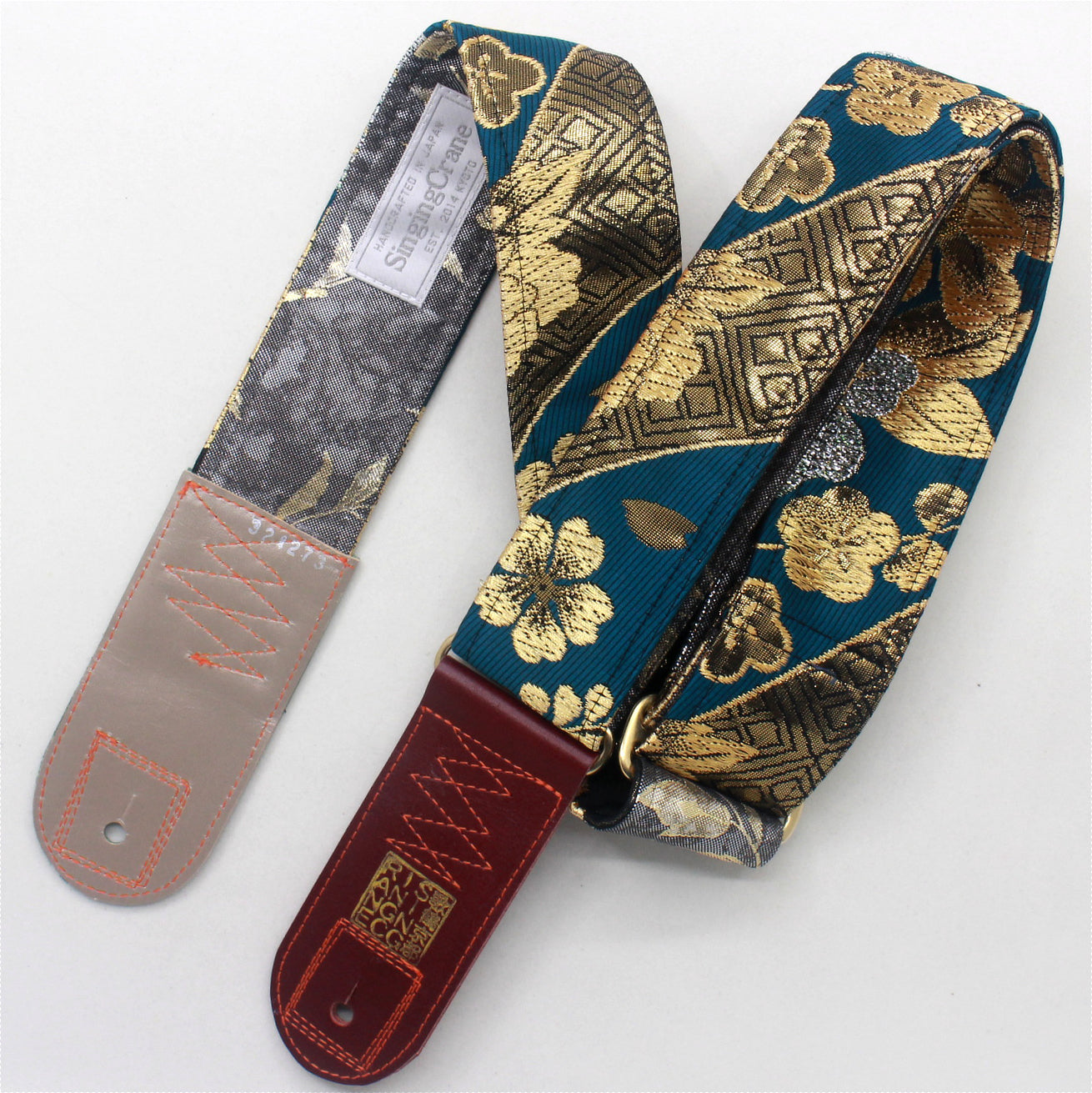 Brand new Singing Crane handmade silk kimono obi guitar strap
