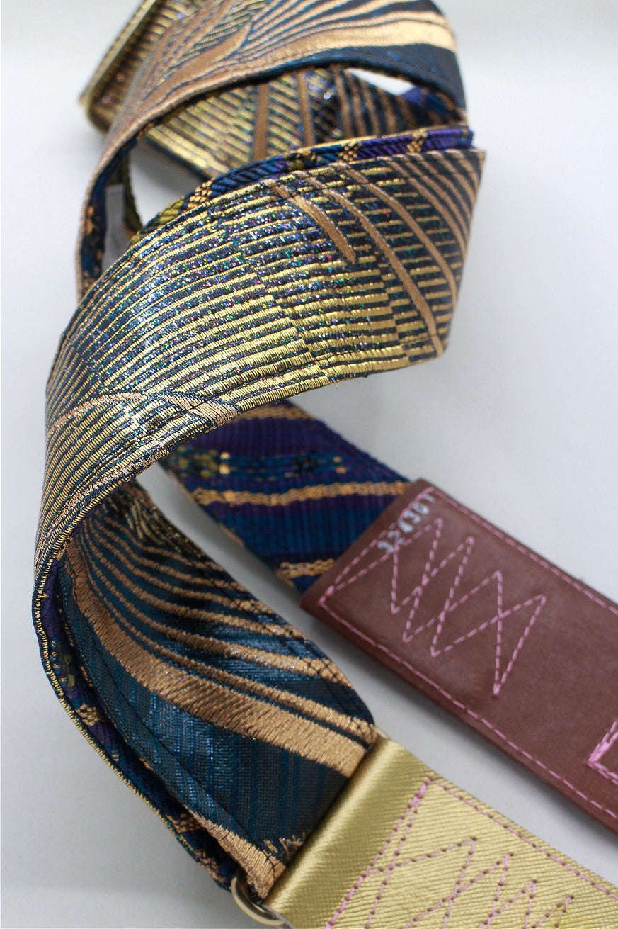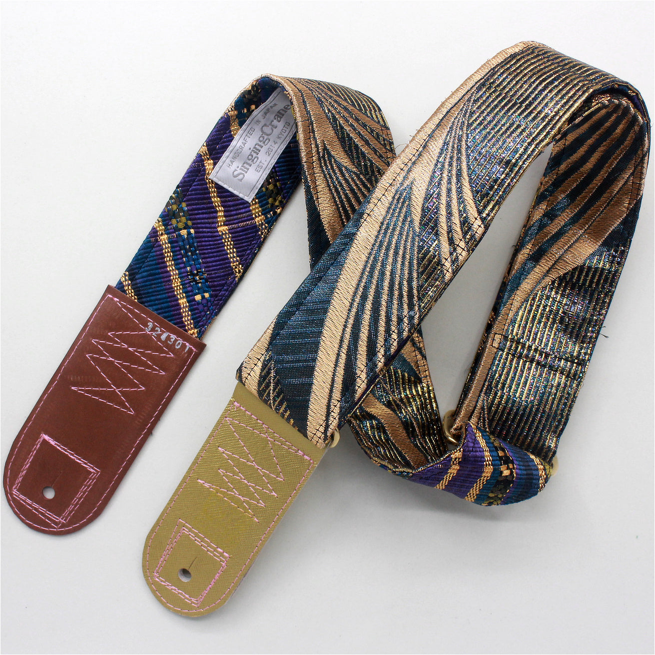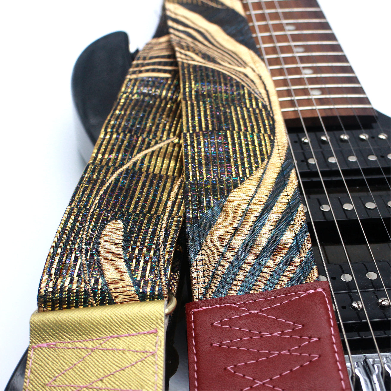 Unique and beautiful guitar strap [SC324301] - hand made in Japan from recycled silk woven kimono obi, leather and brass