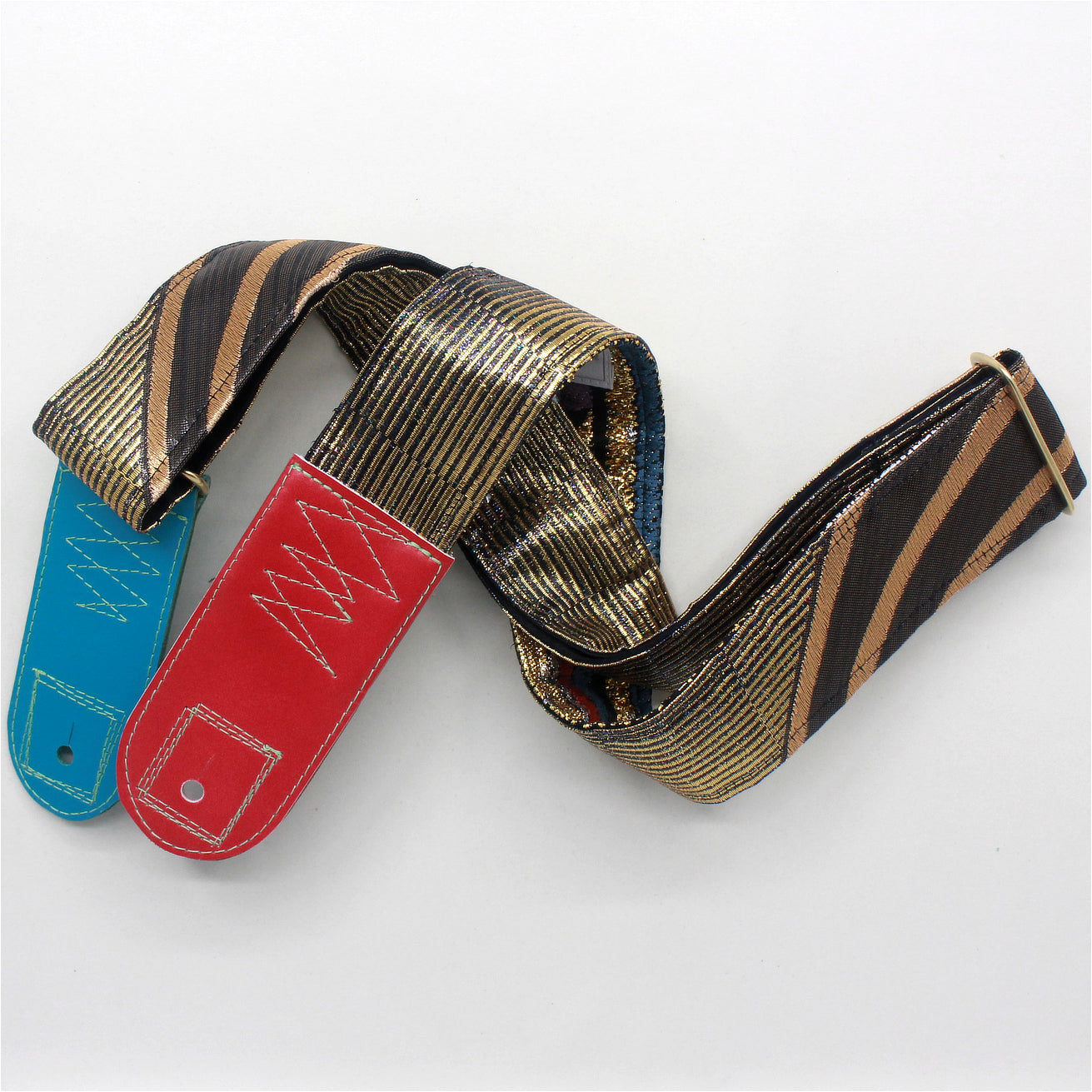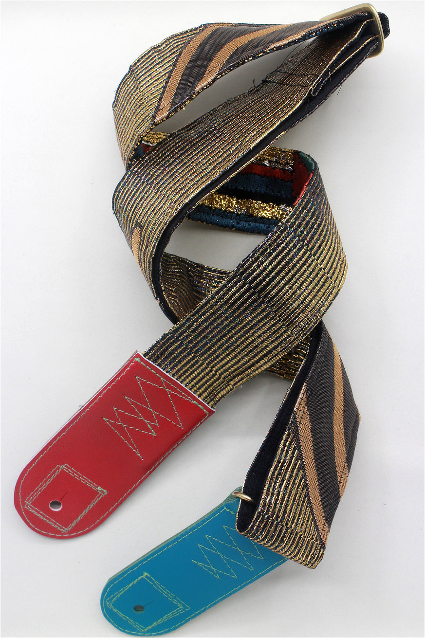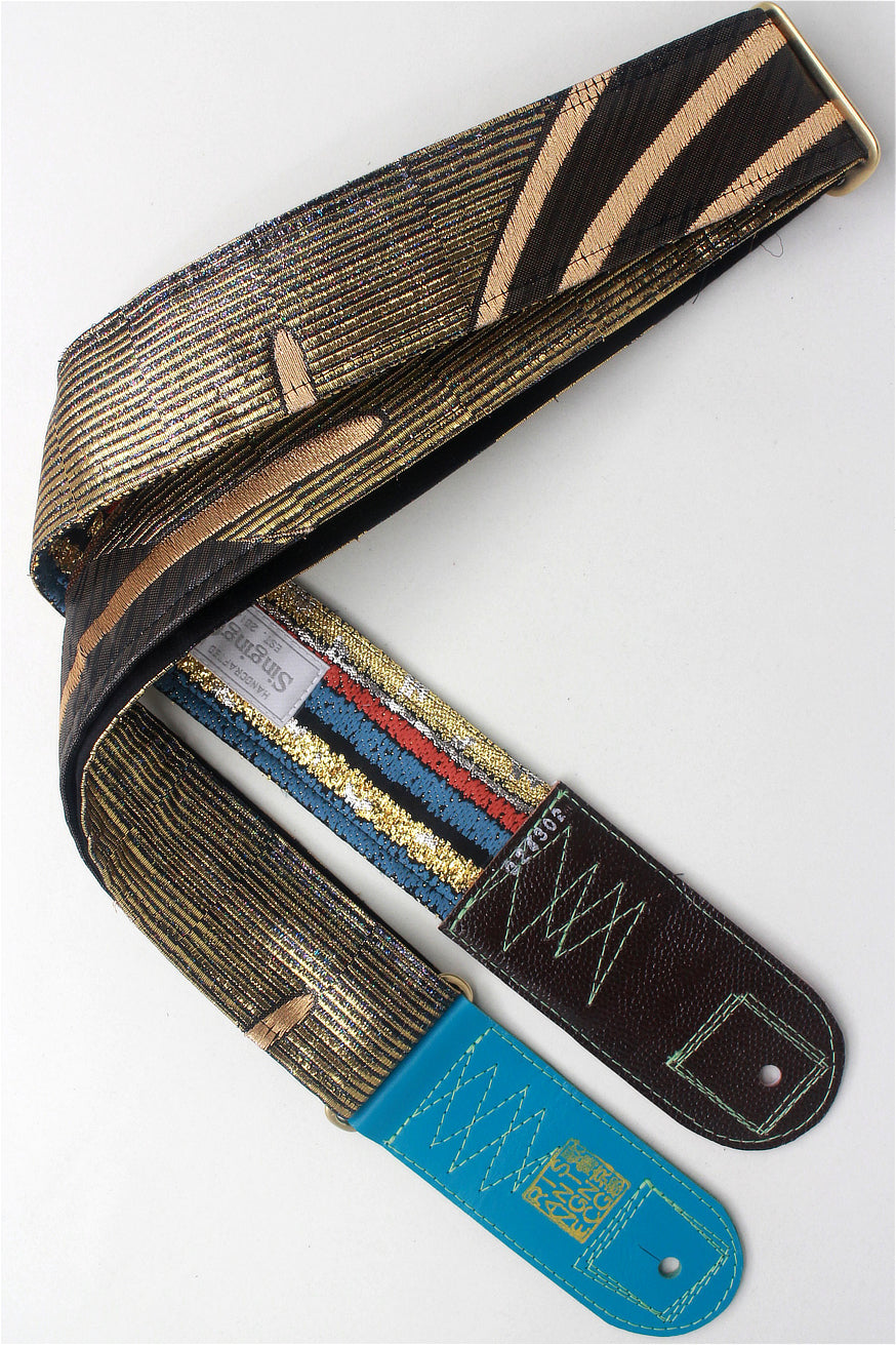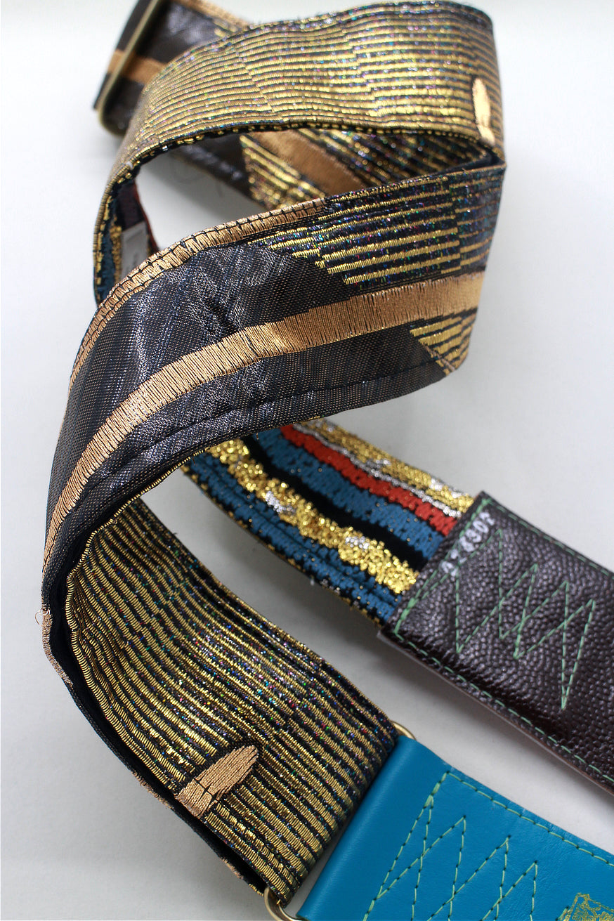 Unique and beautiful guitar strap [SC324302] - hand made in Japan from recycled silk woven kimono obi, leather and brass
