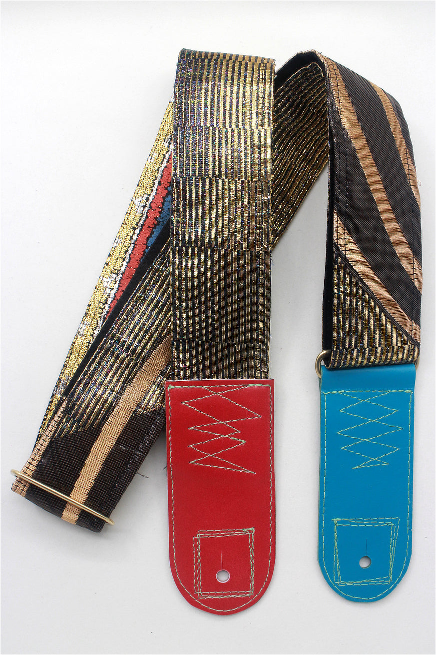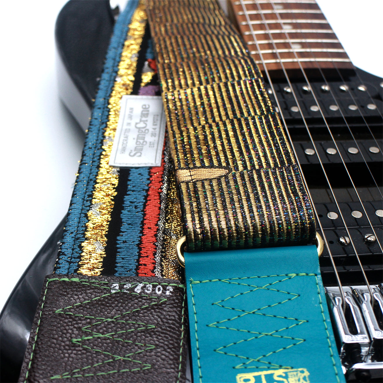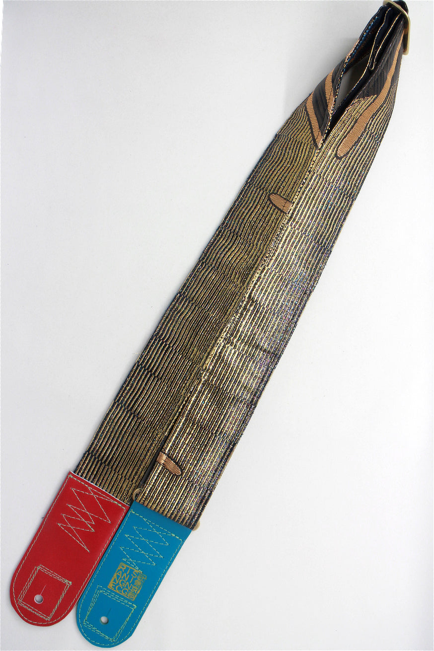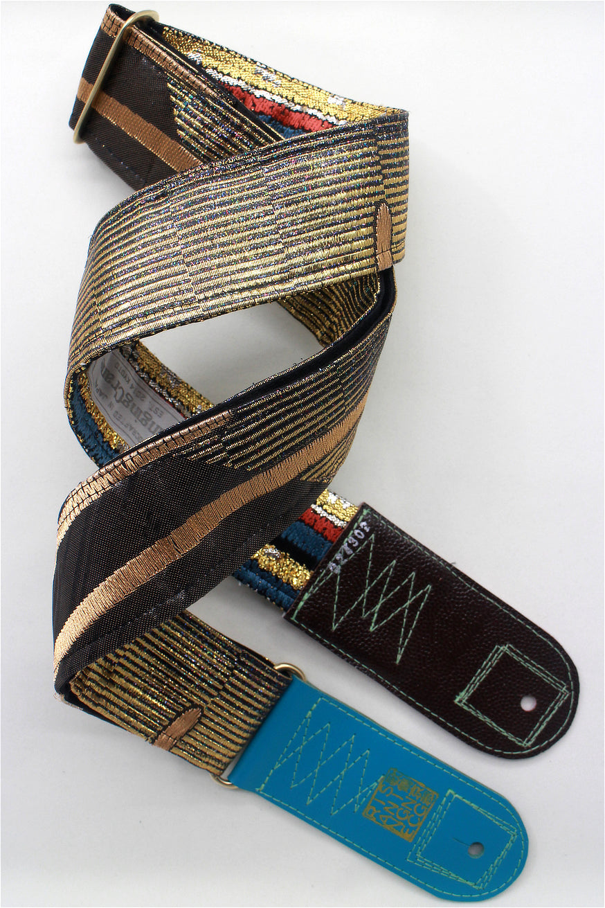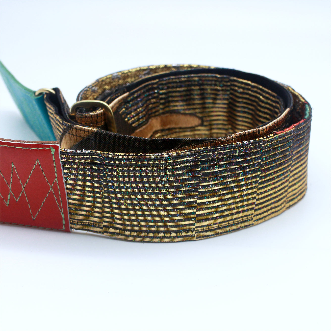 Unique and beautiful guitar strap [SC324302] - hand made in Japan from recycled silk woven kimono obi, leather and brass
