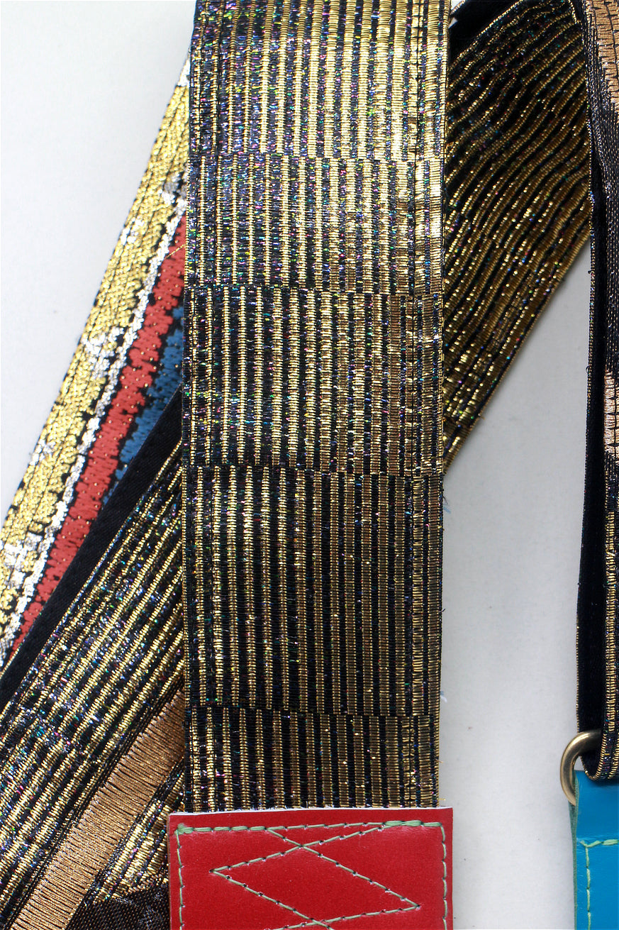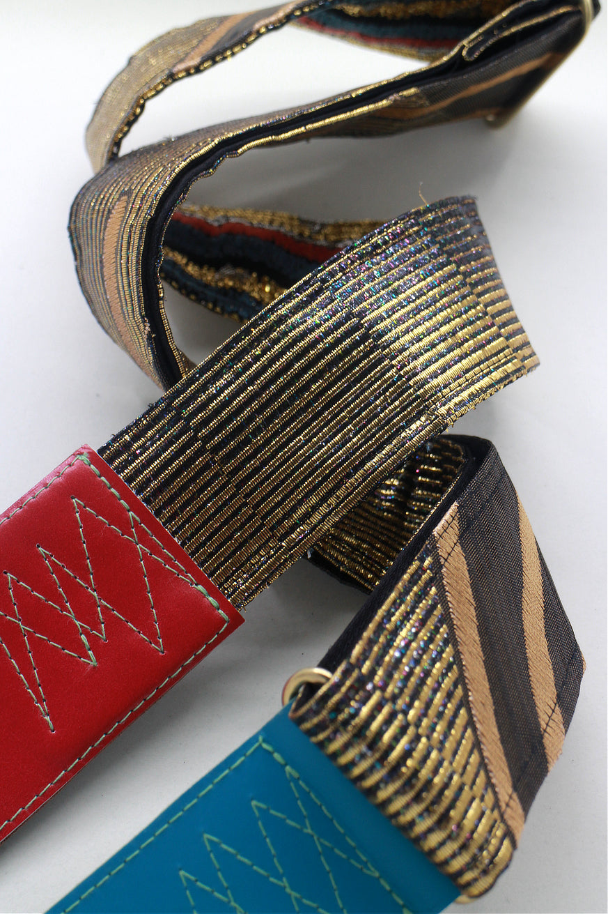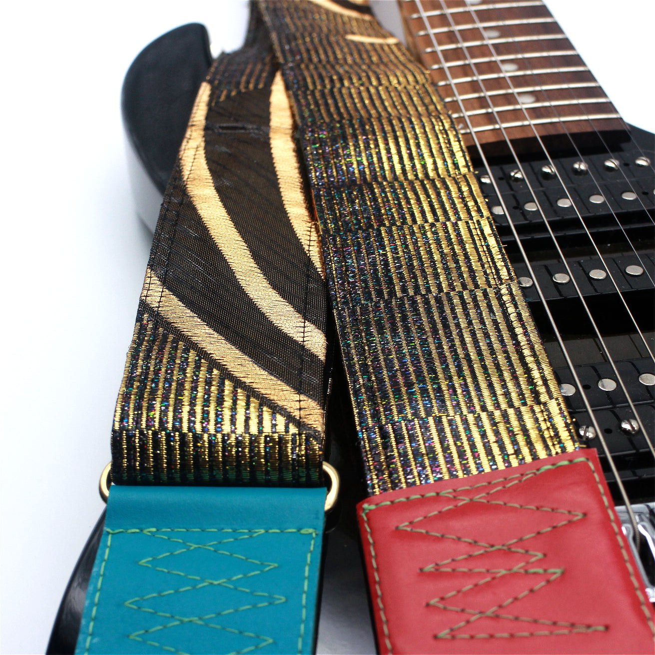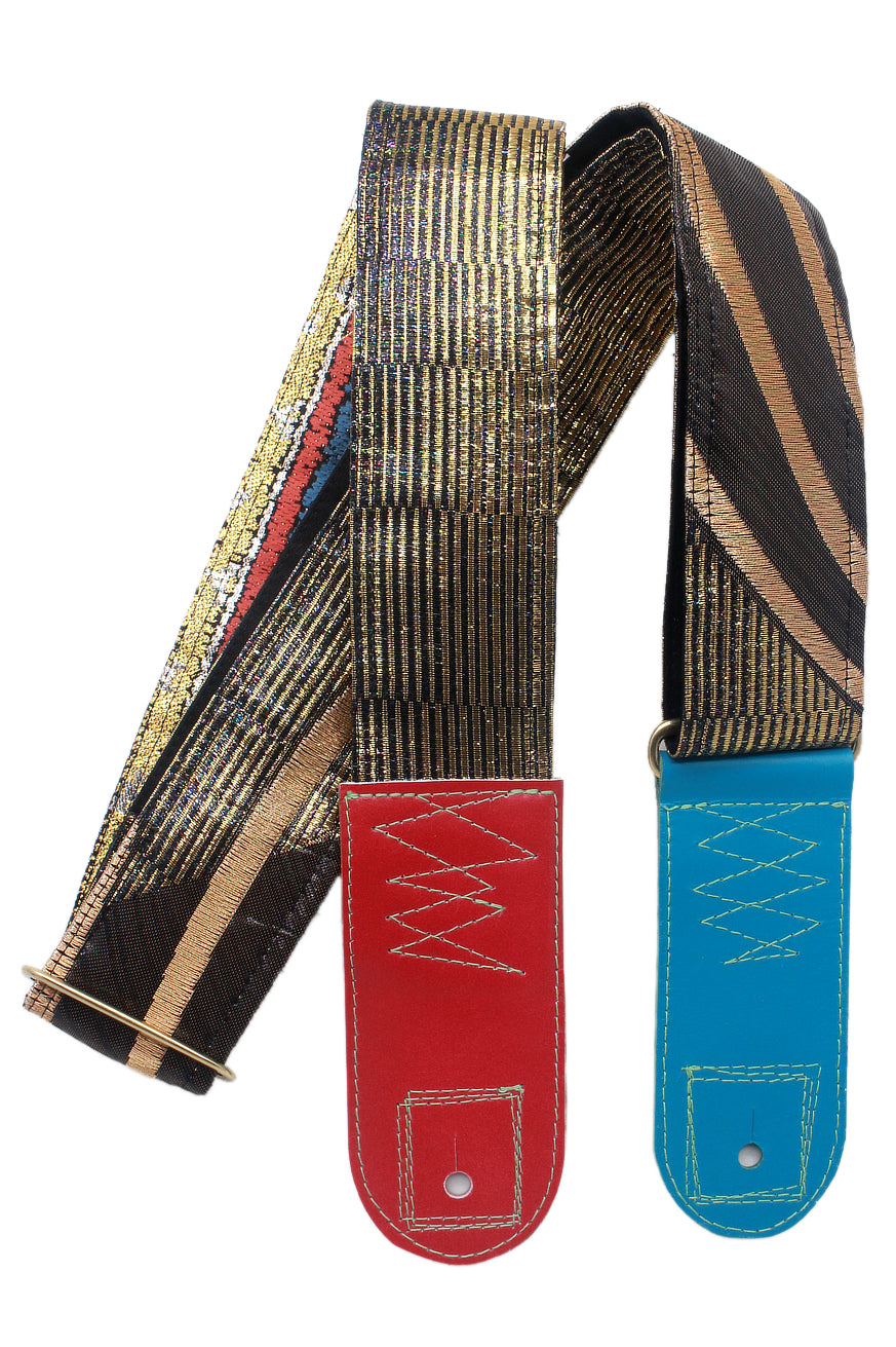 Unique and beautiful guitar strap [SC324302] - hand made in Japan from recycled silk woven kimono obi, leather and brass