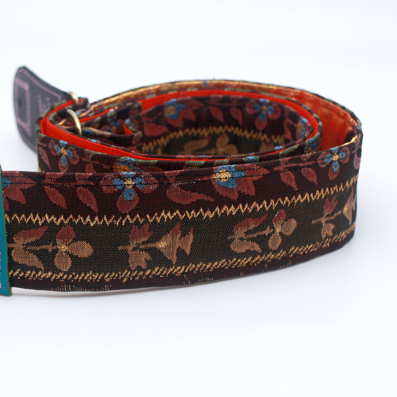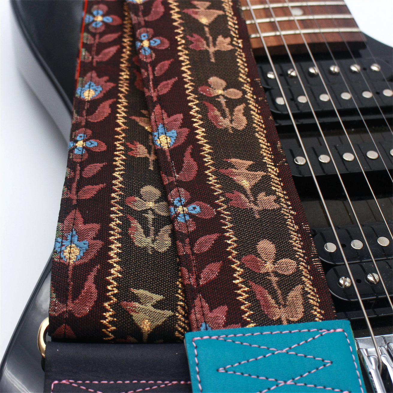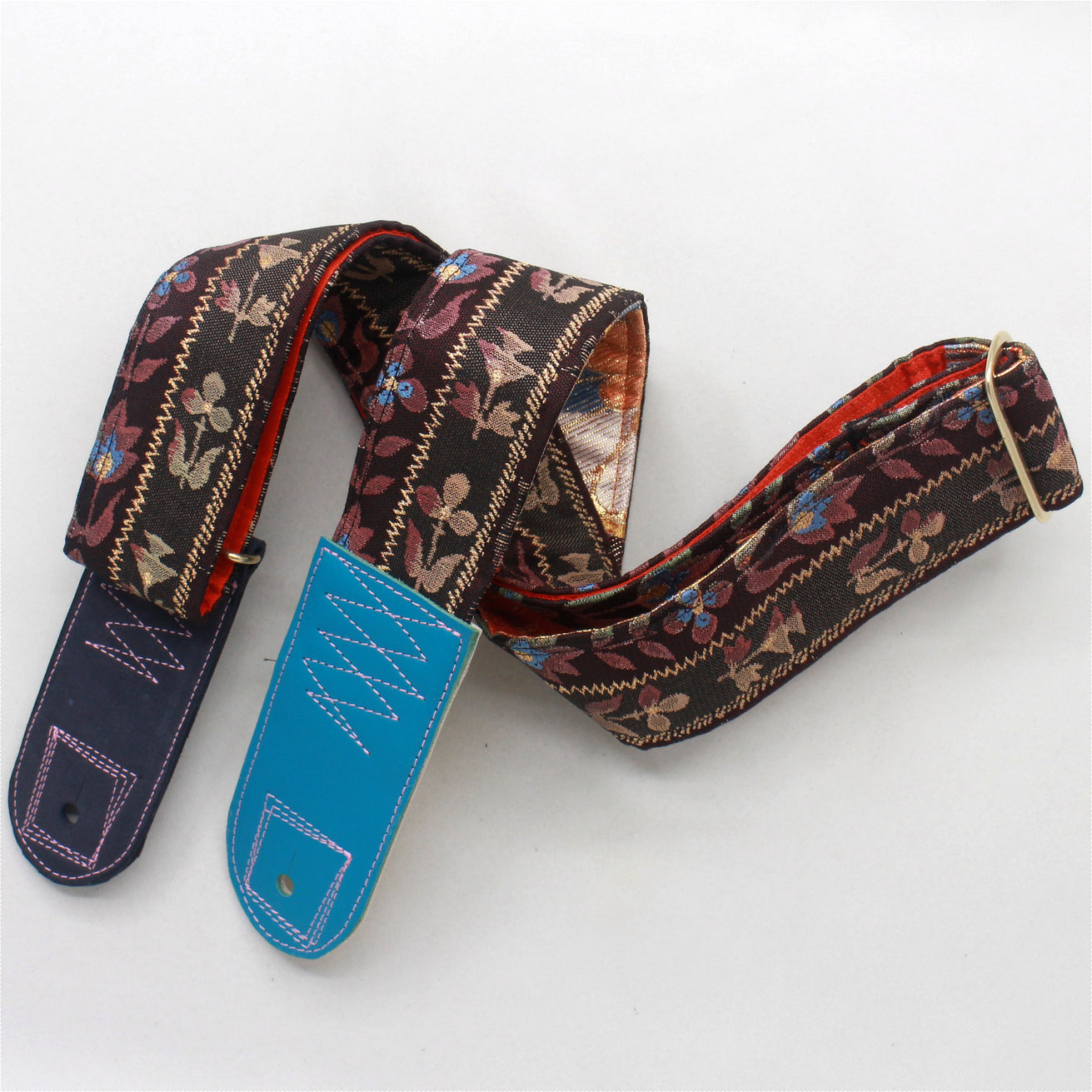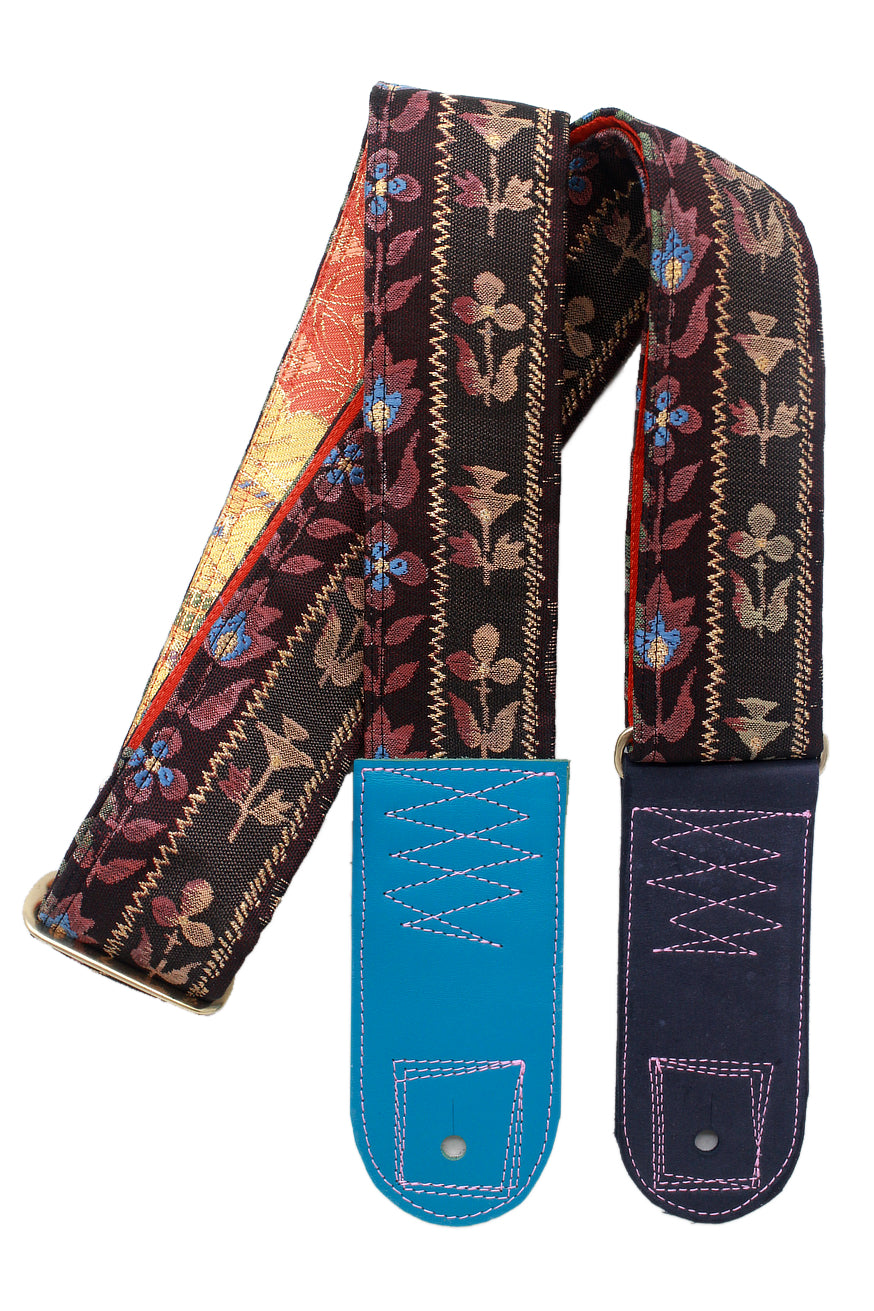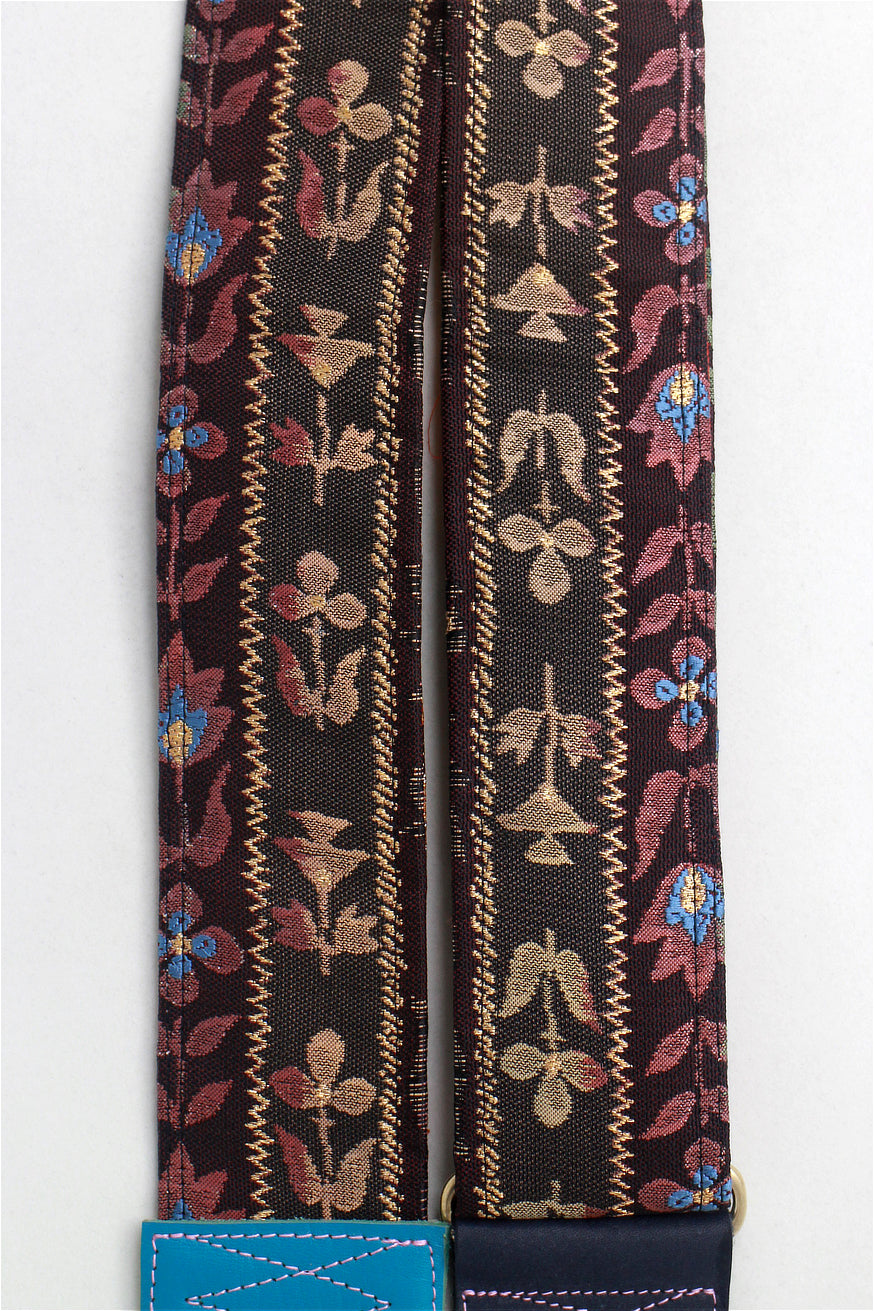 Unique and beautiful guitar strap [SC325012] - hand made in Japan from recycled silk woven kimono obi, leather and brass