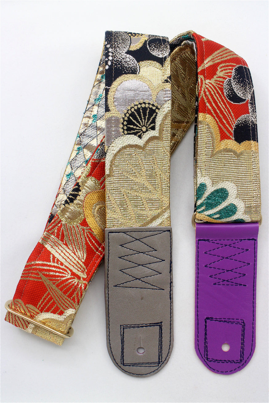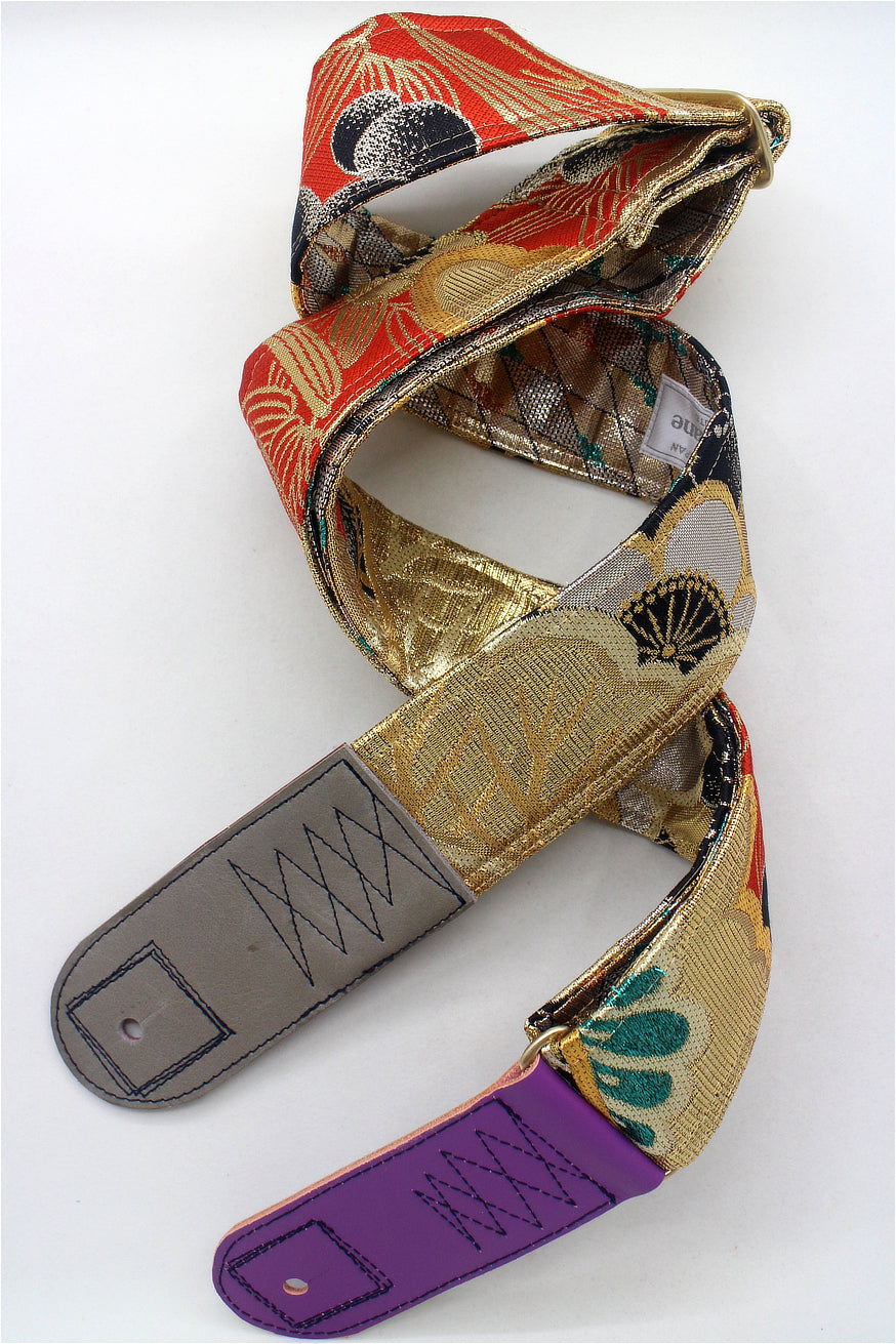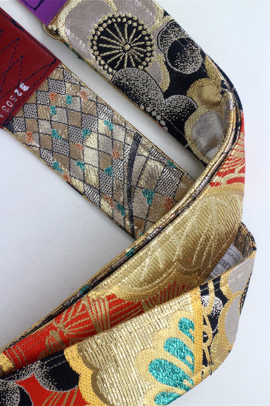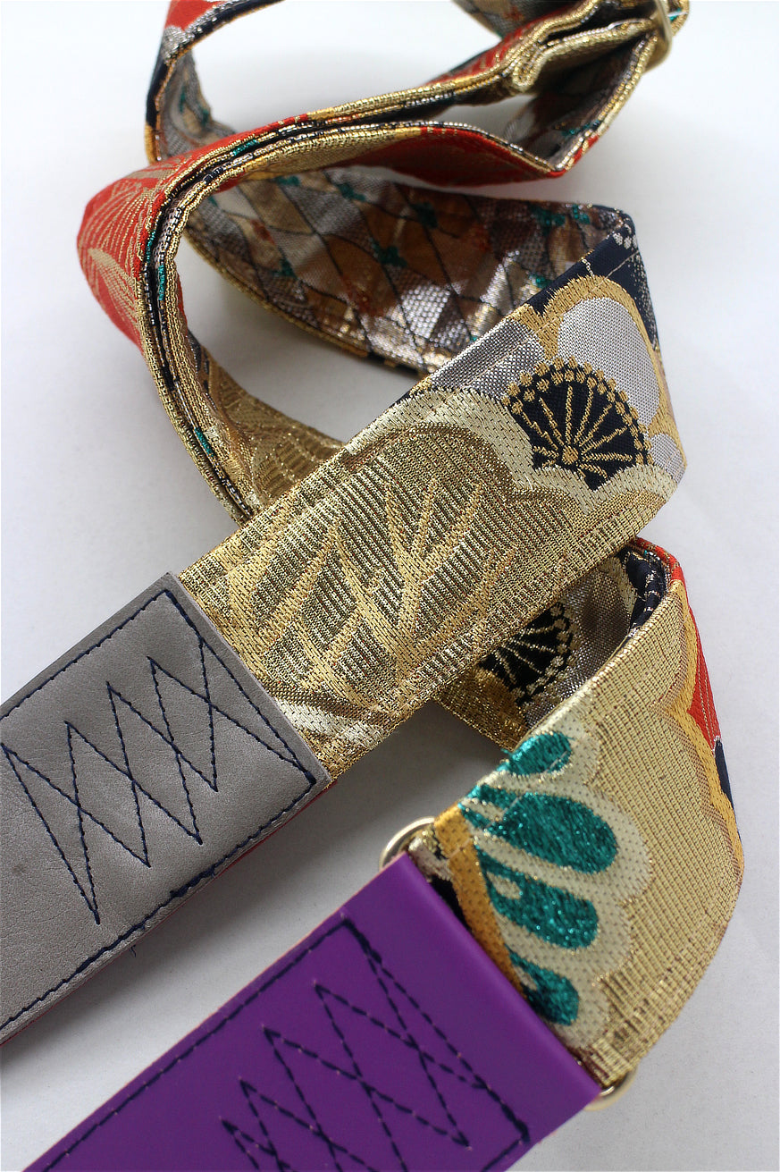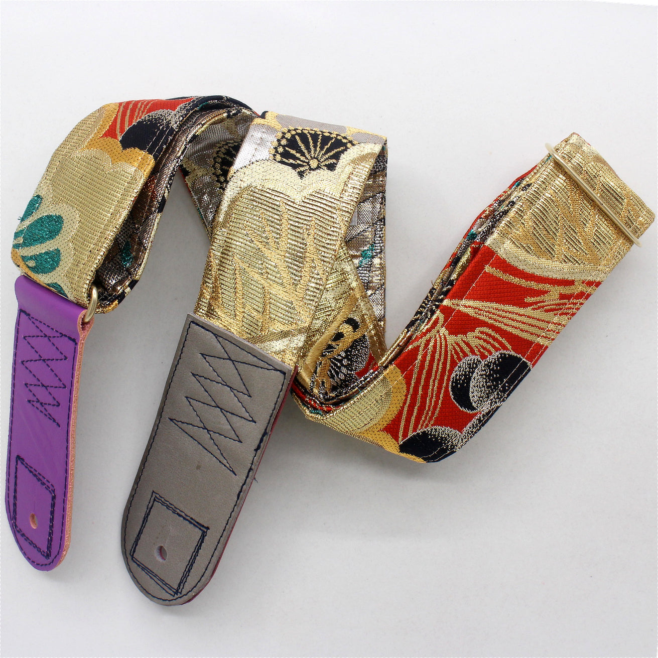 Unique and beautiful guitar strap [SC325031] - hand made in Japan from recycled silk woven kimono obi, leather and brass