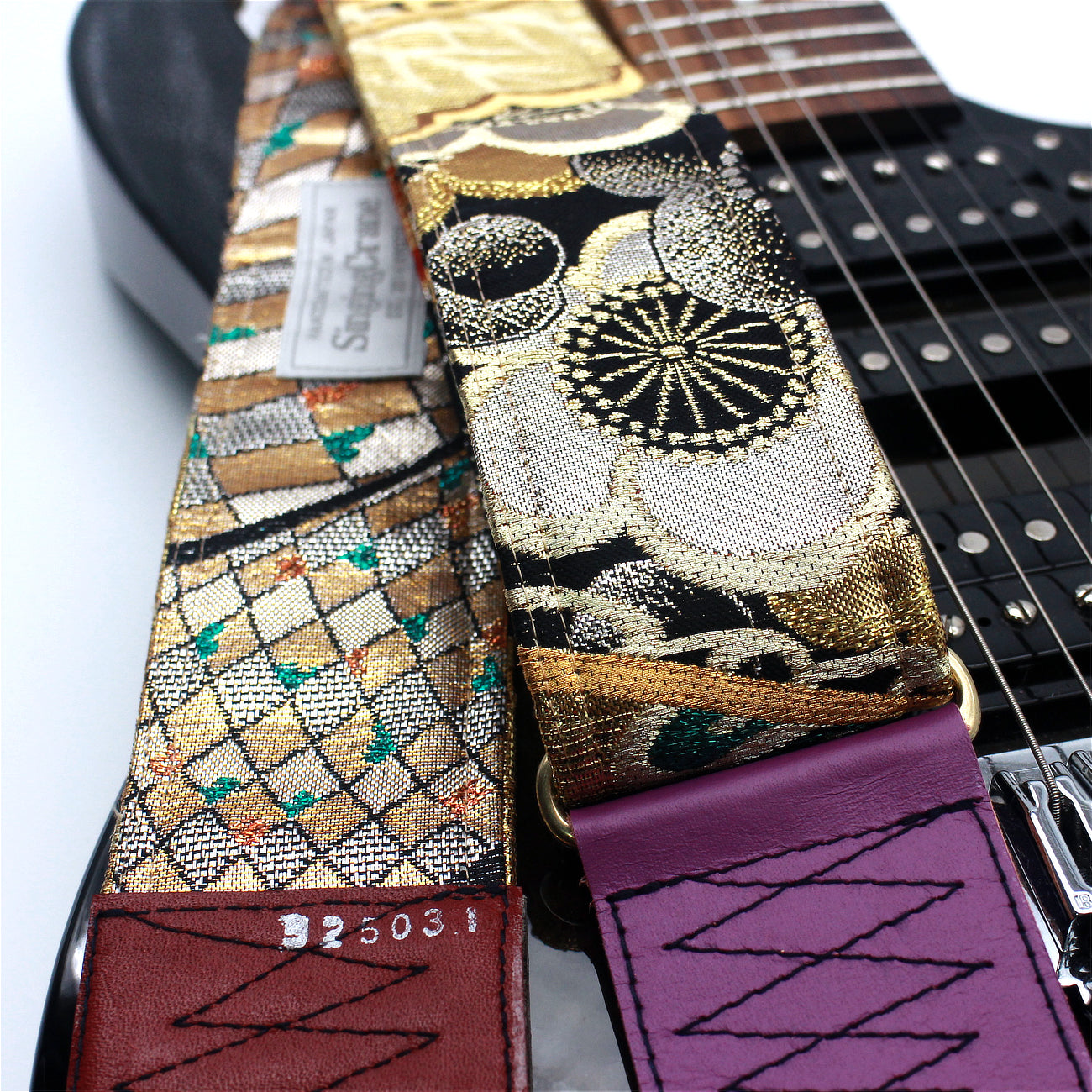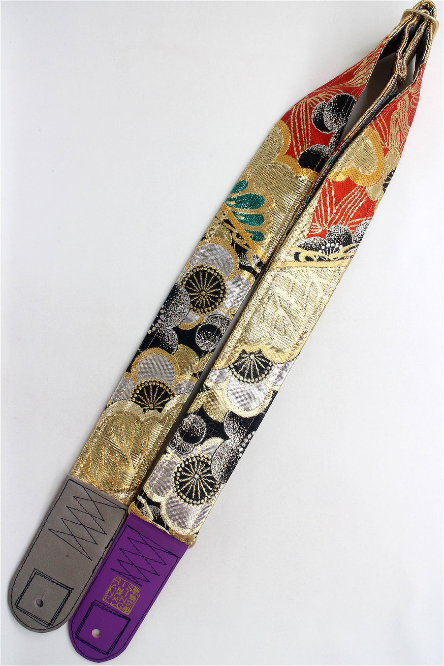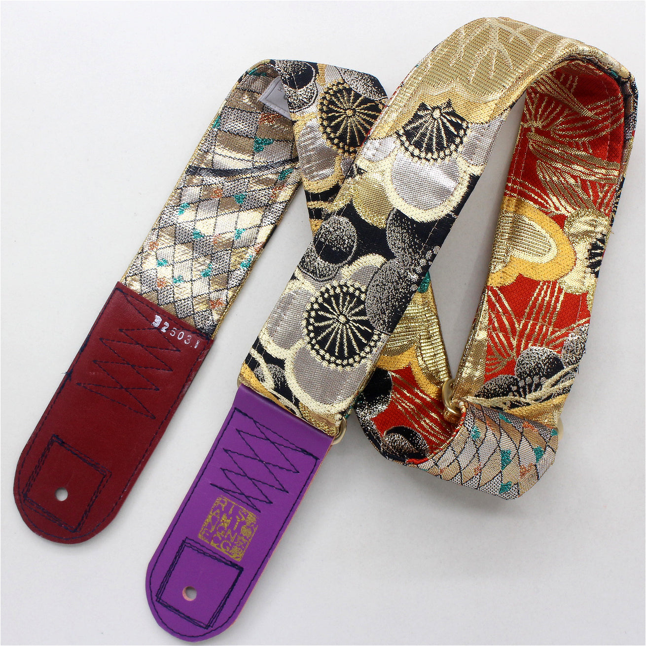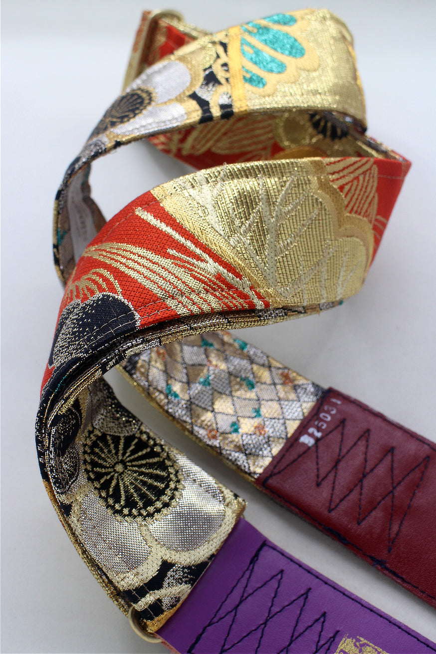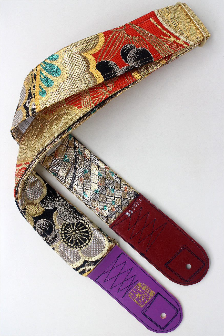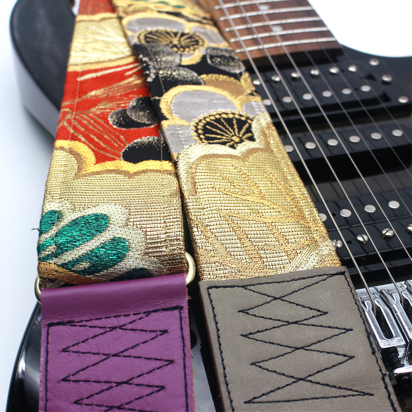 Unique and beautiful guitar strap [SC325031] - hand made in Japan from recycled silk woven kimono obi, leather and brass