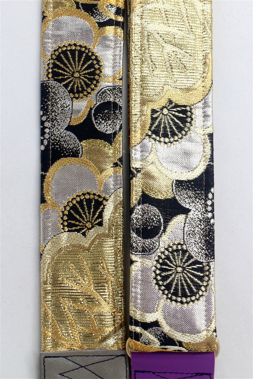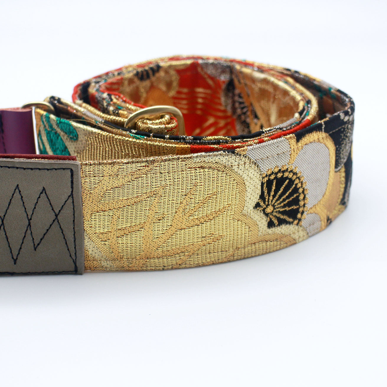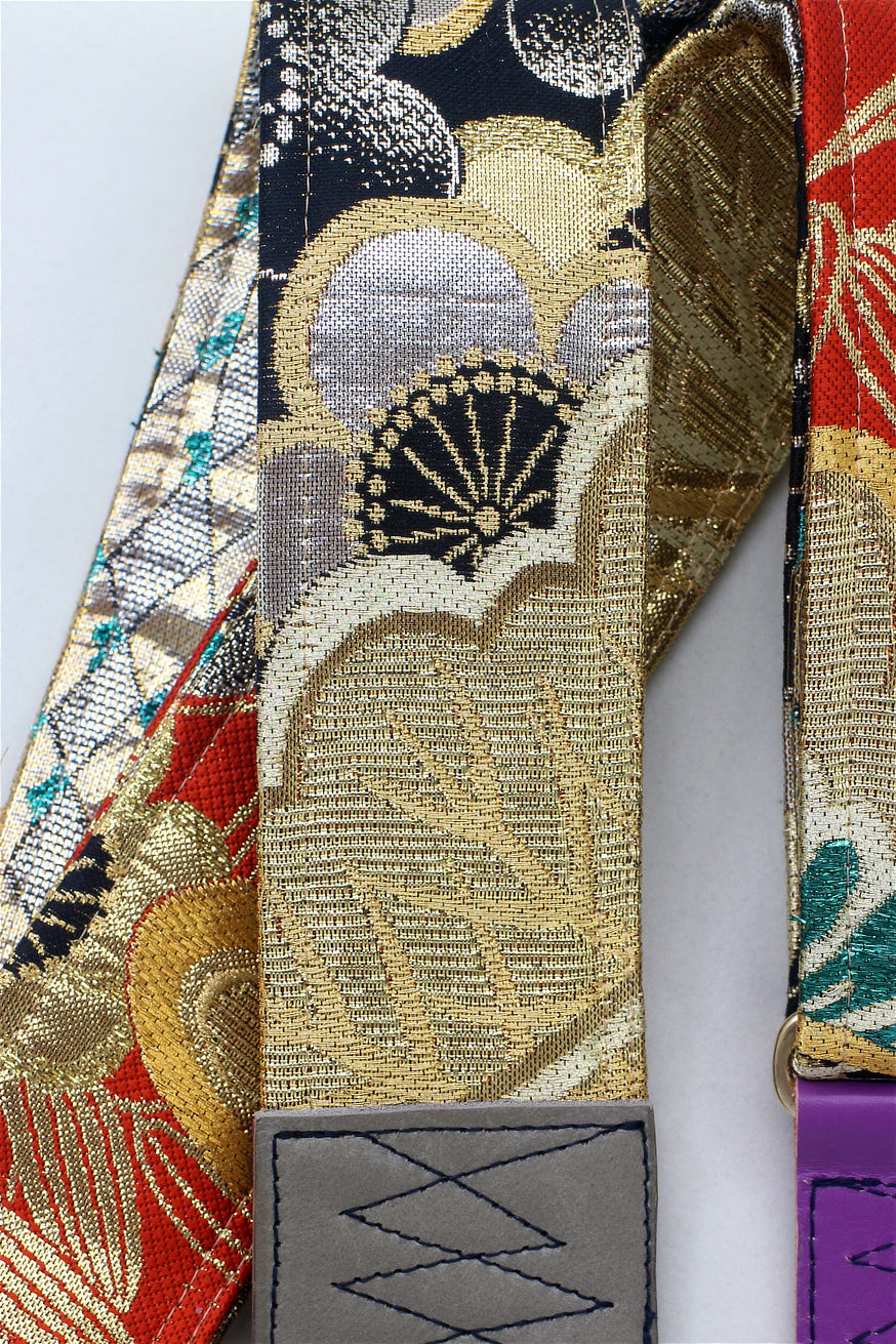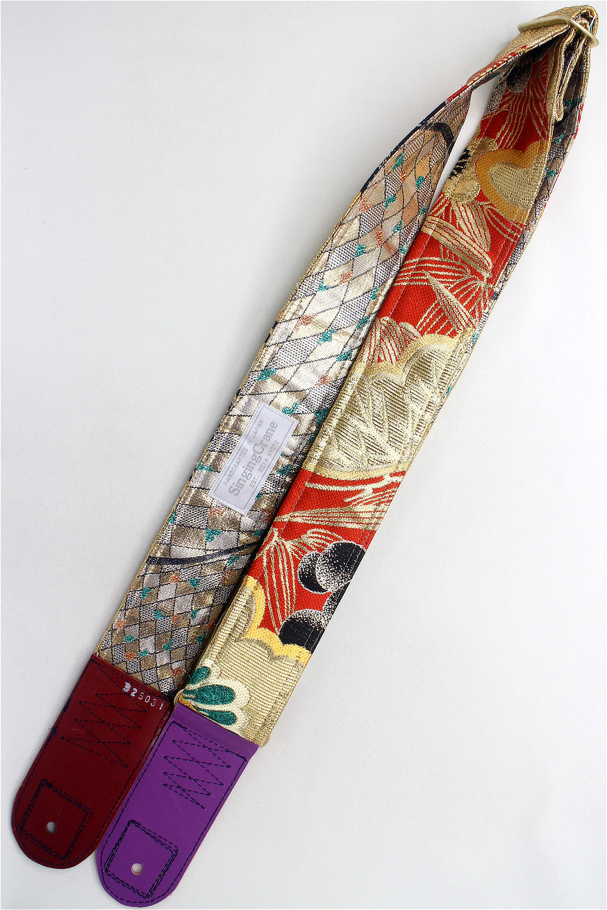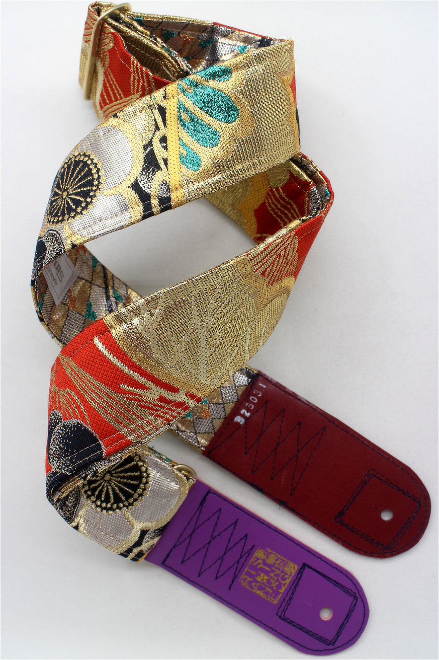 Unique and beautiful guitar strap [SC325031] - hand made in Japan from recycled silk woven kimono obi, leather and brass