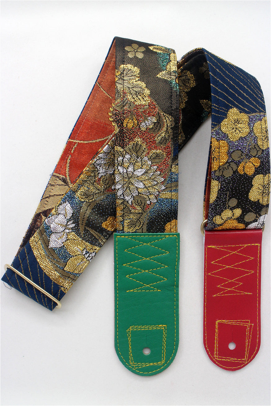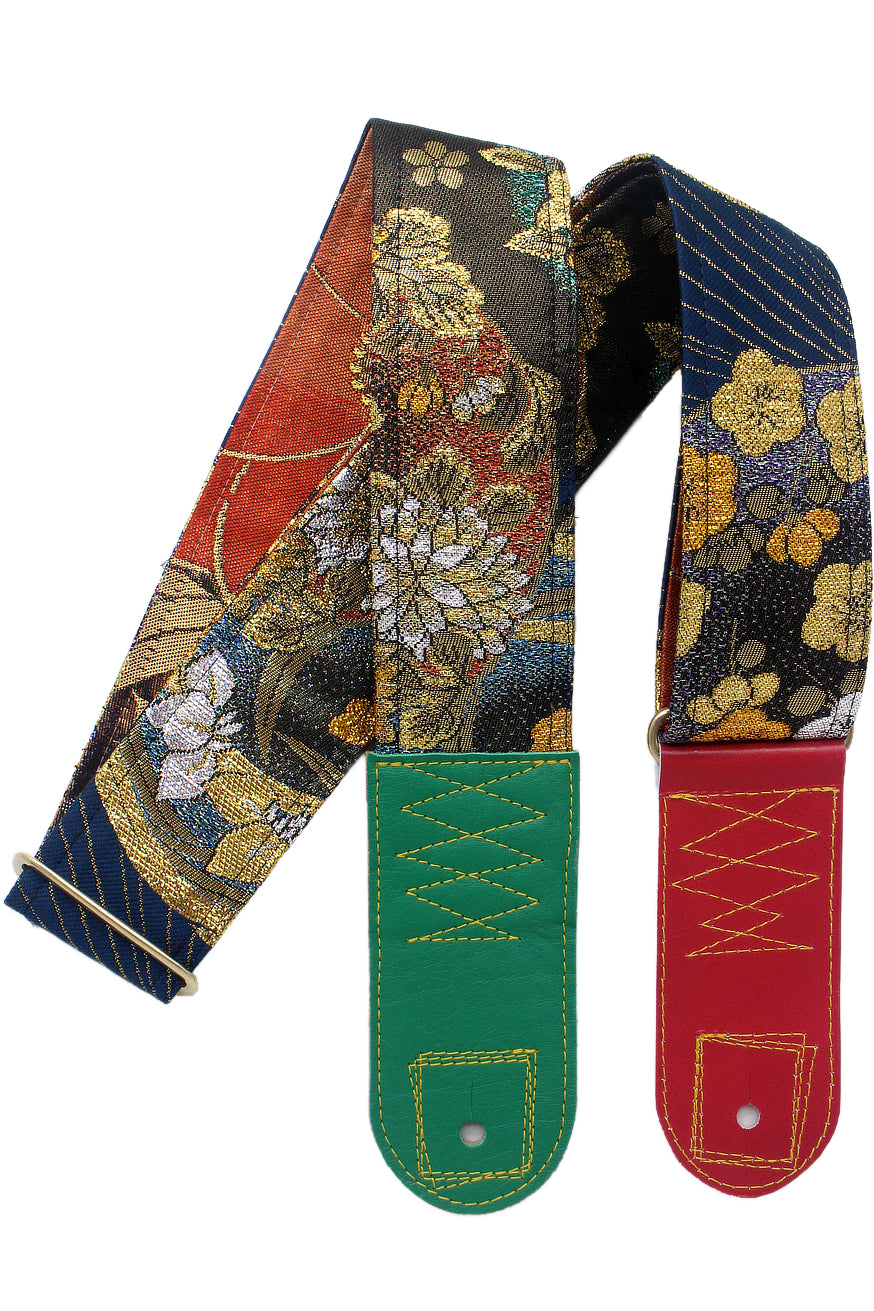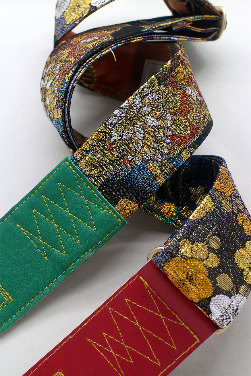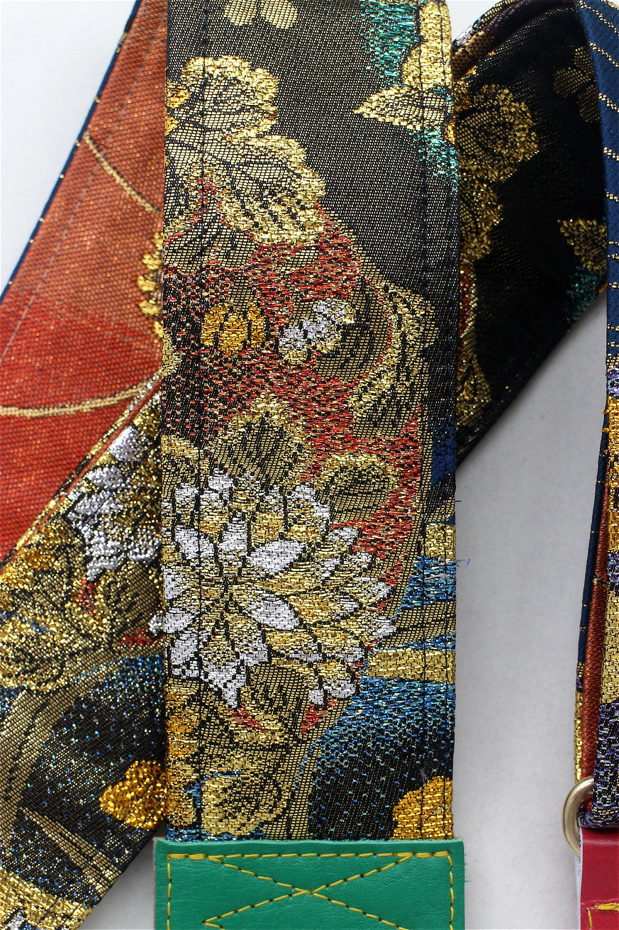 Unique and beautiful guitar strap [SC325041] - hand made in Japan from recycled silk woven kimono obi, leather and brass