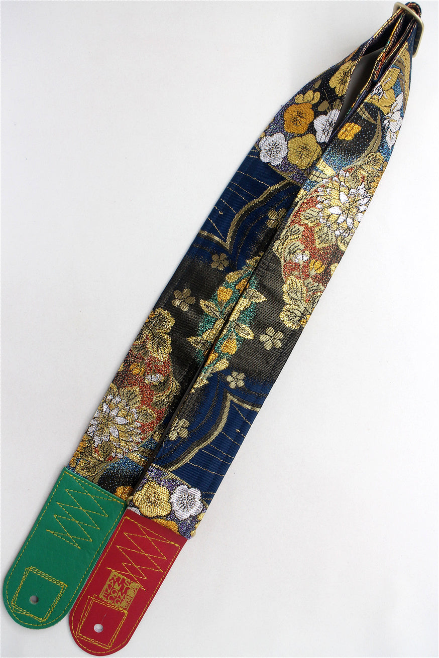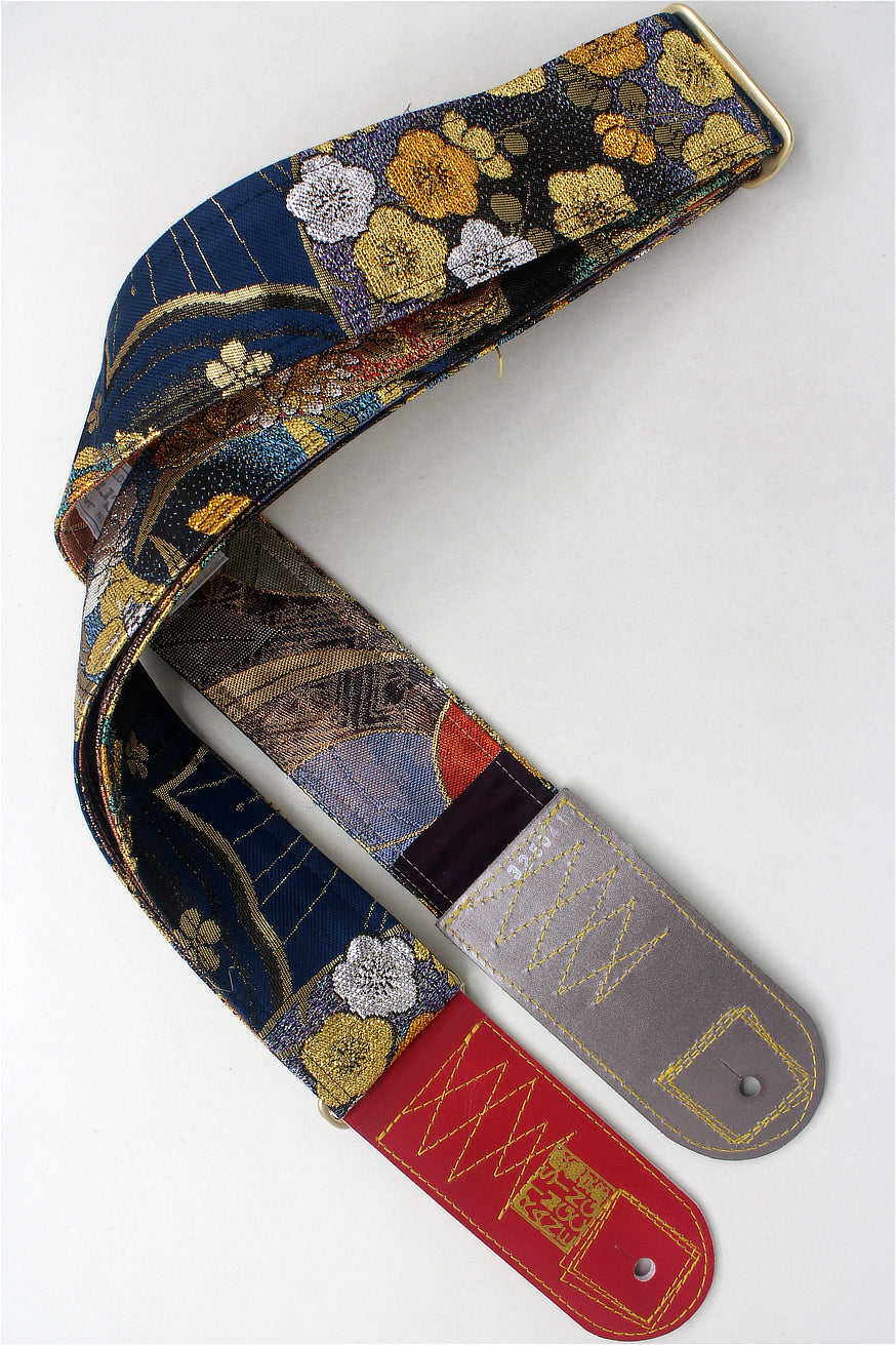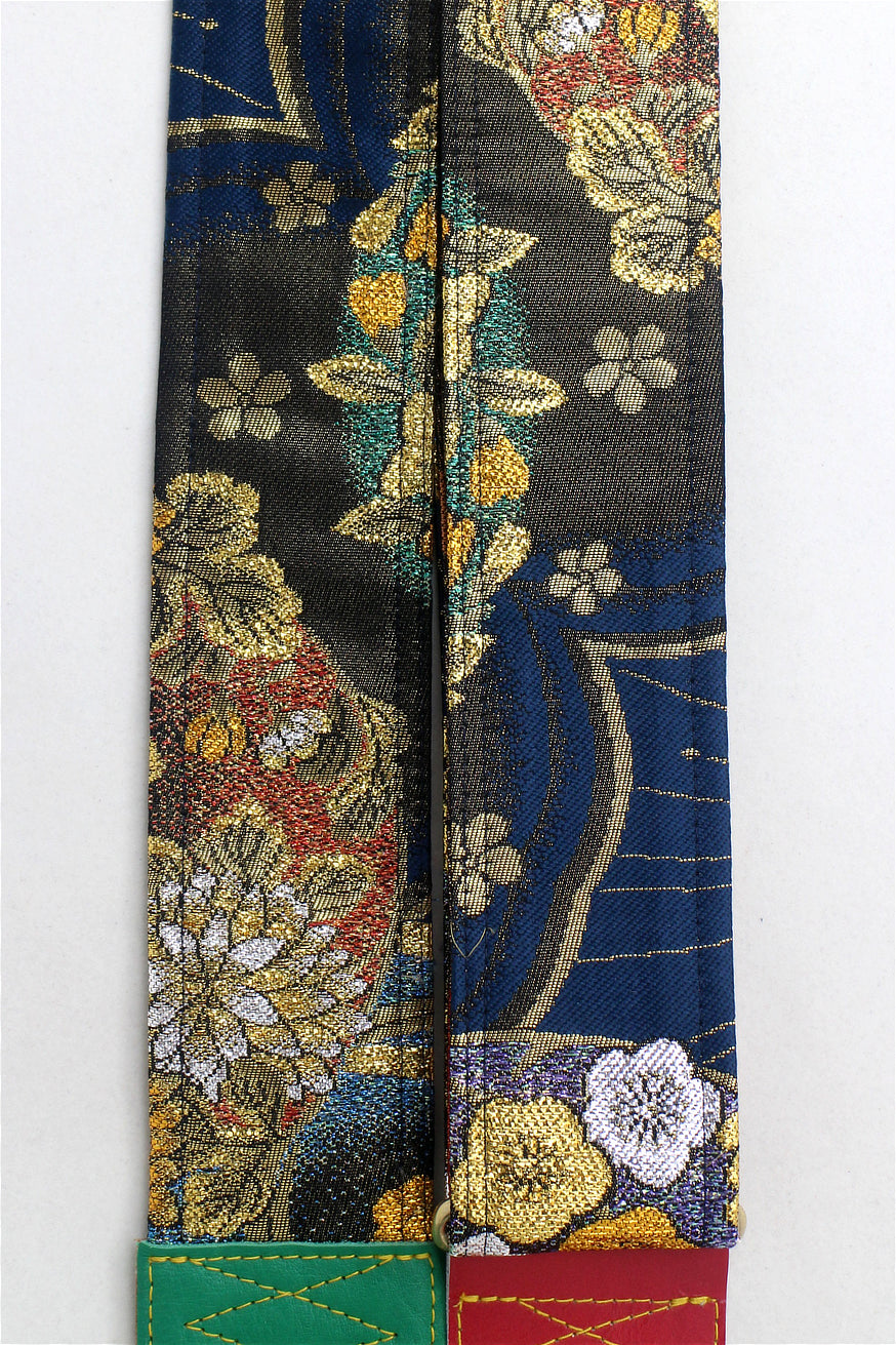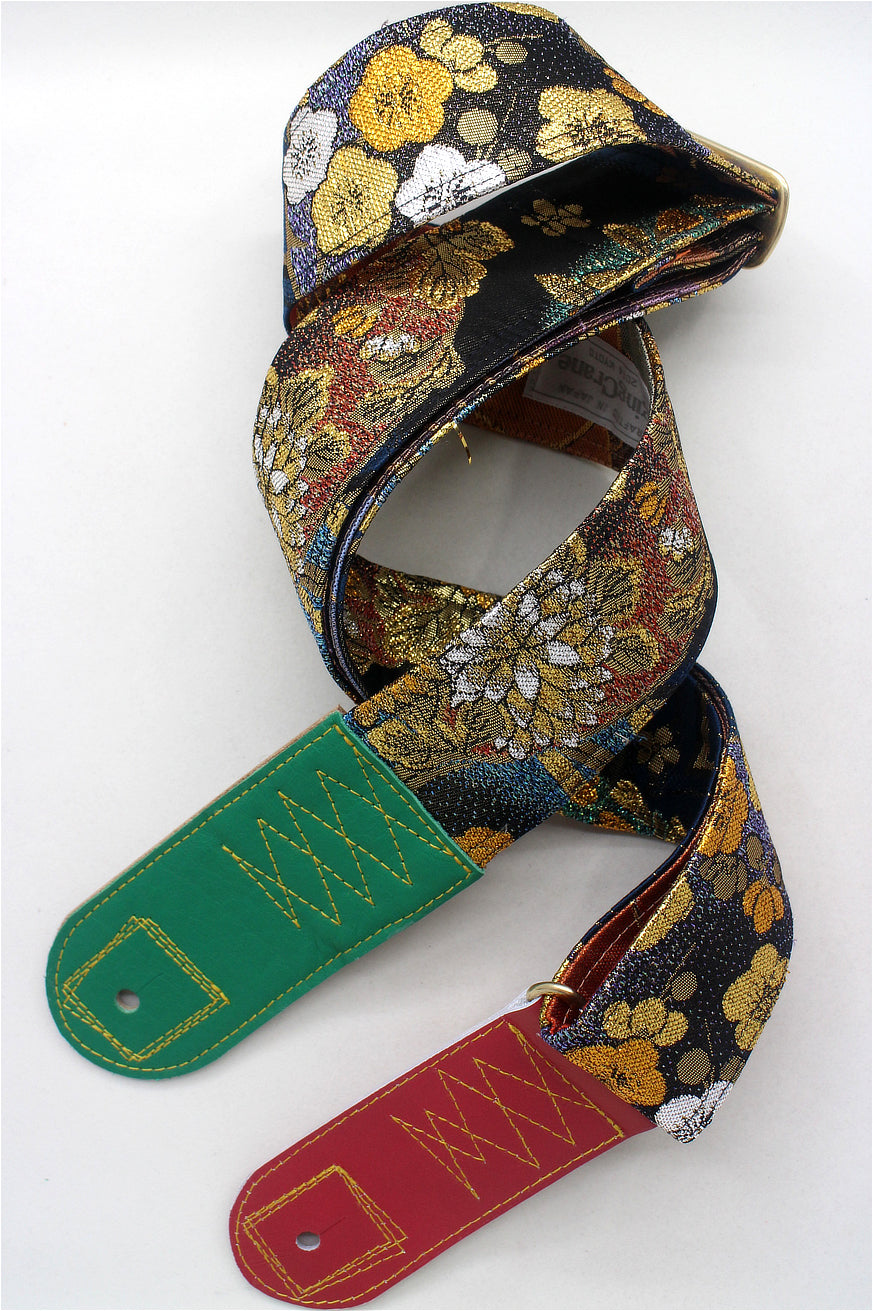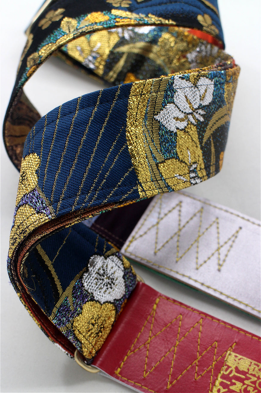 Unique and beautiful guitar strap [SC325041] - hand made in Japan from recycled silk woven kimono obi, leather and brass