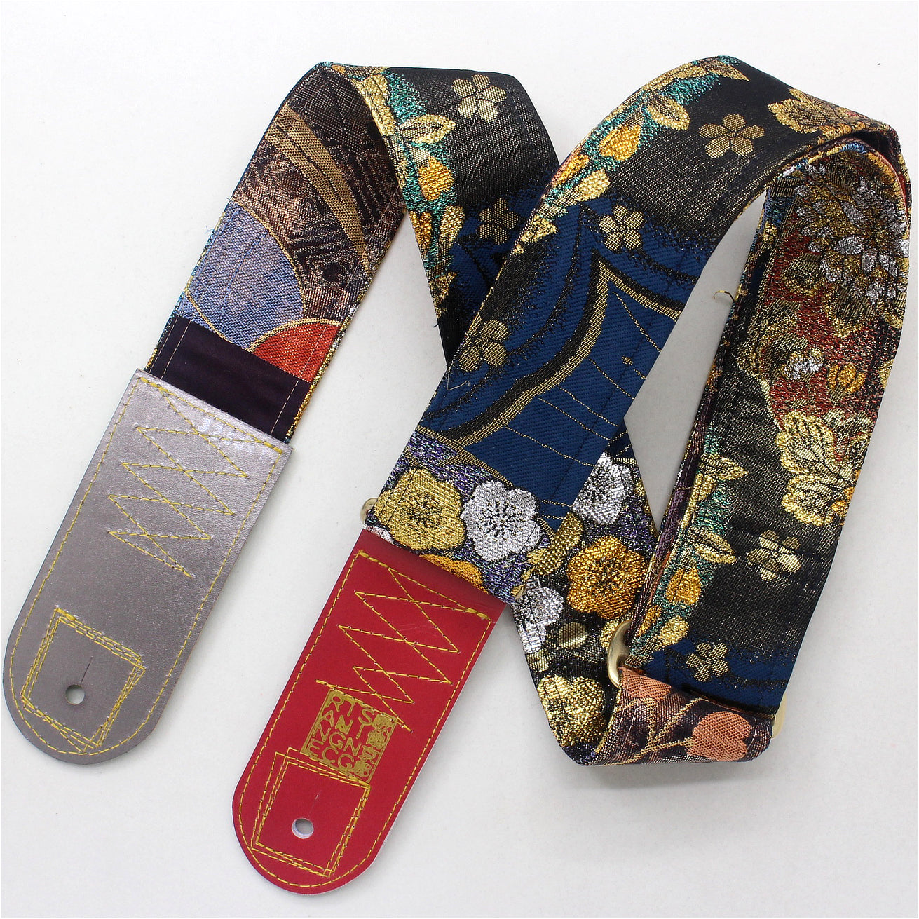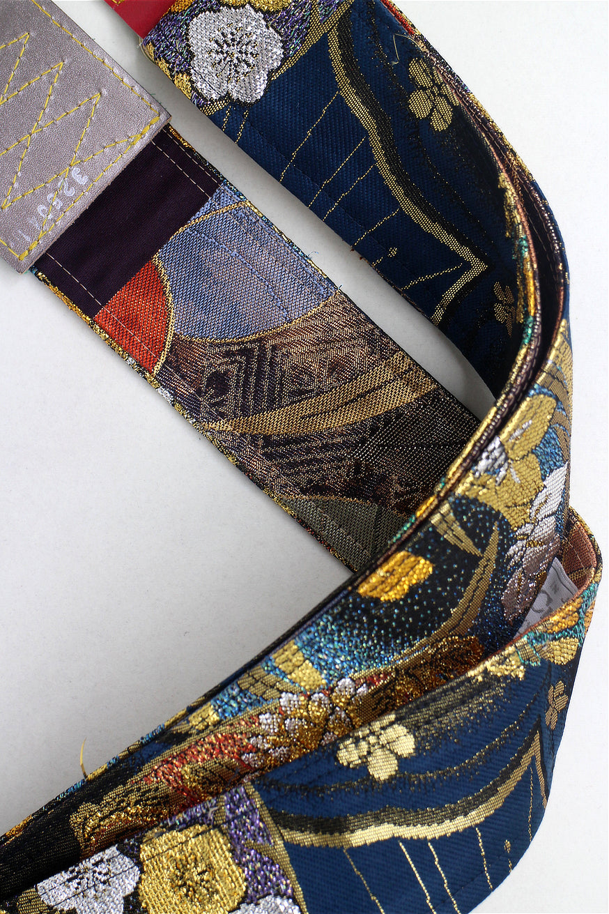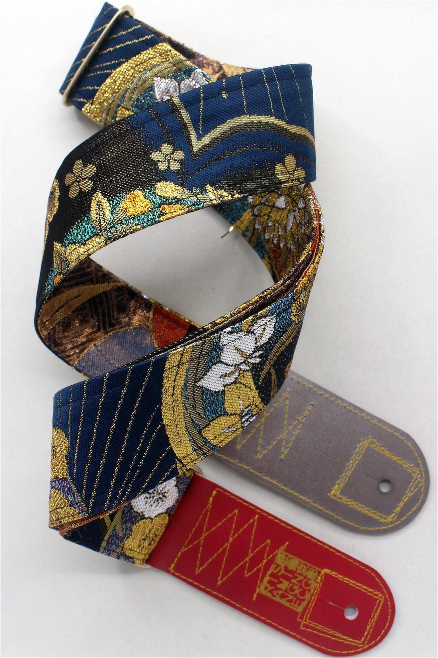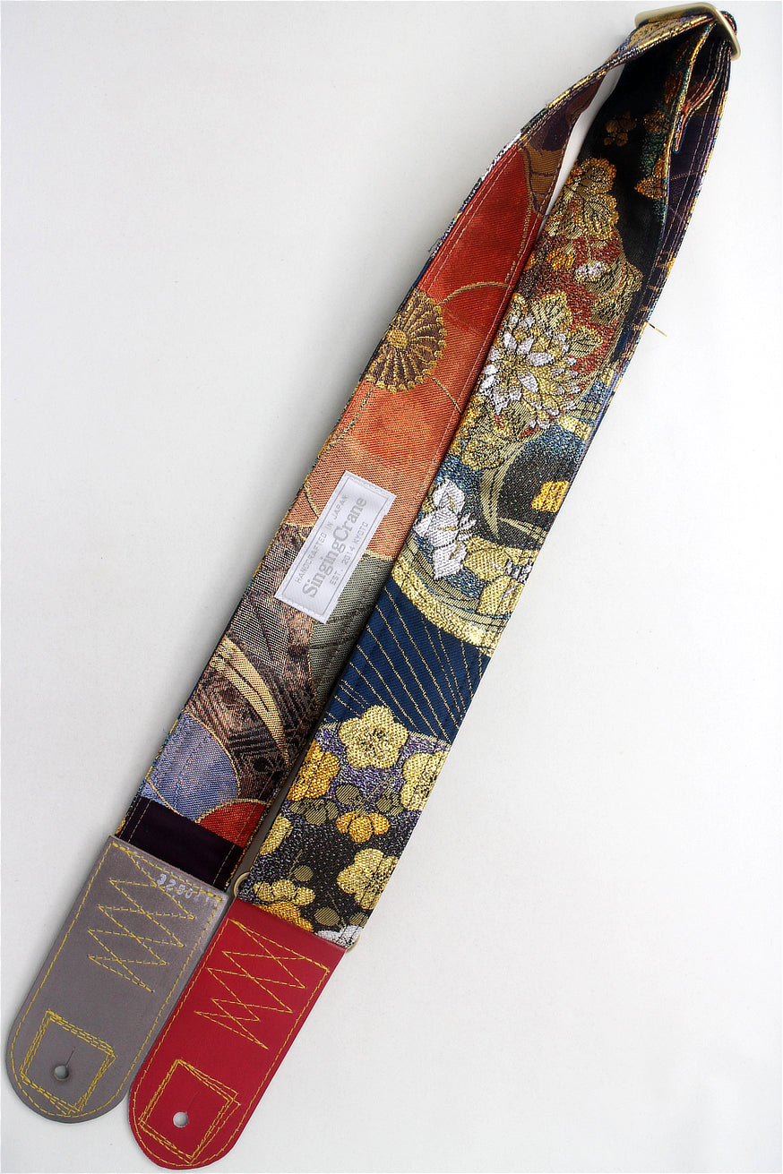 Unique and beautiful guitar strap [SC325041] - hand made in Japan from recycled silk woven kimono obi, leather and brass