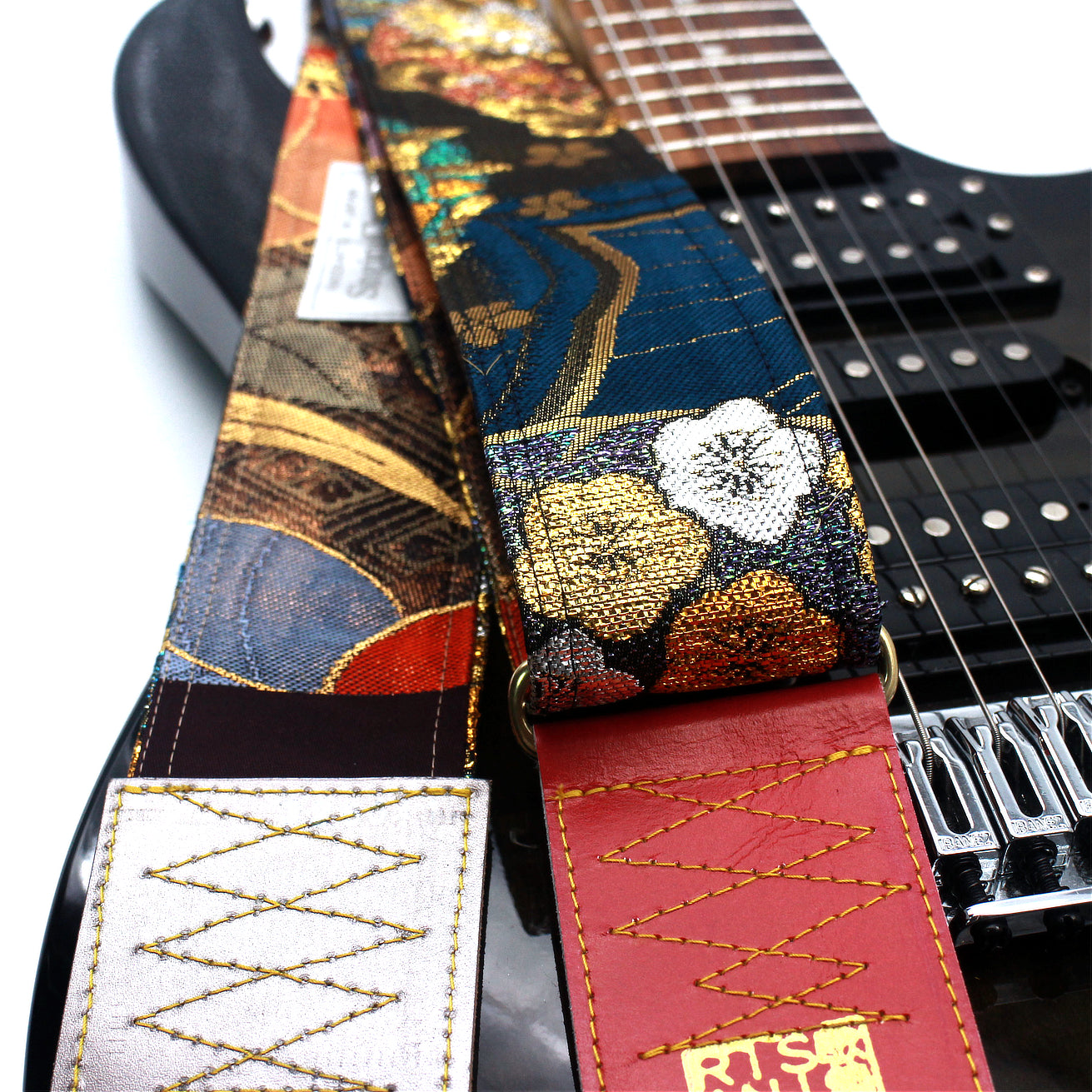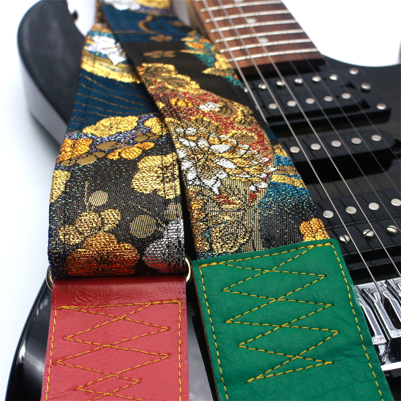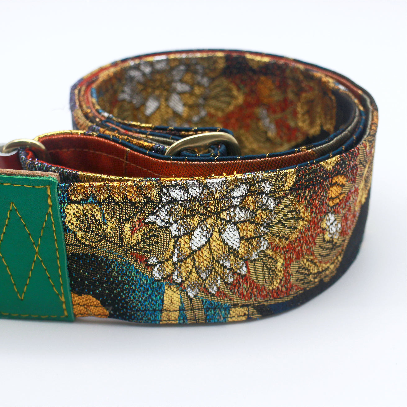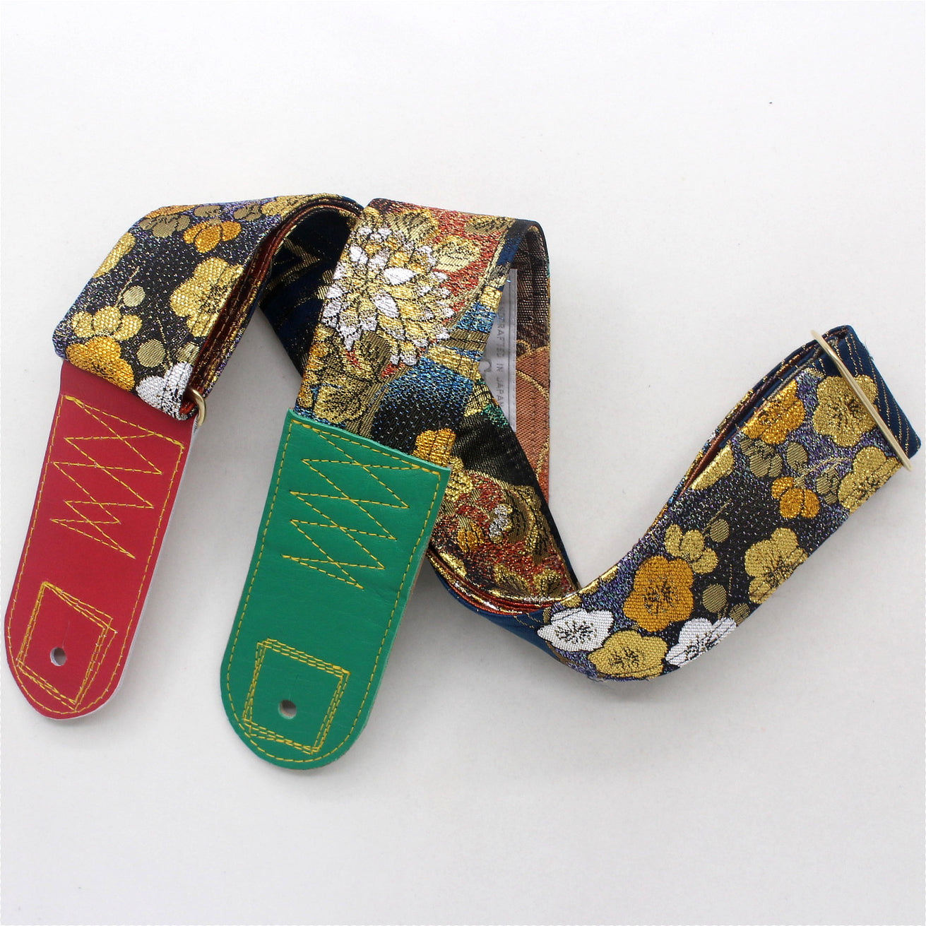 Unique and beautiful guitar strap [SC325041] - hand made in Japan from recycled silk woven kimono obi, leather and brass