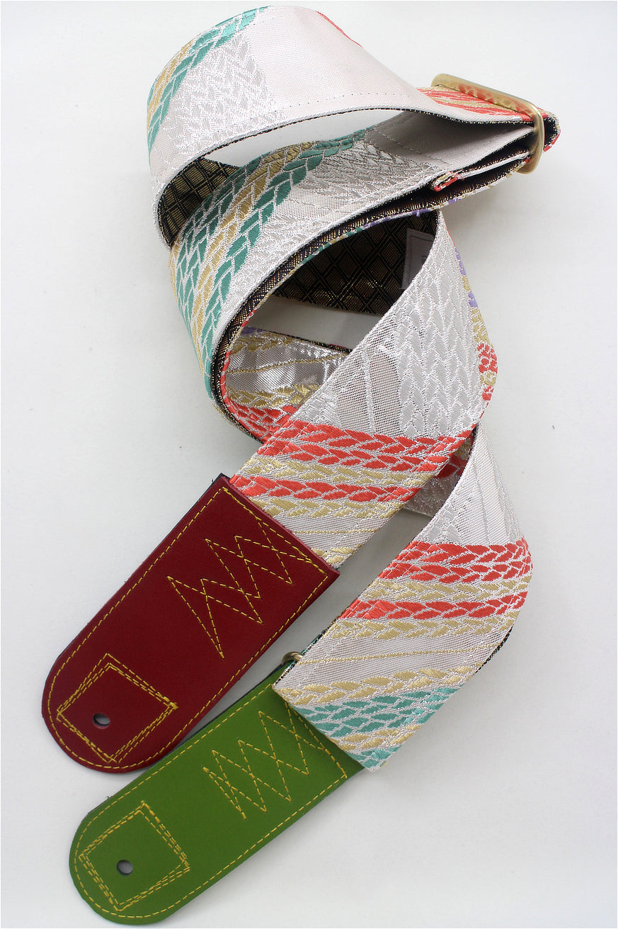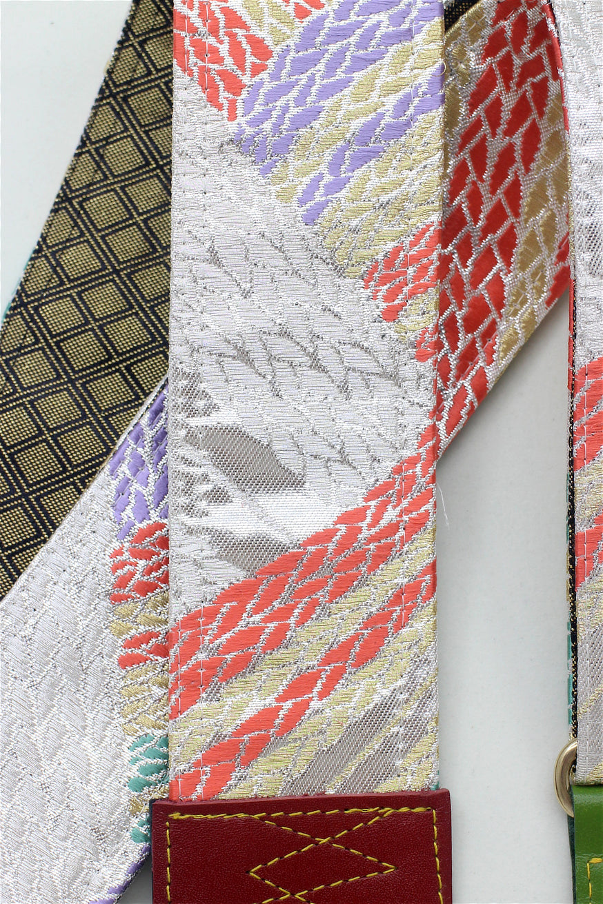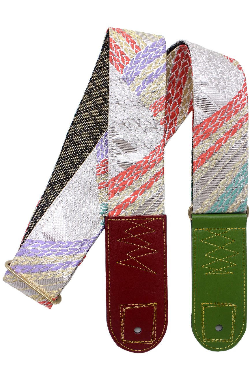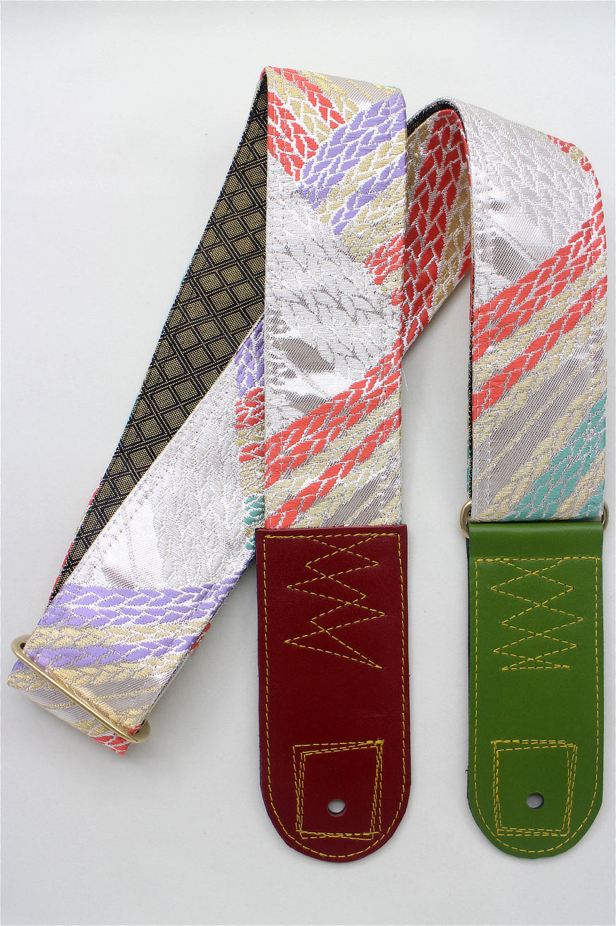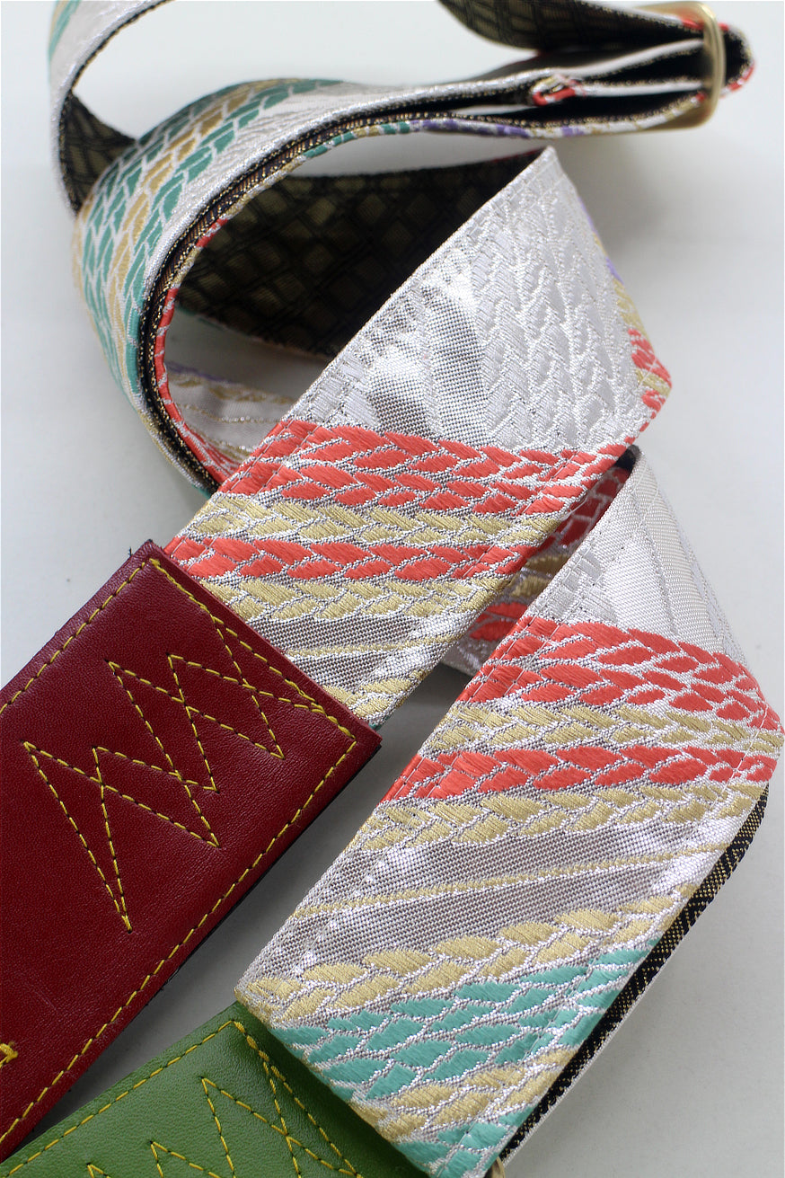 Unique and beautiful guitar strap [SC325052] - hand made in Japan from recycled silk woven kimono obi, leather and brass