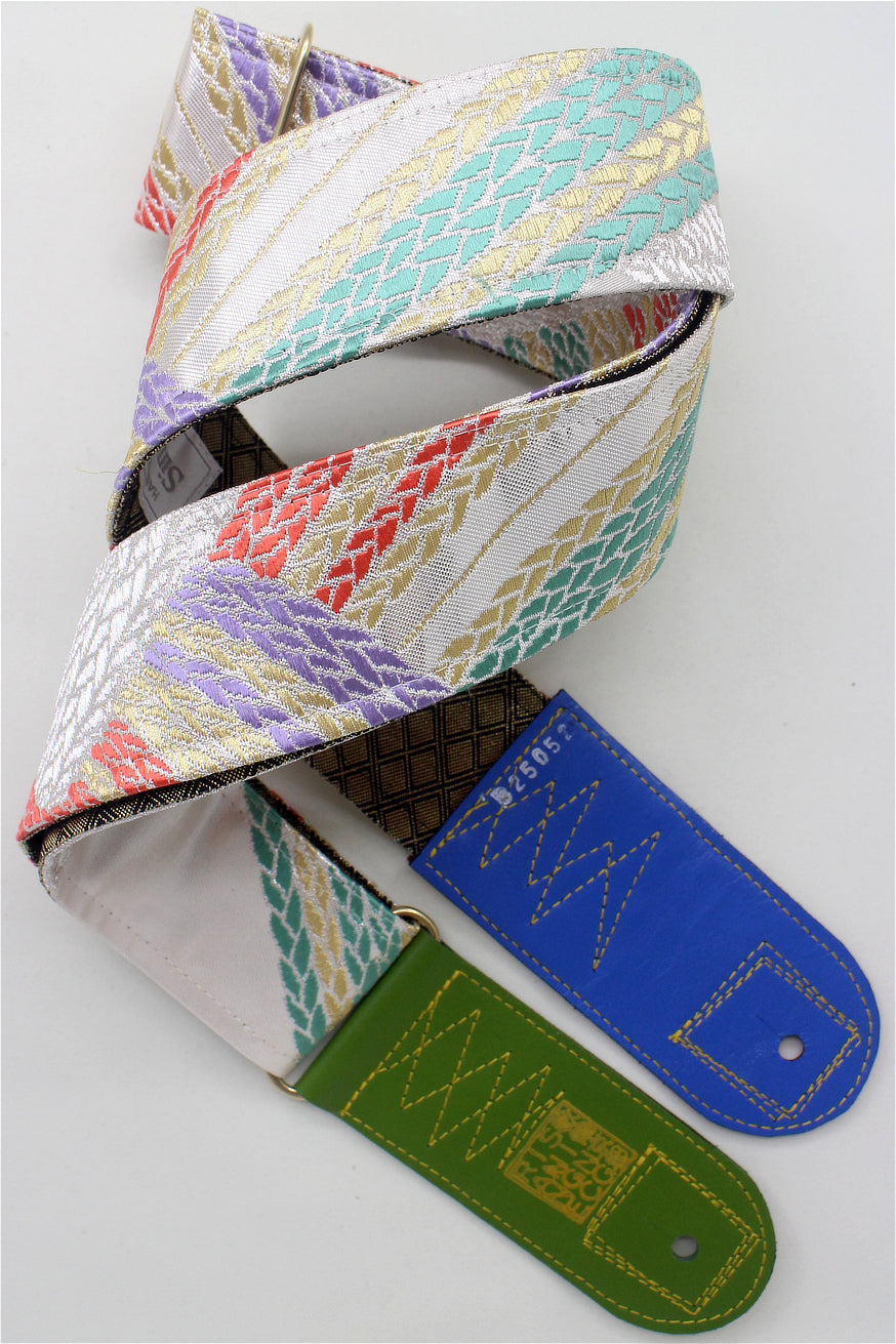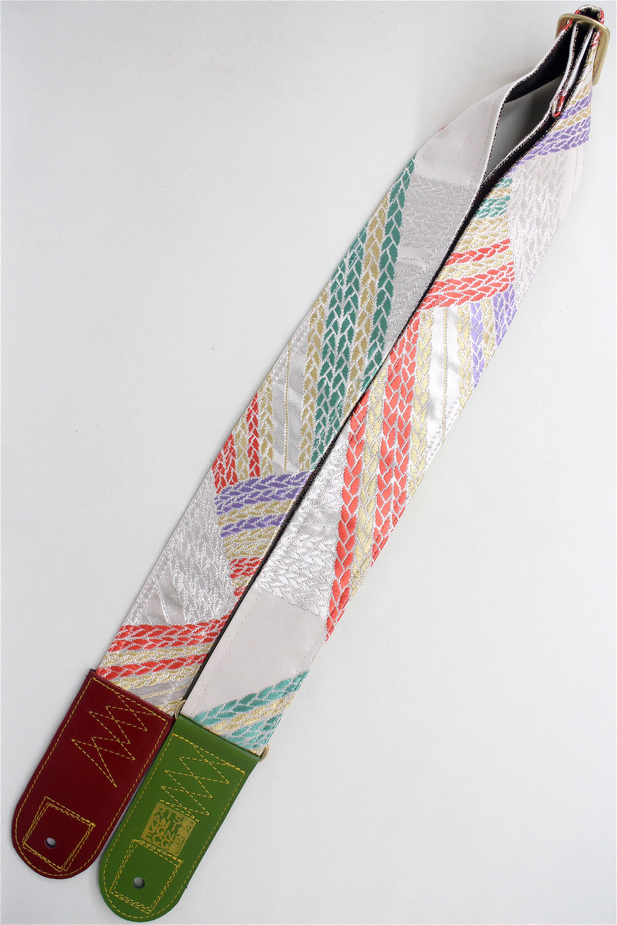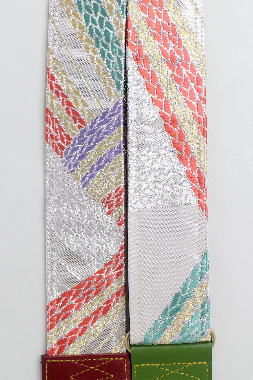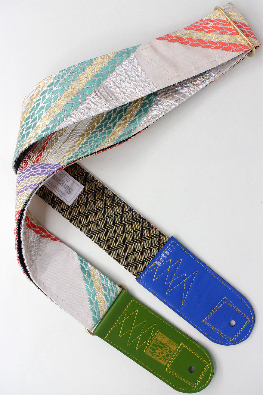 Unique and beautiful guitar strap [SC325052] - hand made in Japan from recycled silk woven kimono obi, leather and brass