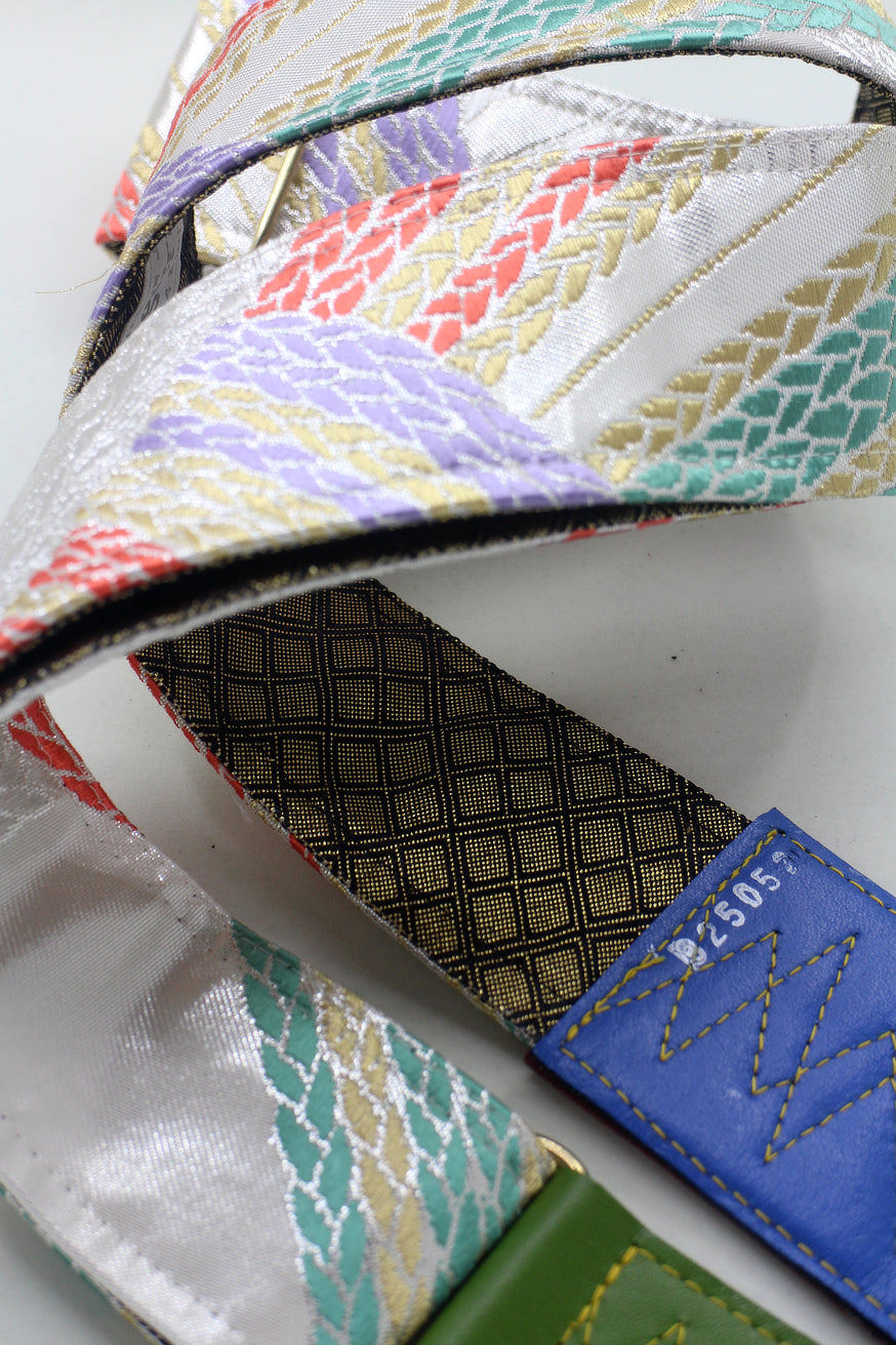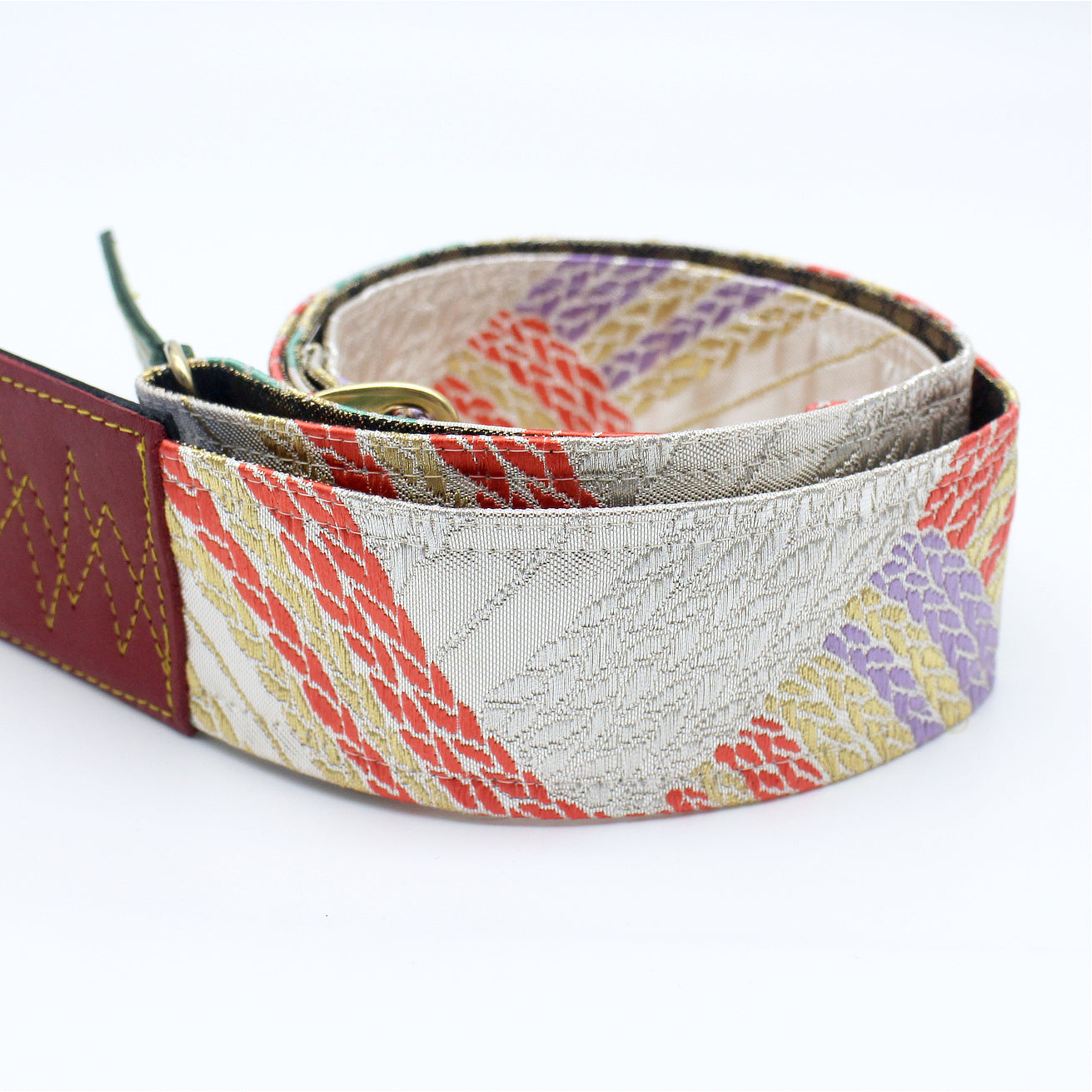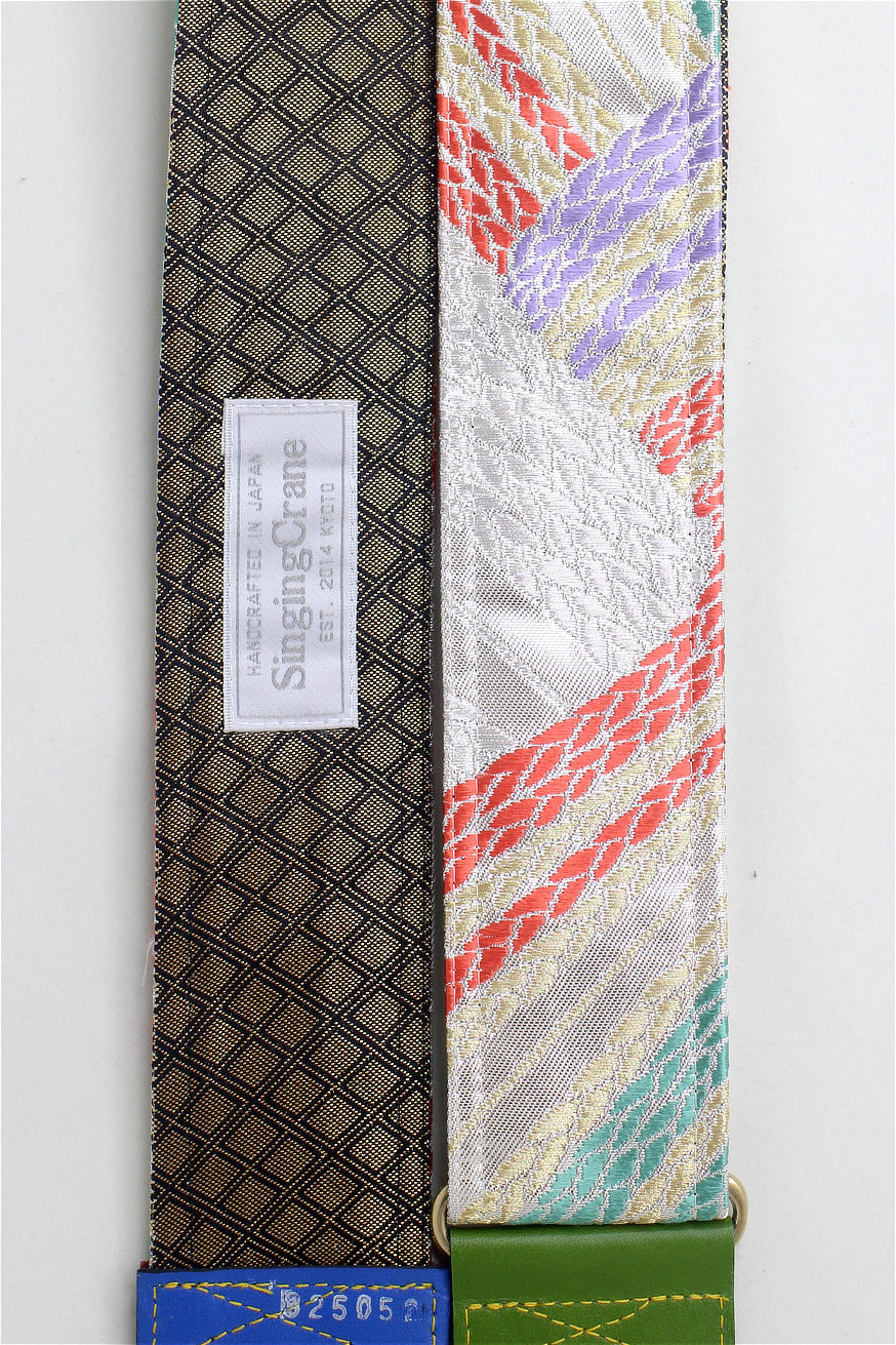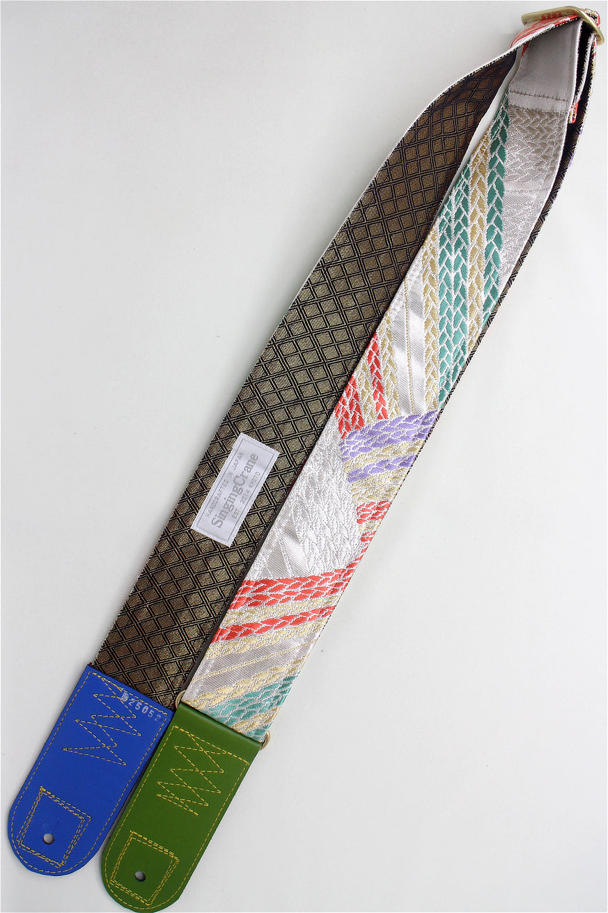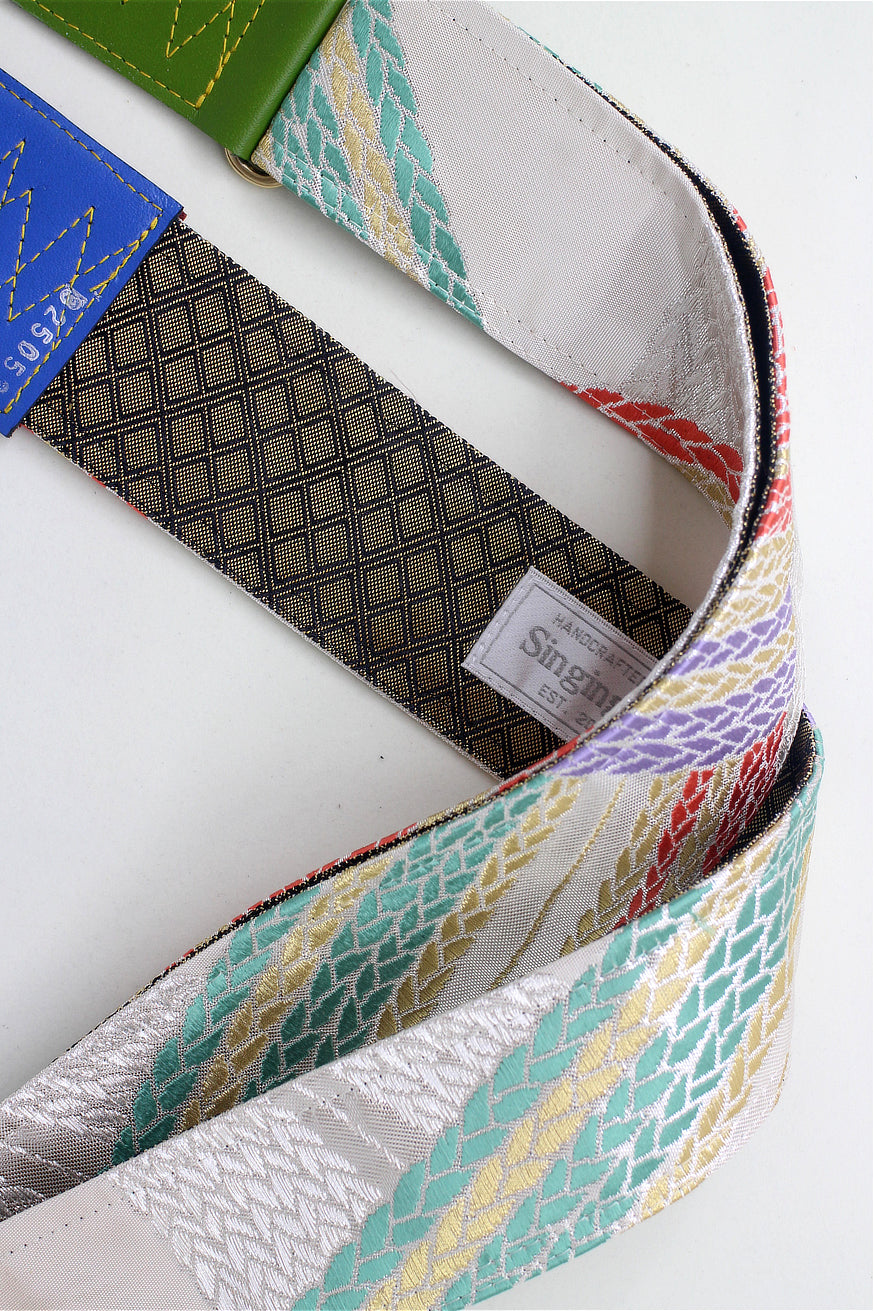 Unique and beautiful guitar strap [SC325052] - hand made in Japan from recycled silk woven kimono obi, leather and brass