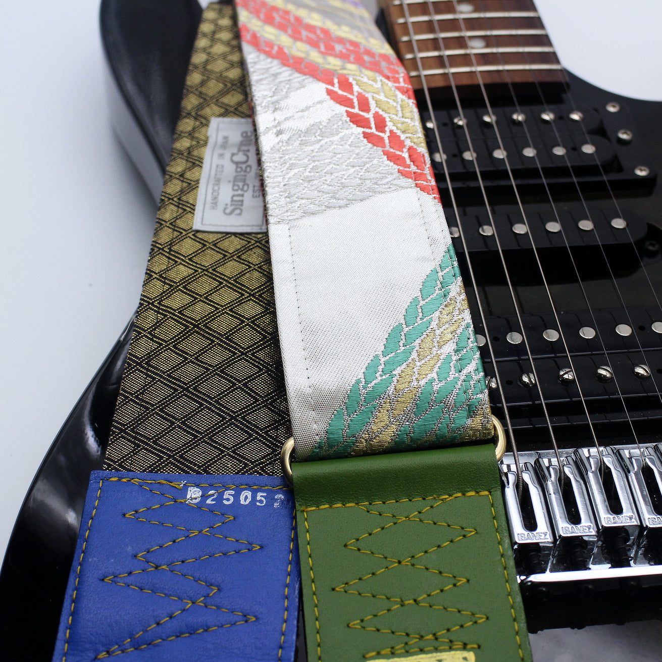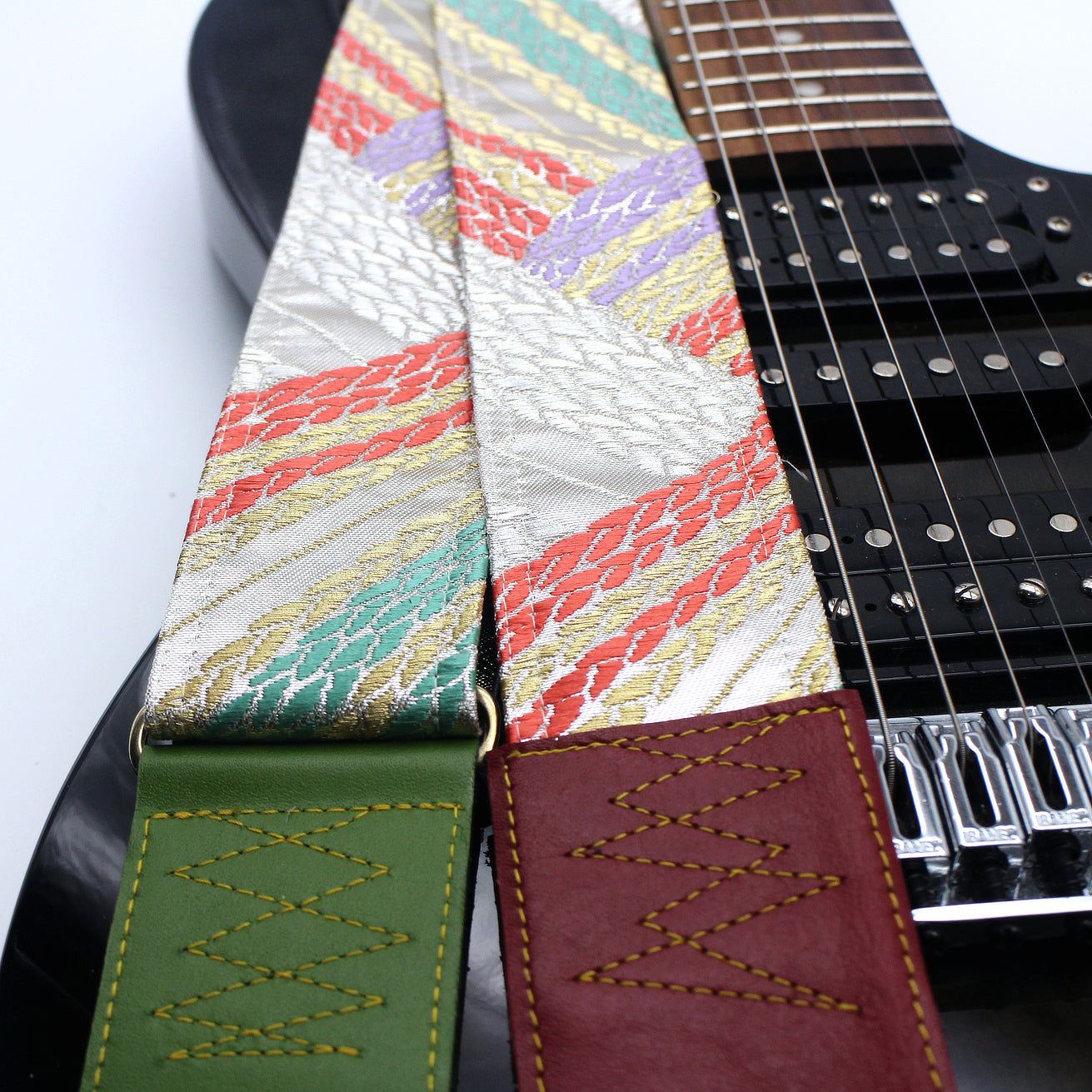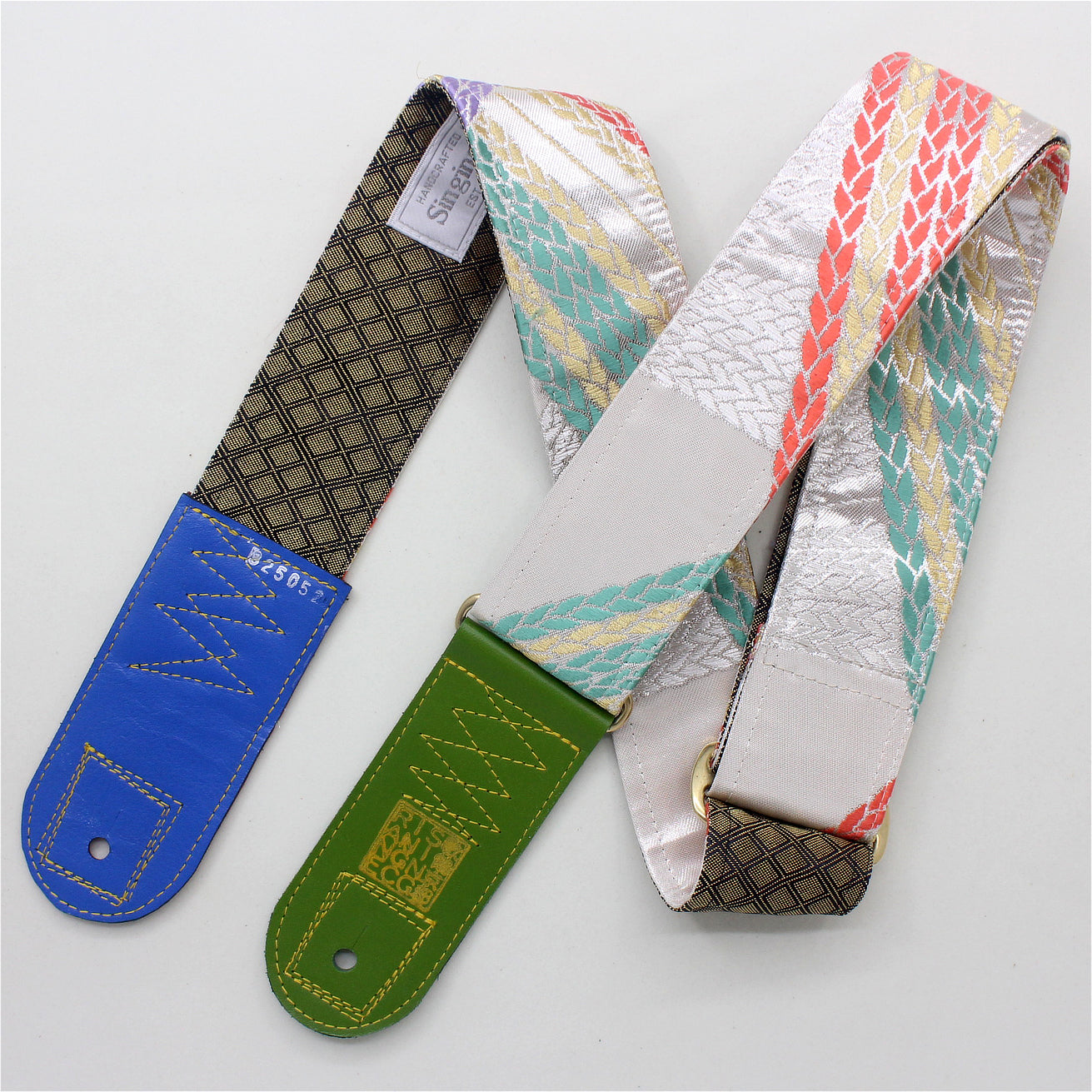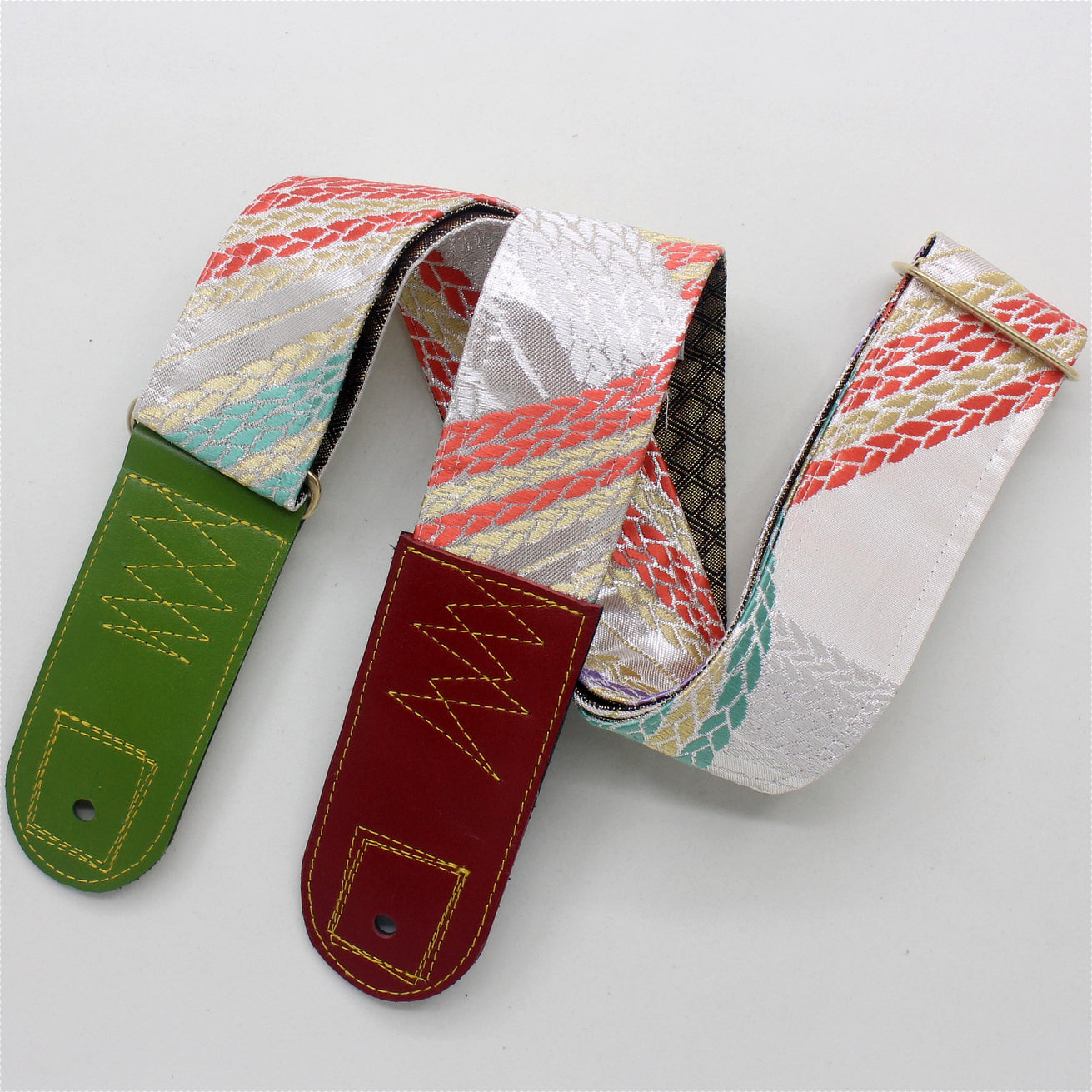 Unique and beautiful guitar strap [SC325052] - hand made in Japan from recycled silk woven kimono obi, leather and brass