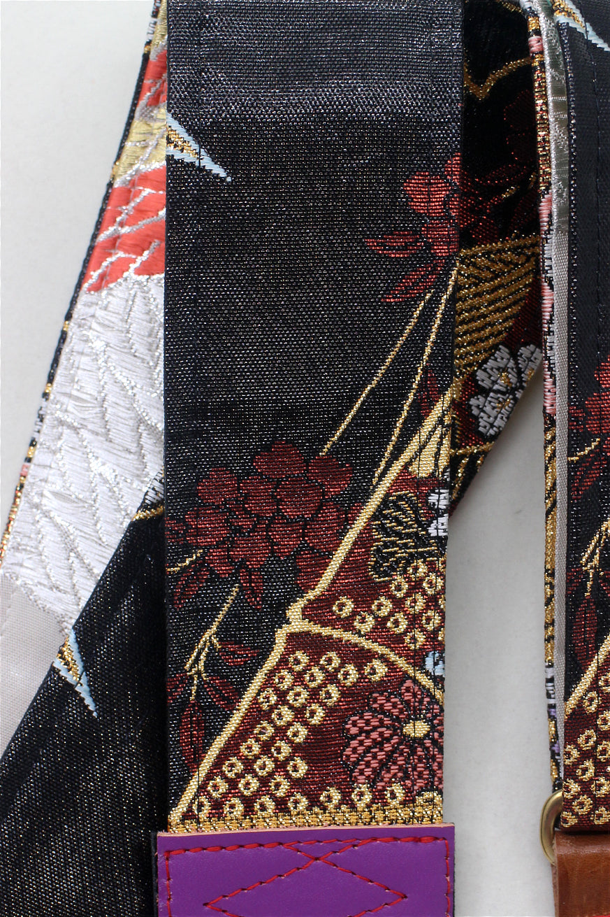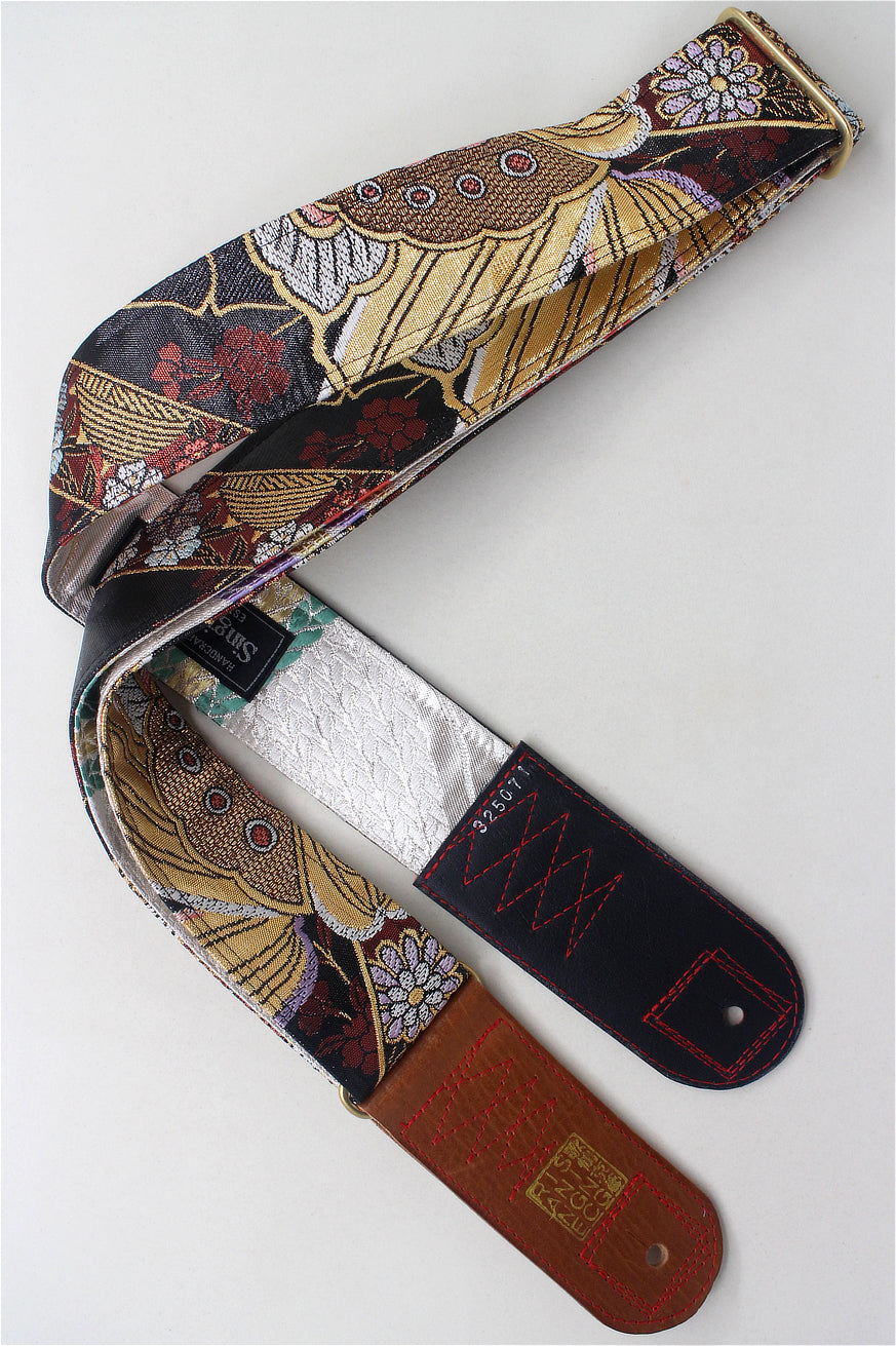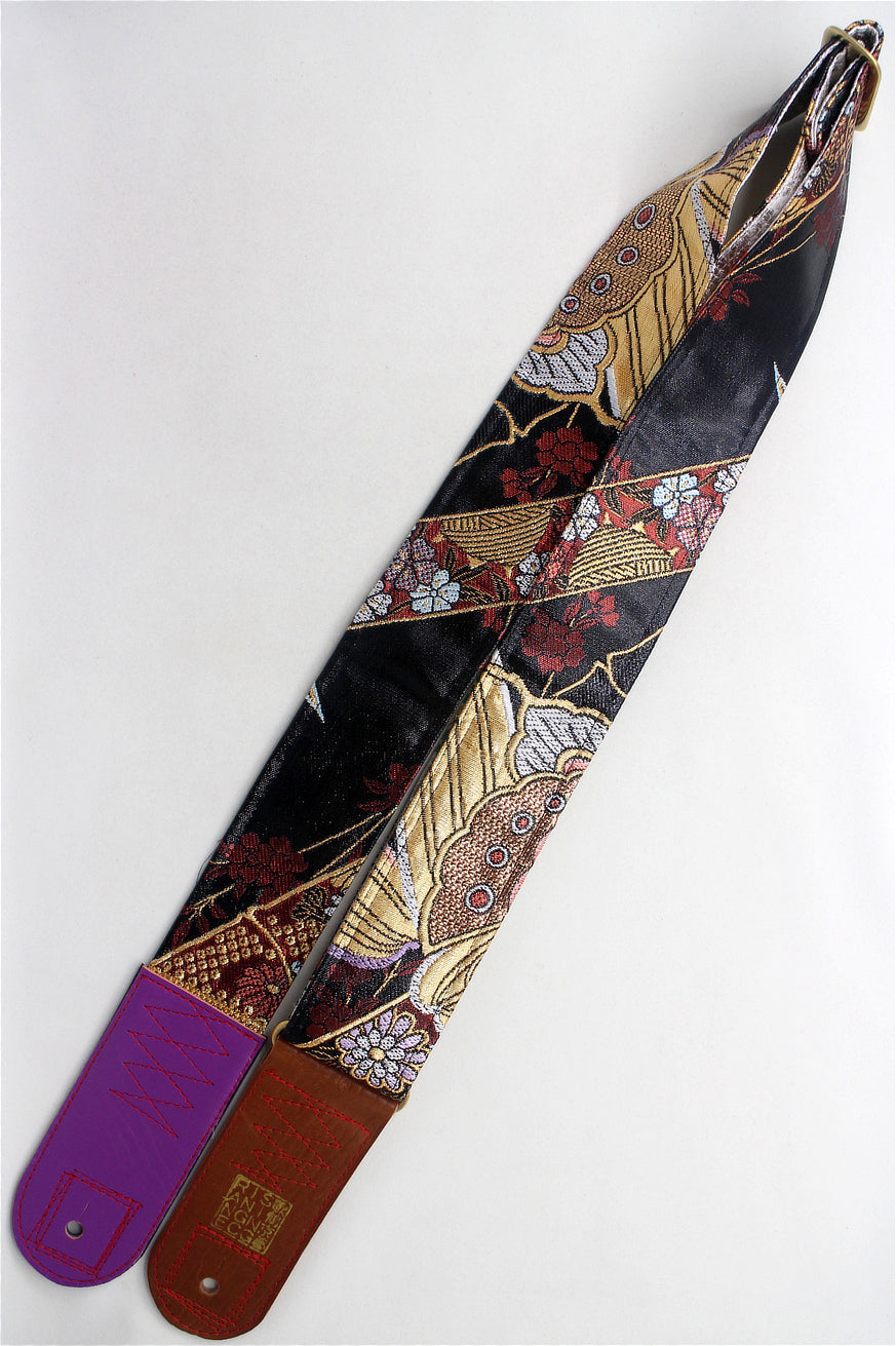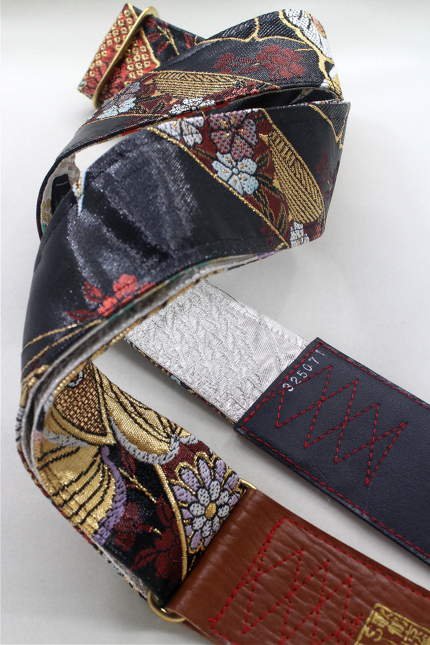 Unique and beautiful guitar strap [SC325071] - hand made in Japan from recycled silk woven kimono obi, leather and brass