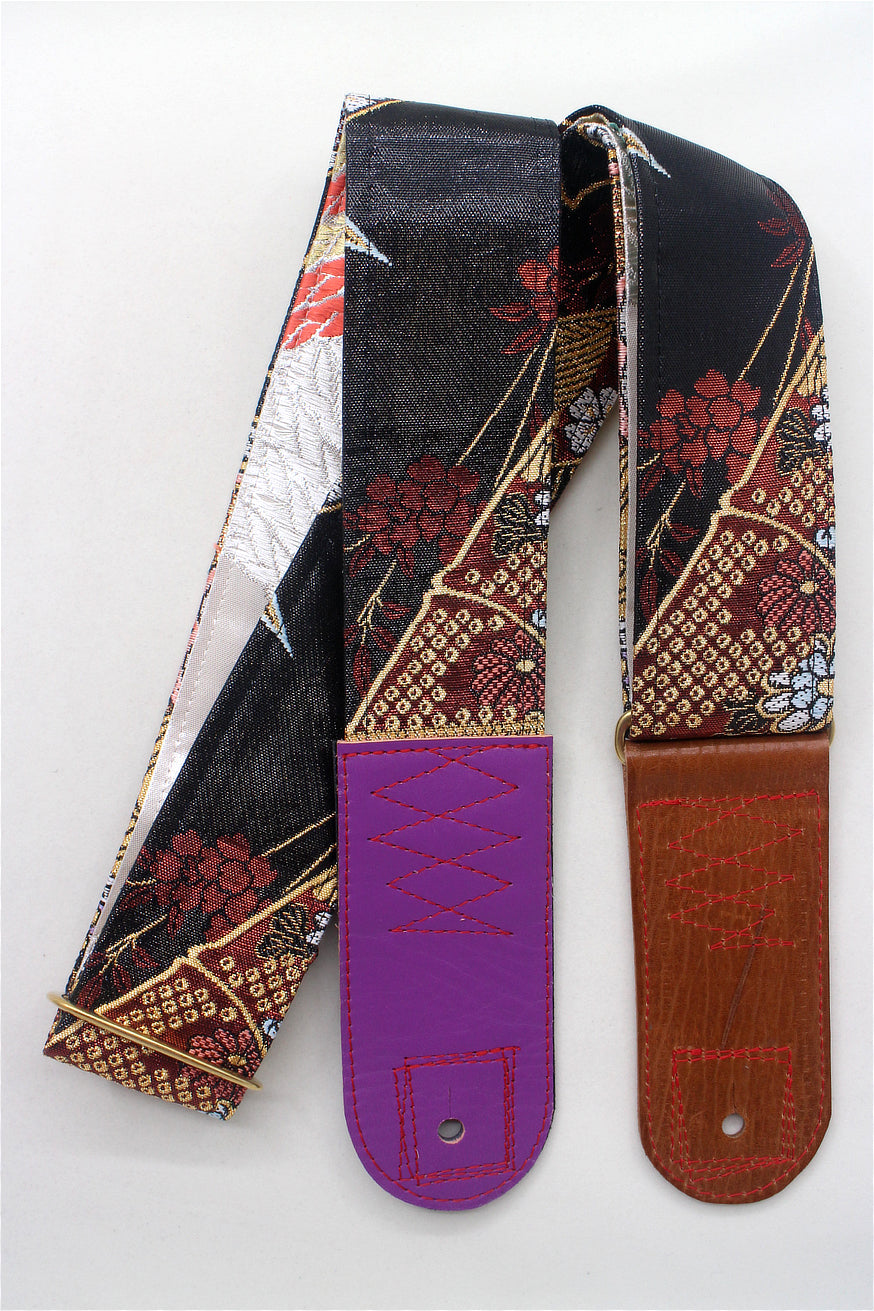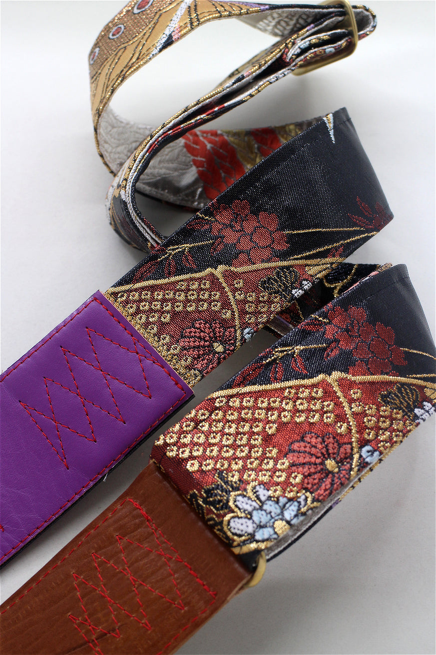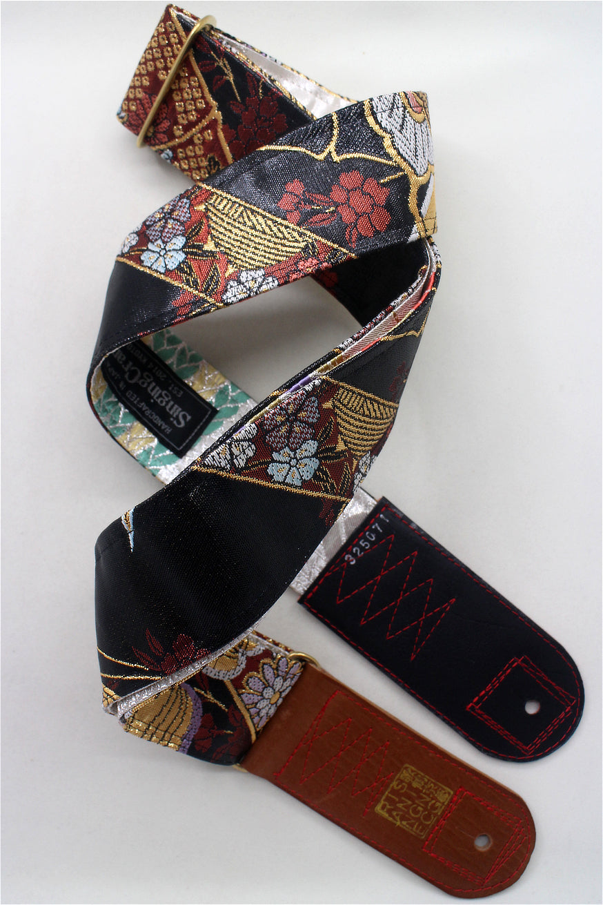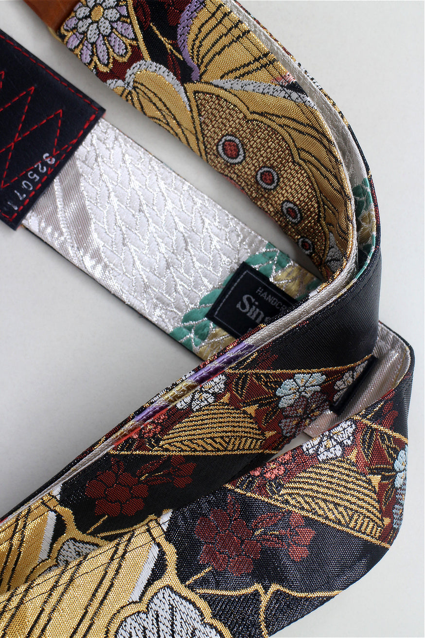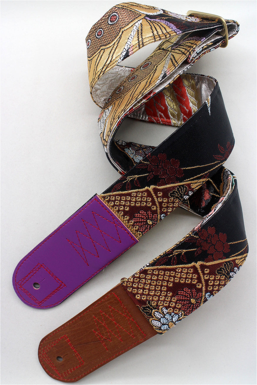 Unique and beautiful guitar strap [SC325071] - hand made in Japan from recycled silk woven kimono obi, leather and brass