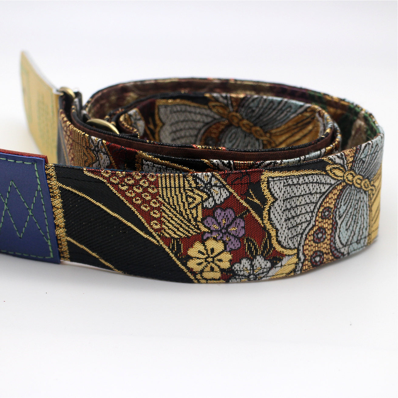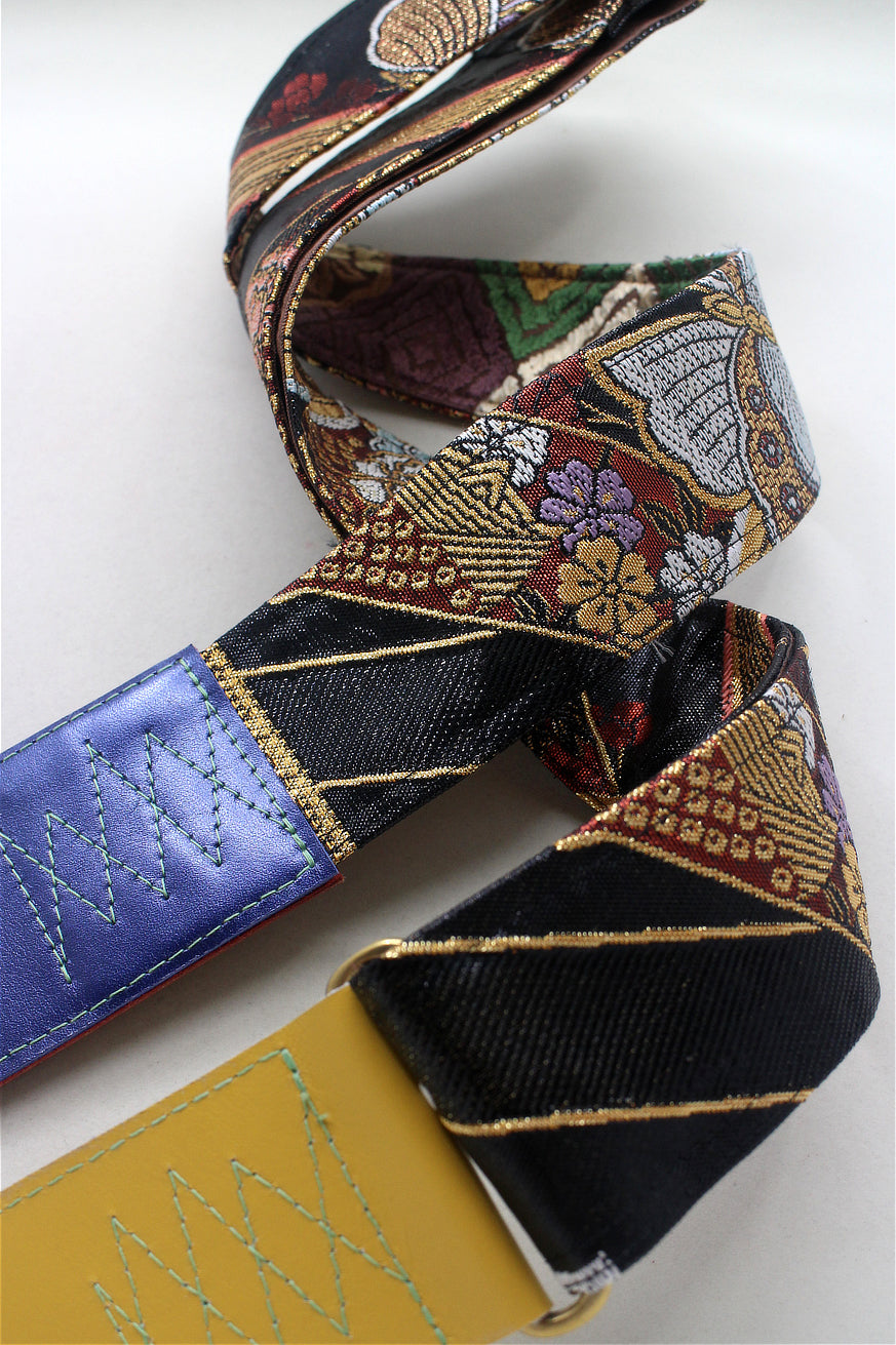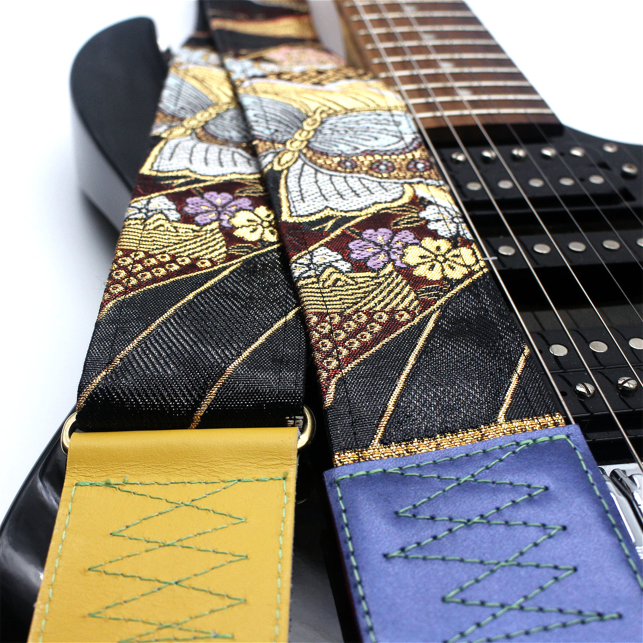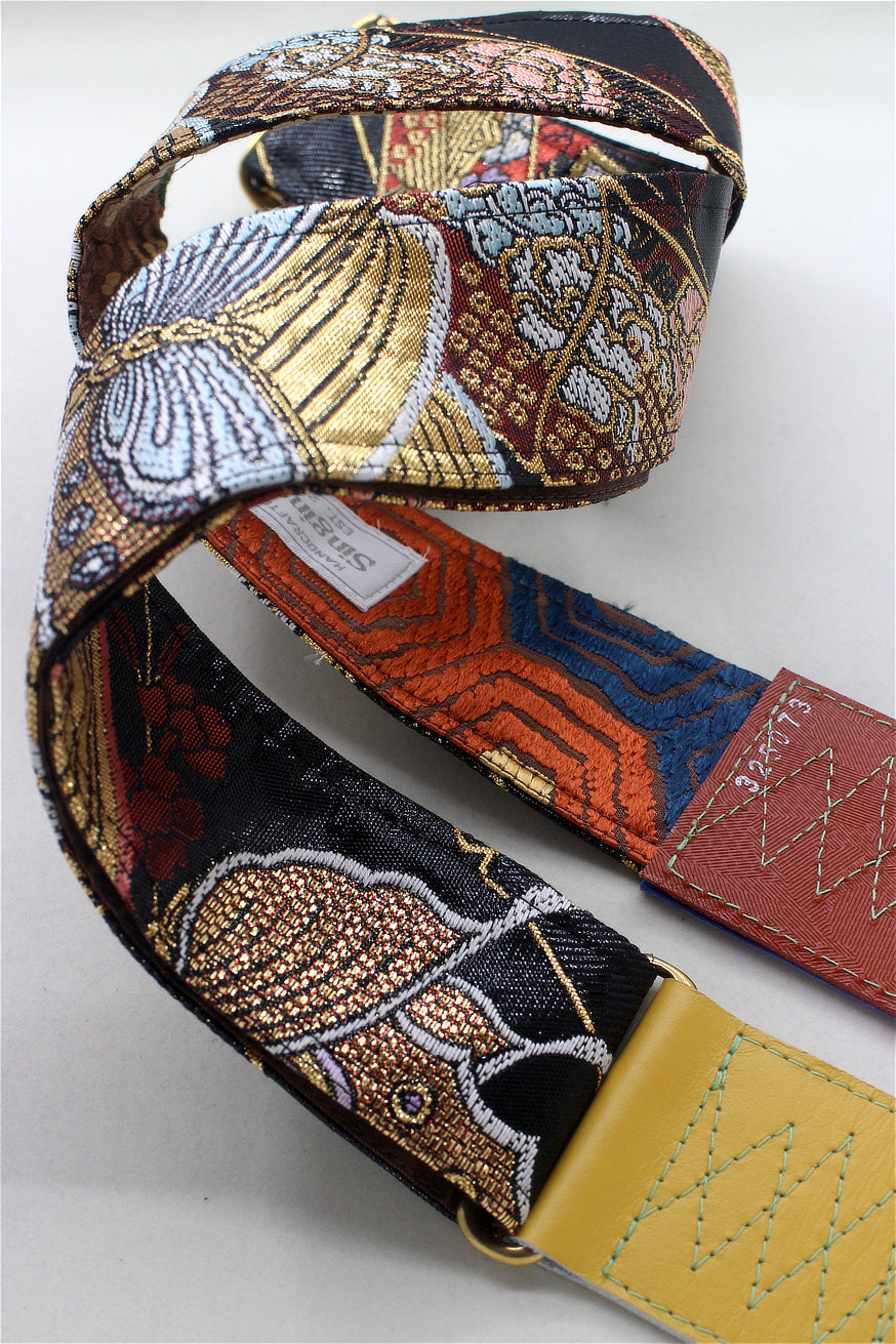 Unique and beautiful guitar strap [SC325073] - hand made in Japan from recycled silk woven kimono obi, leather and brass