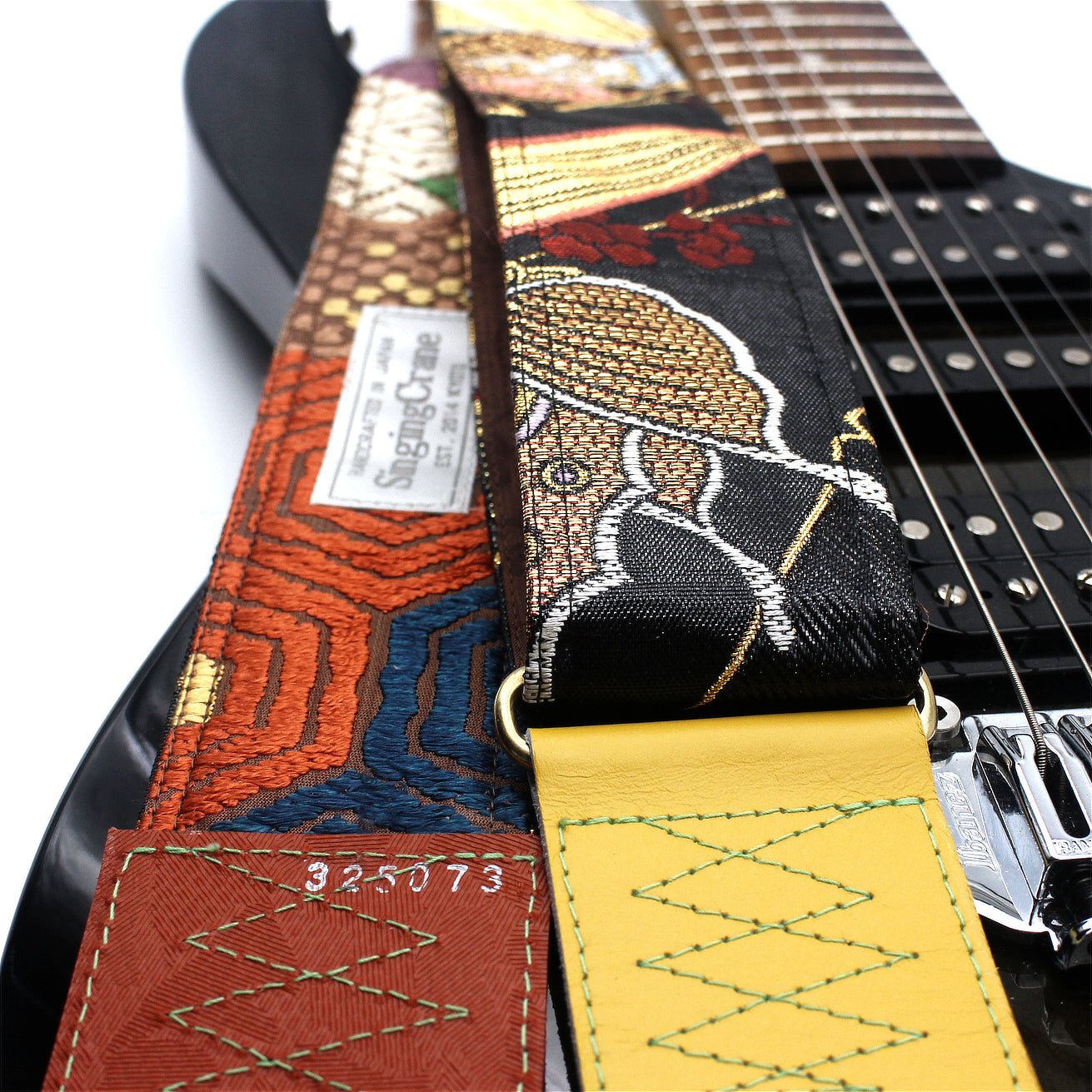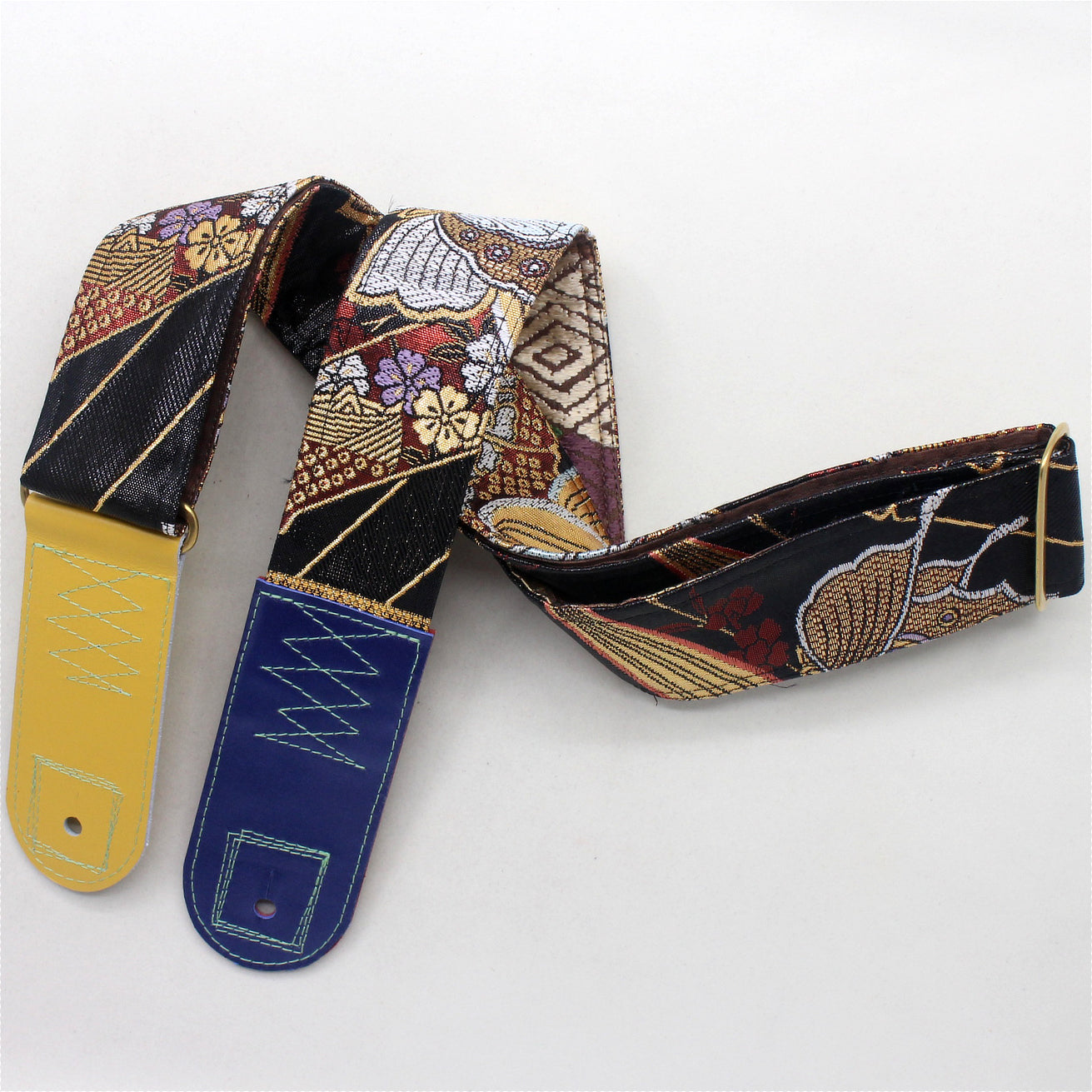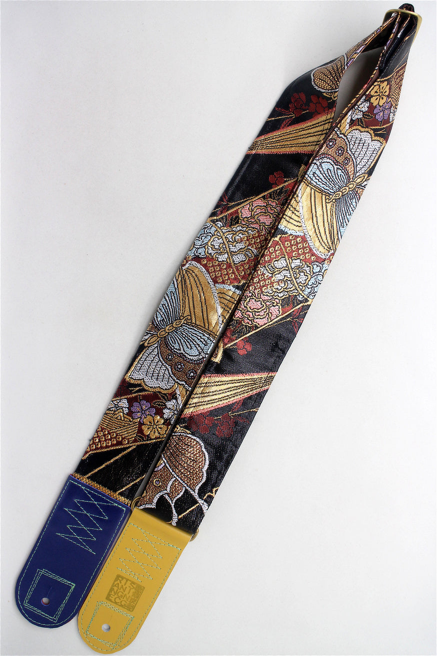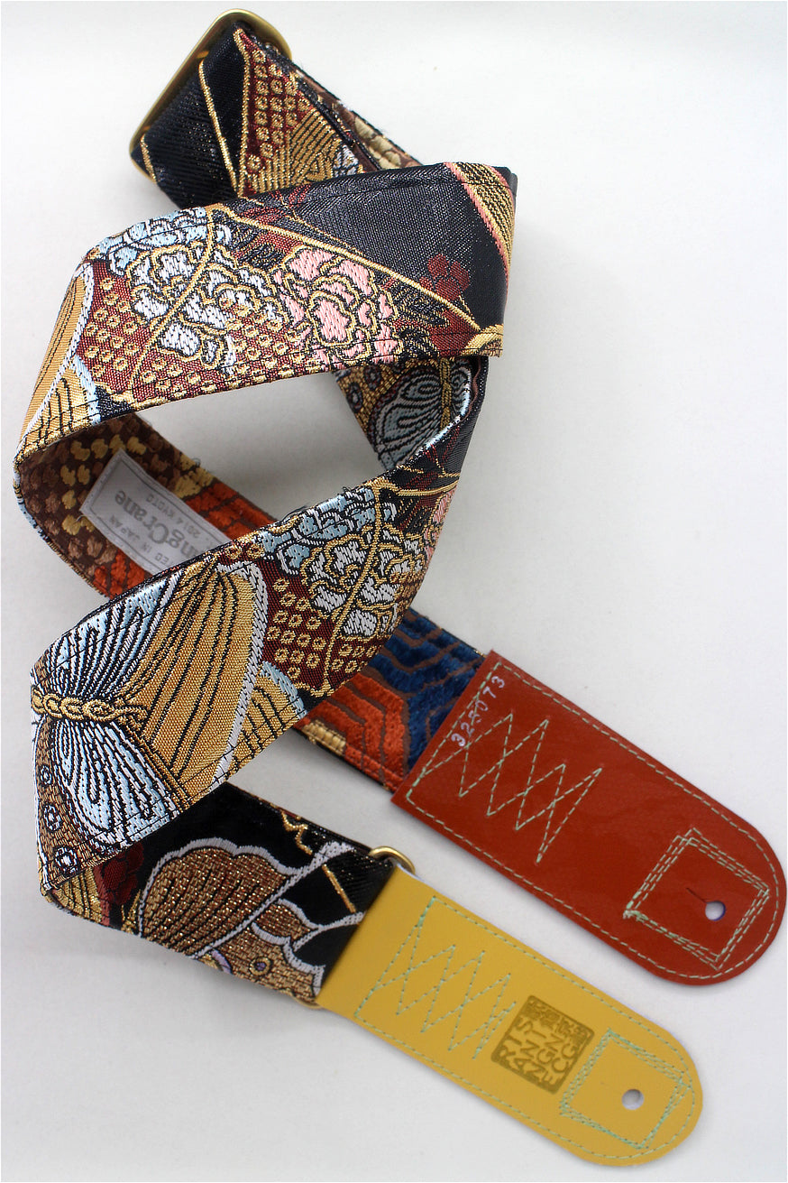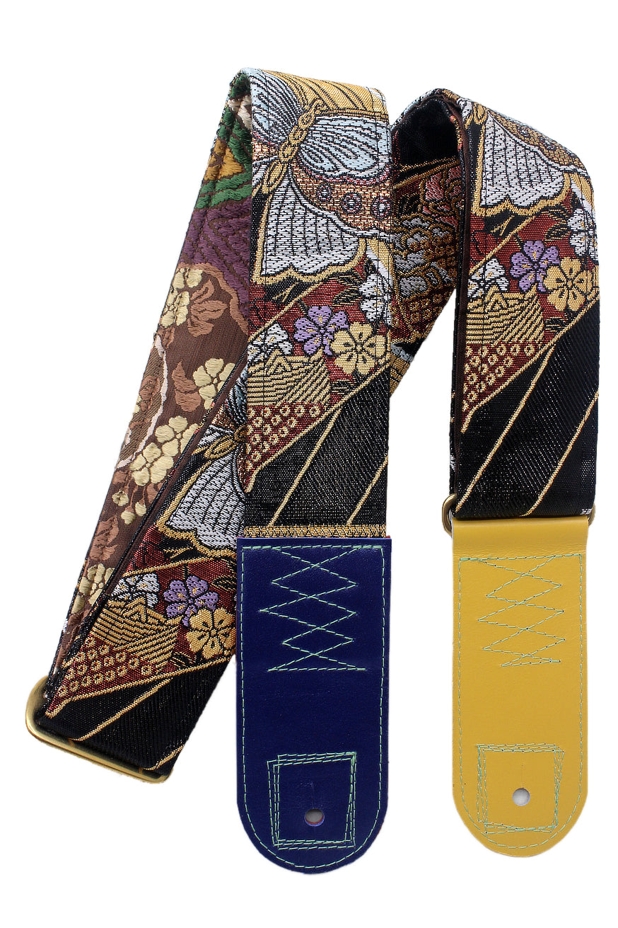 Unique and beautiful guitar strap [SC325073] - hand made in Japan from recycled silk woven kimono obi, leather and brass