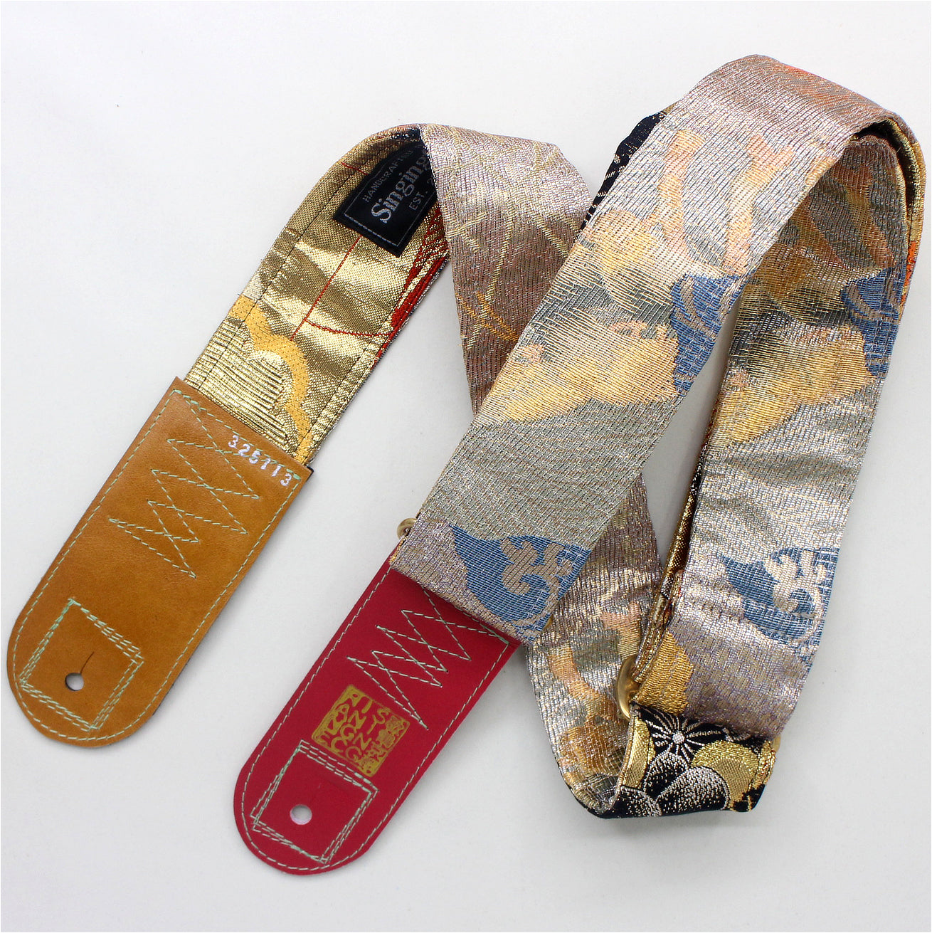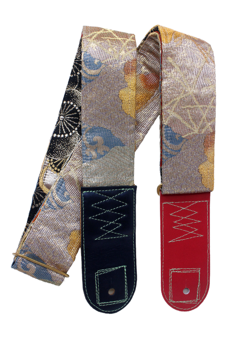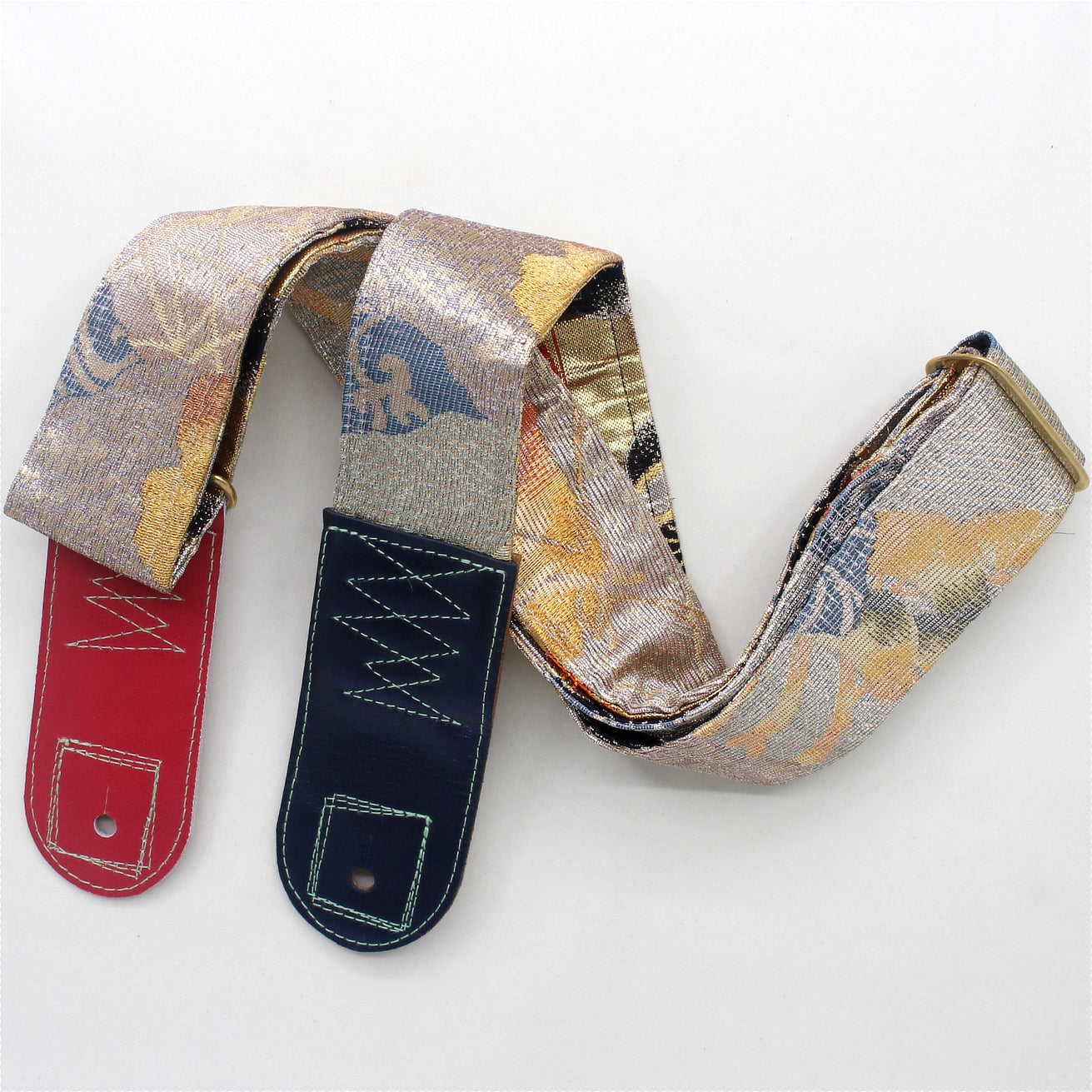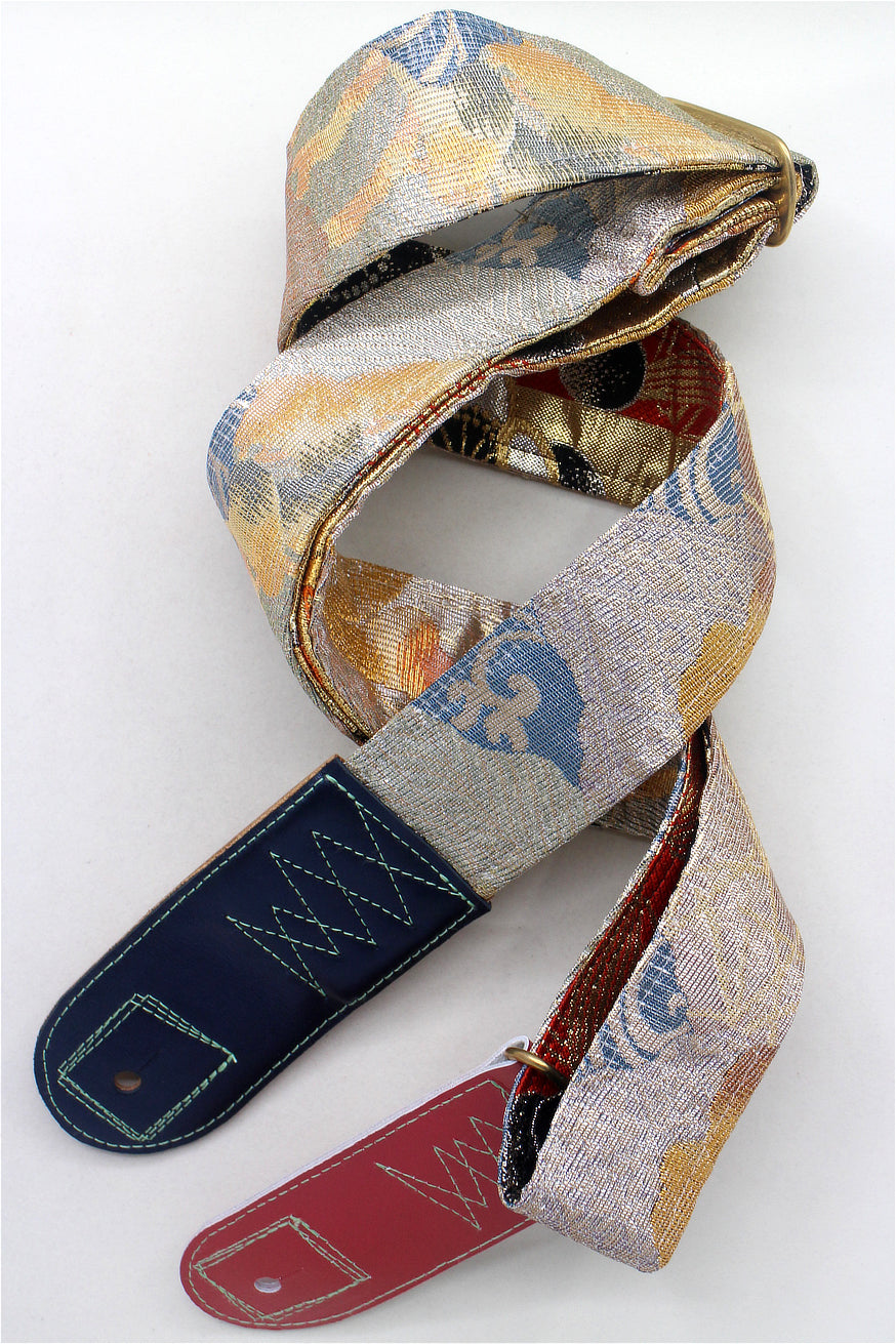 Unique and beautiful guitar strap [SC325113] - hand made in Japan from recycled silk woven kimono obi, leather and brass