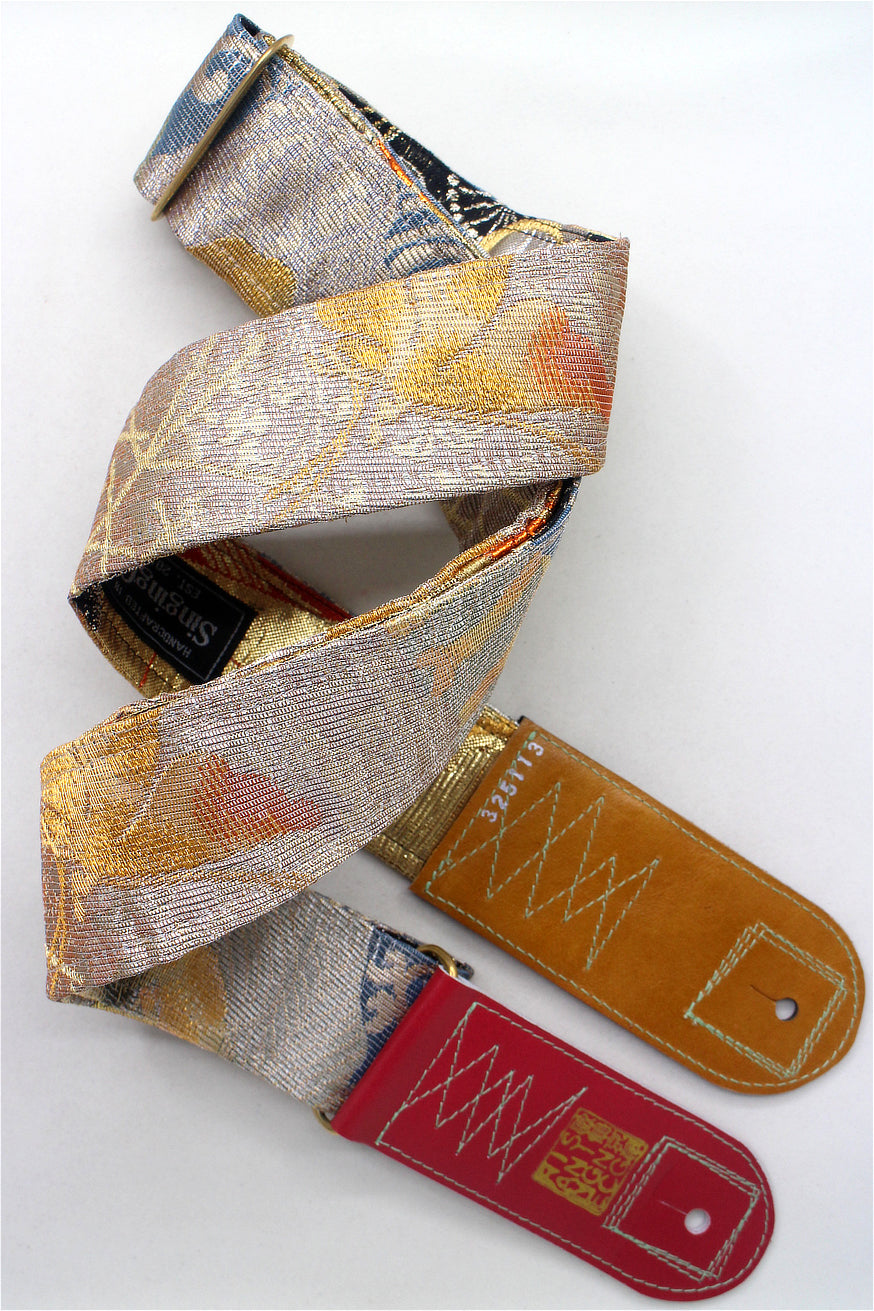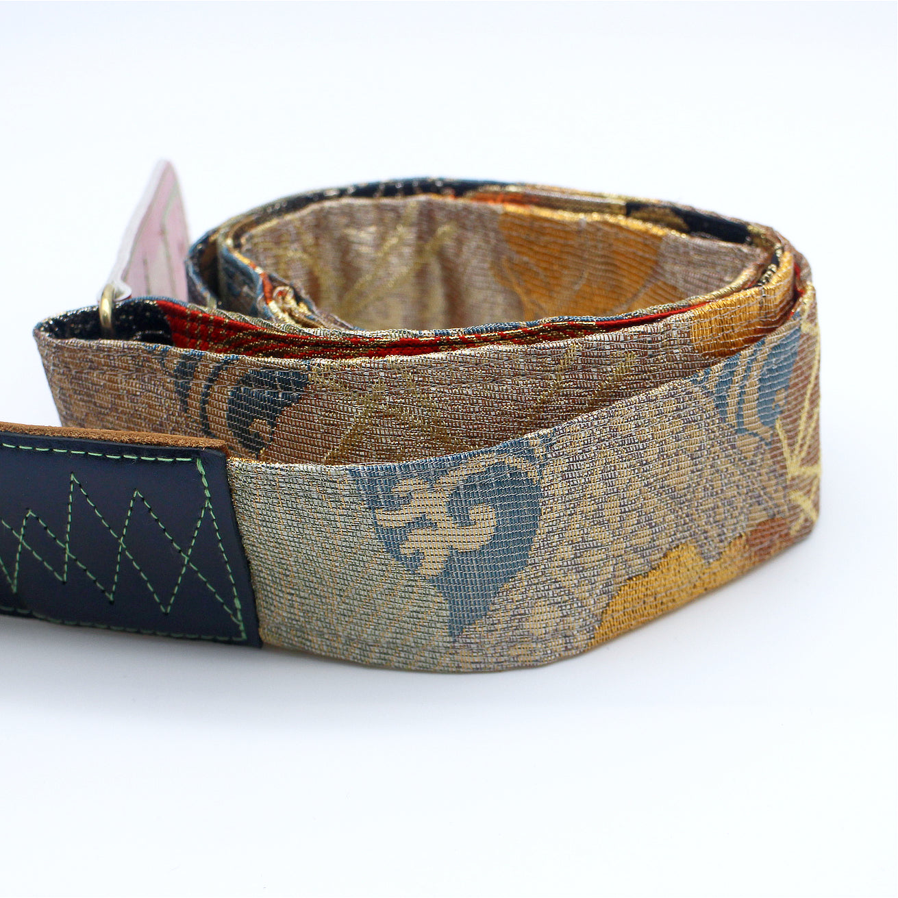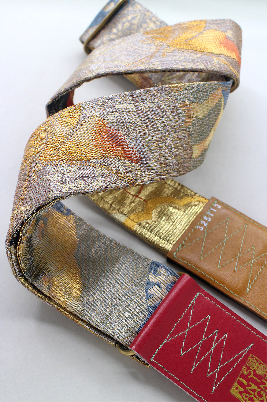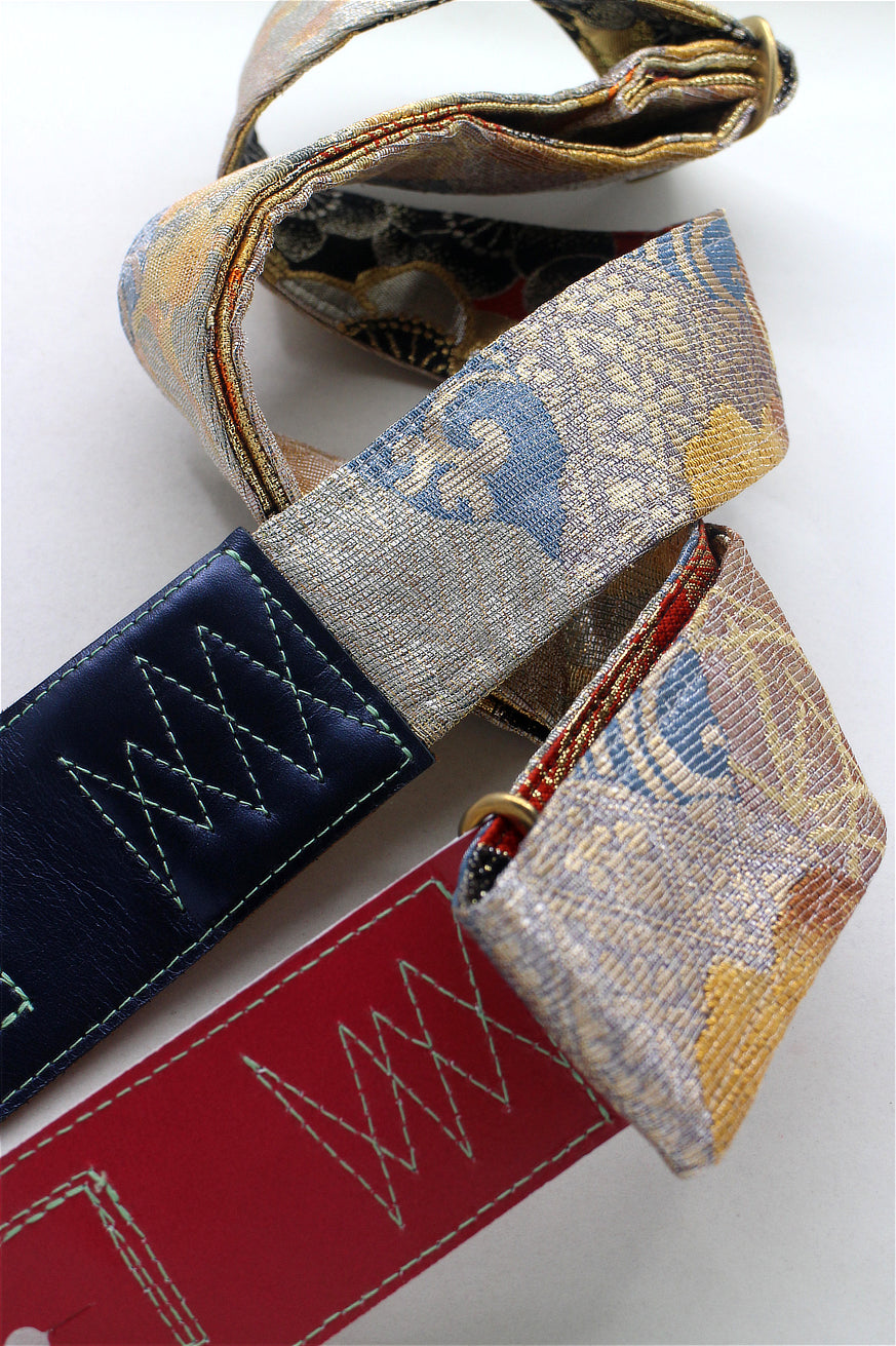 Unique and beautiful guitar strap [SC325113] - hand made in Japan from recycled silk woven kimono obi, leather and brass