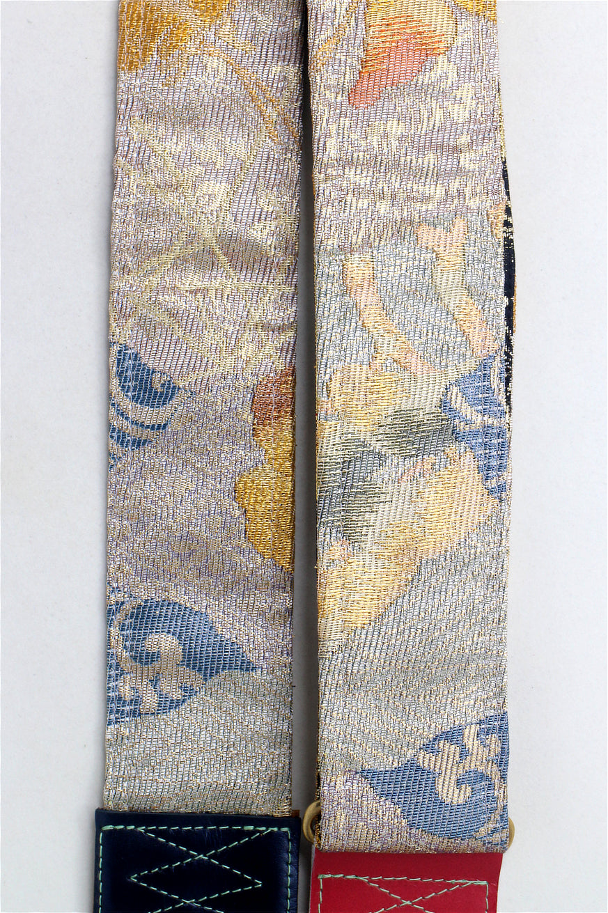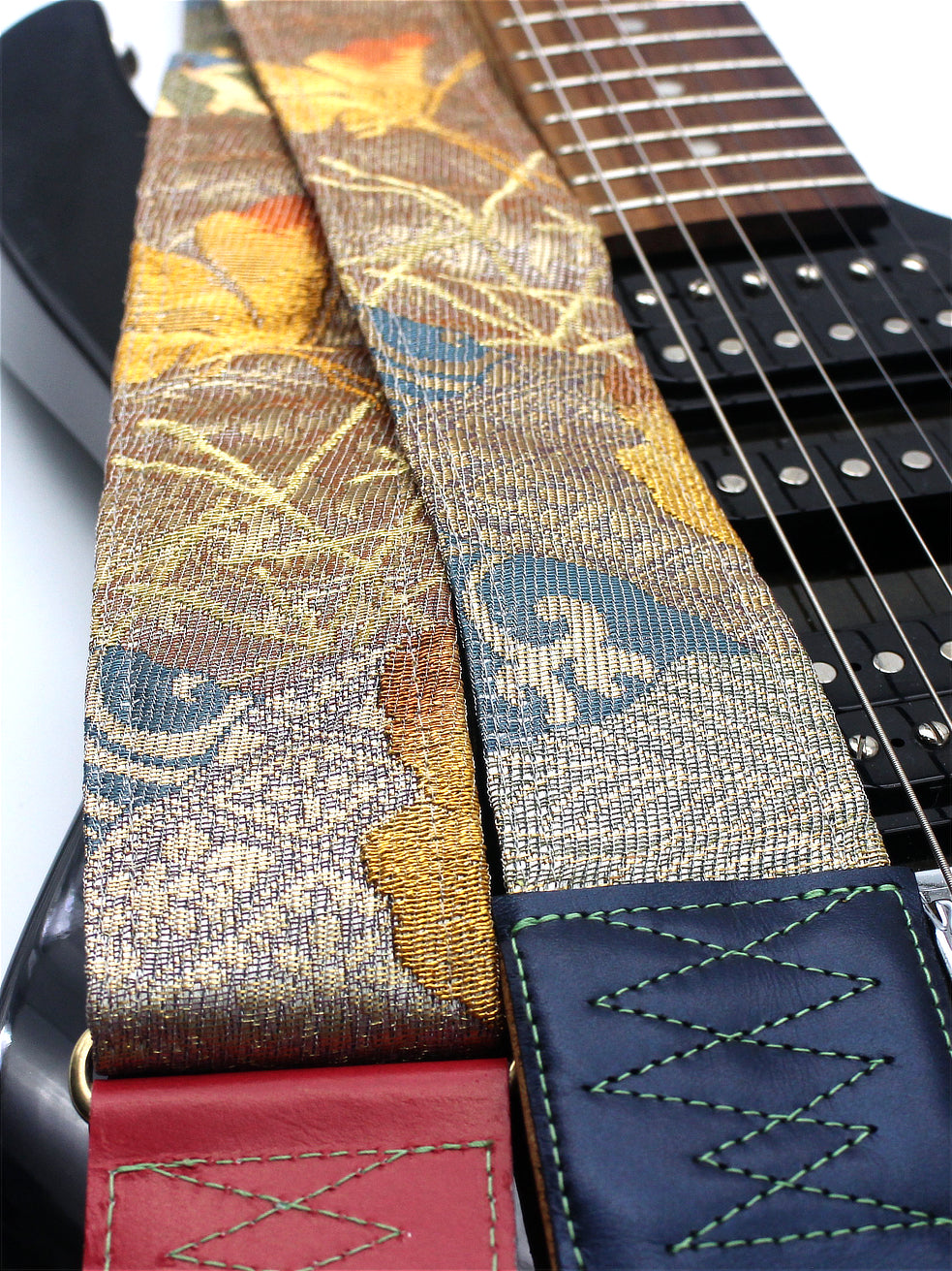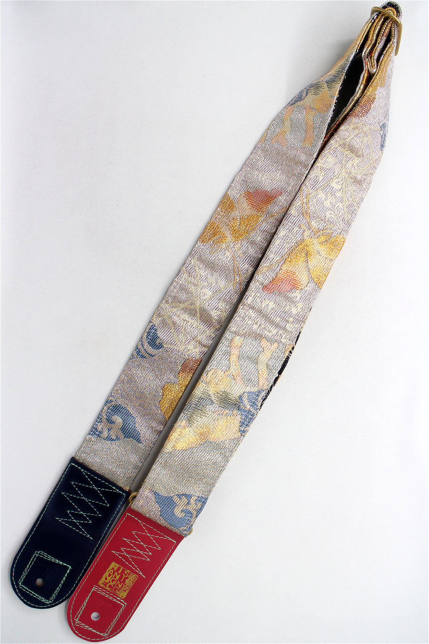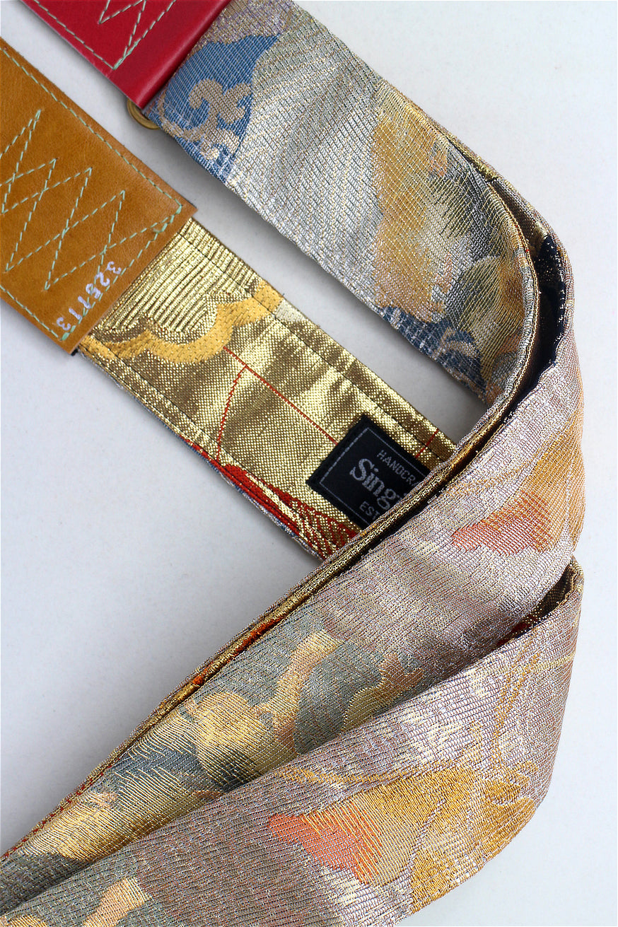 Unique and beautiful guitar strap [SC325113] - hand made in Japan from recycled silk woven kimono obi, leather and brass