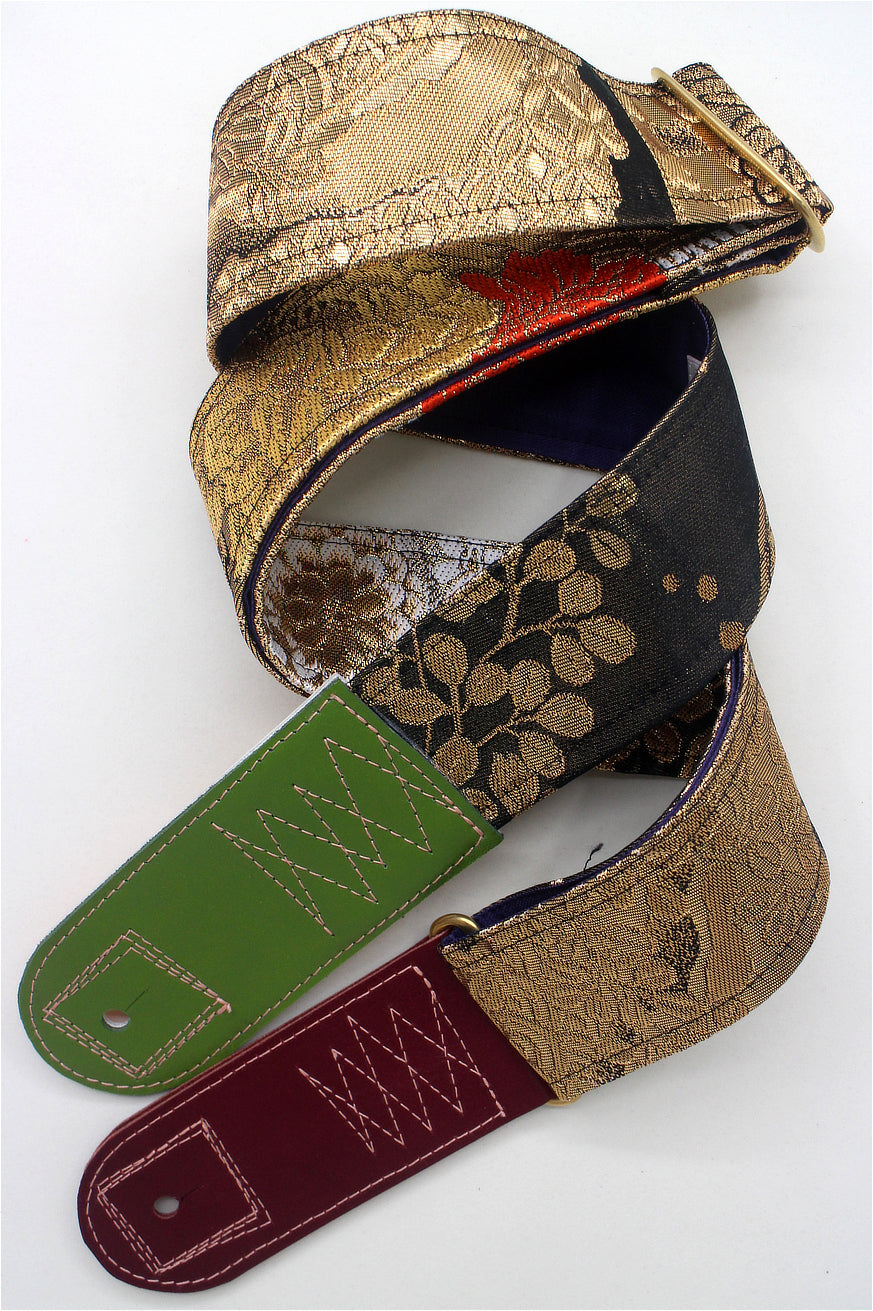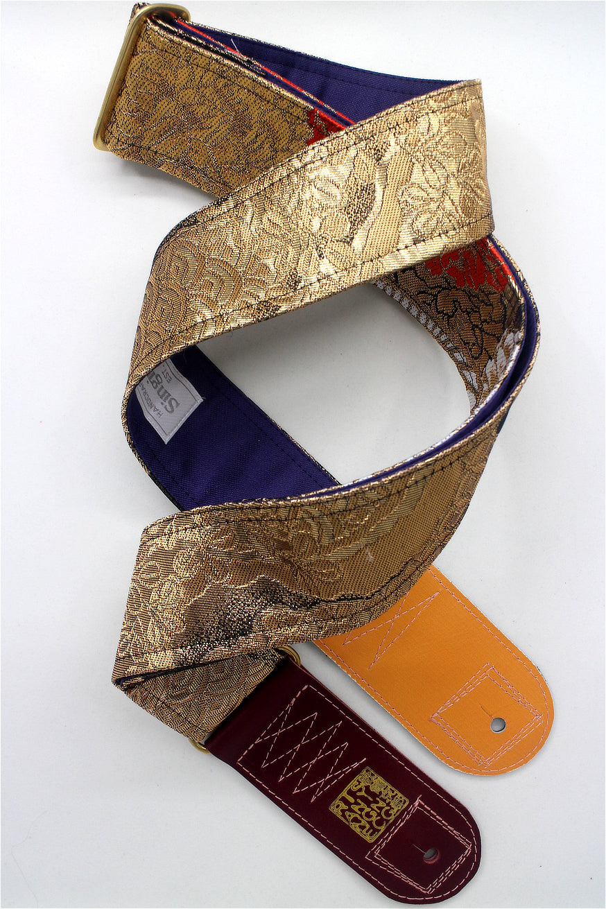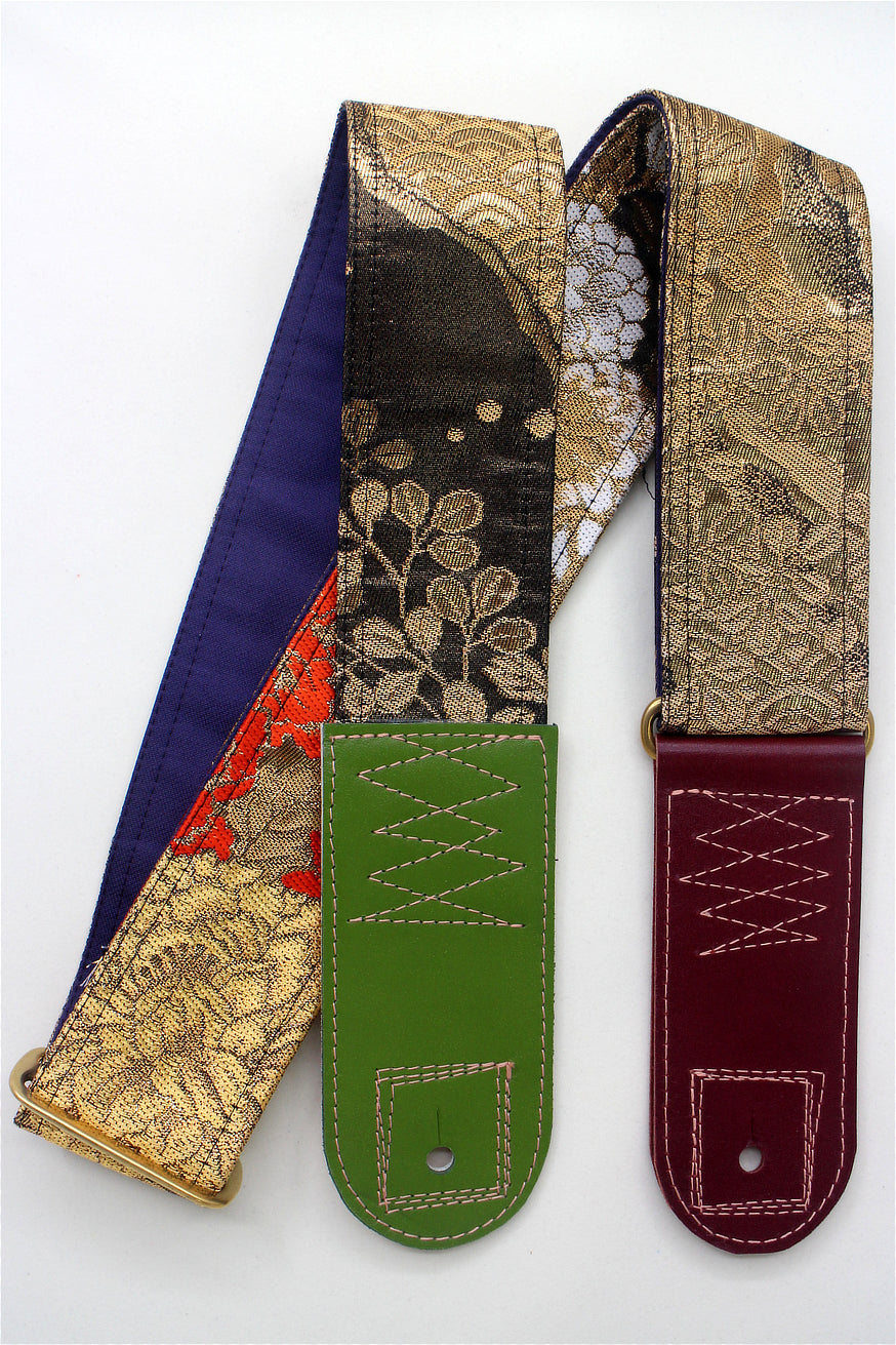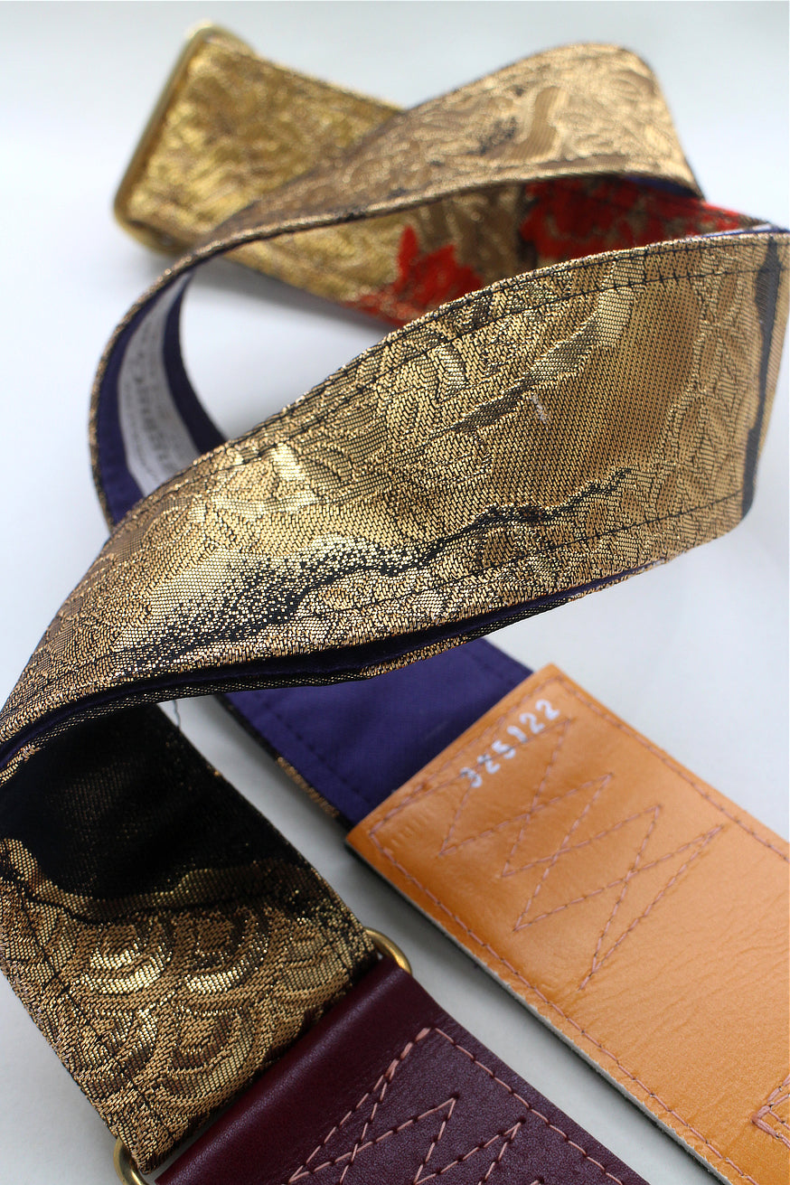 Unique and beautiful guitar strap [SC325122] - hand made in Japan from recycled silk woven kimono obi, leather and brass