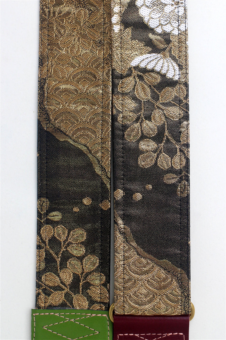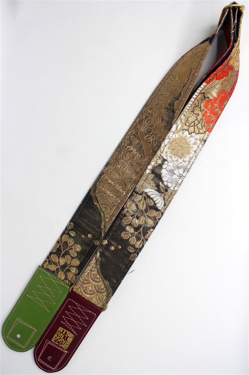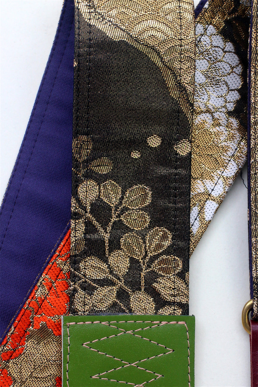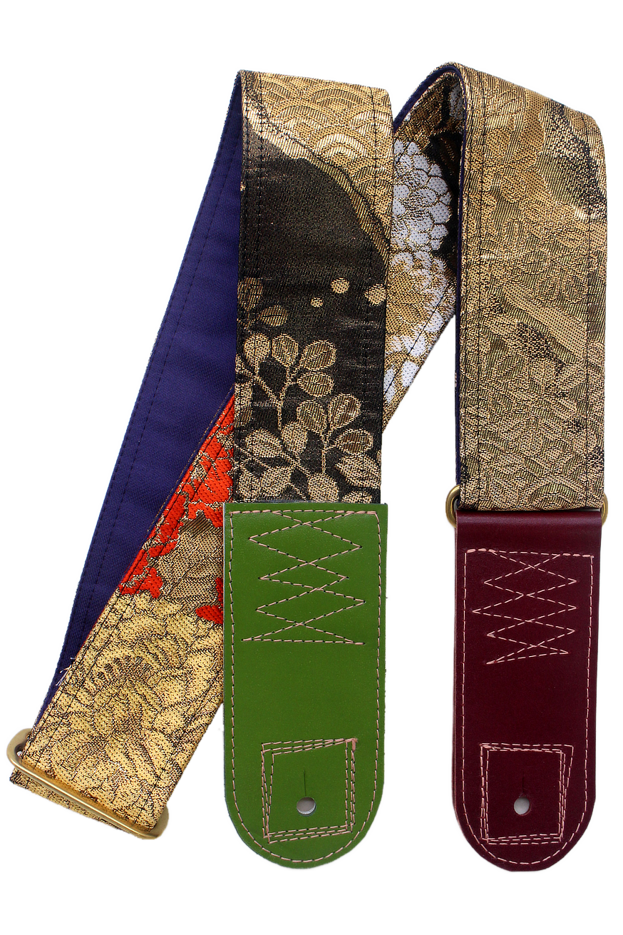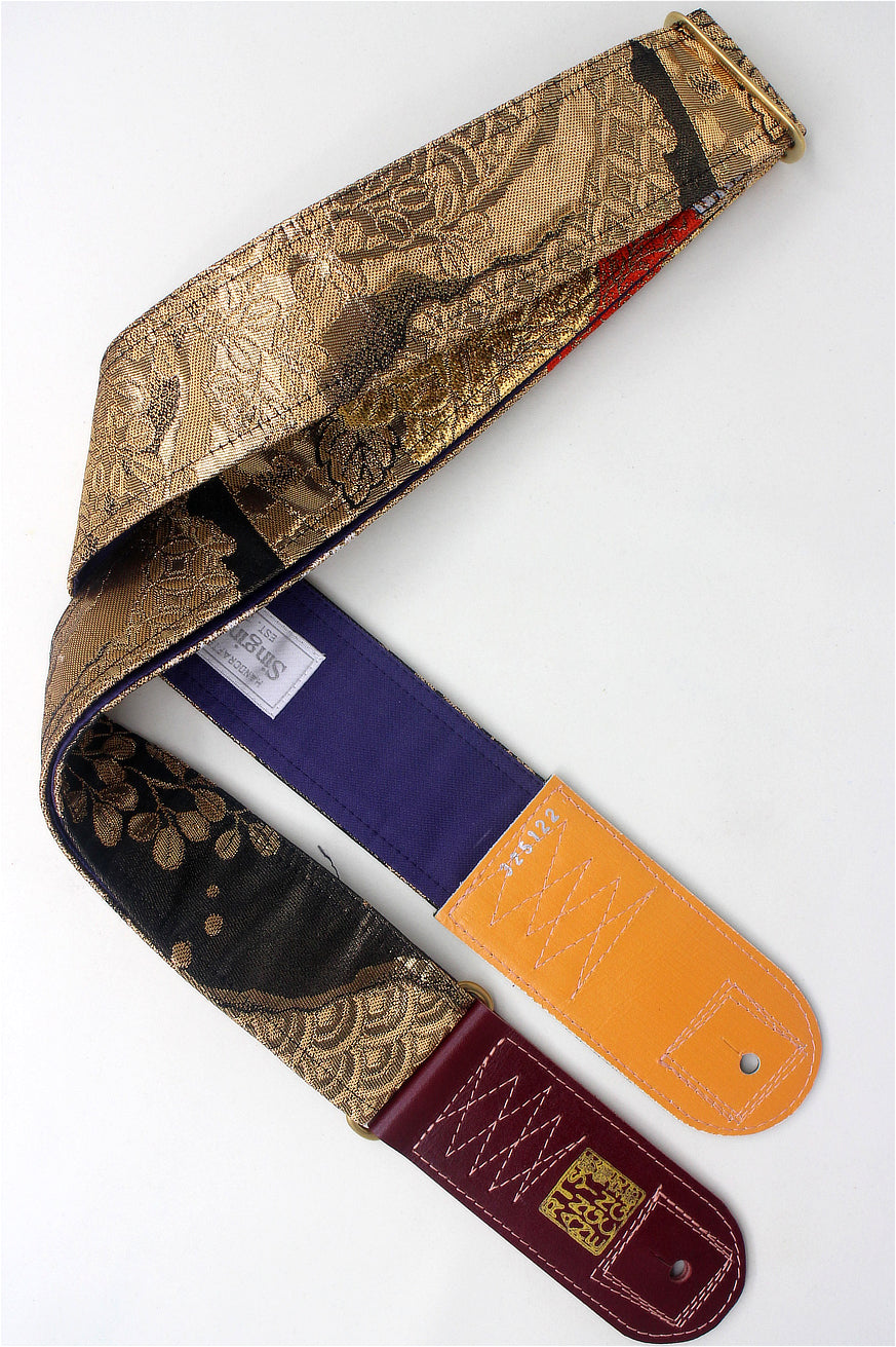 Unique and beautiful guitar strap [SC325122] - hand made in Japan from recycled silk woven kimono obi, leather and brass
